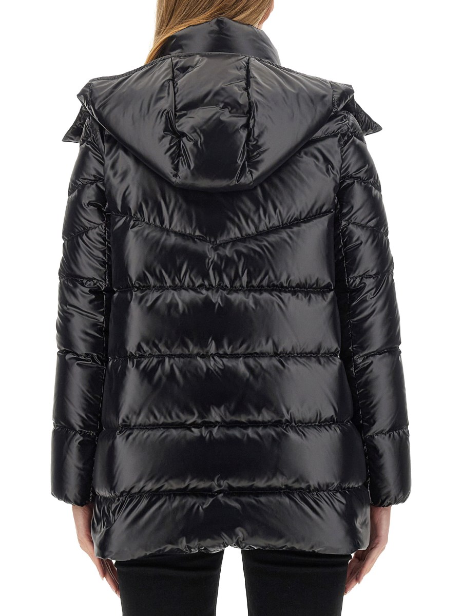 The perfect addition to your fall wardrobe is this black polyamide hooded jacket from Fay. This versatile jacket is designed with a quilted lining that will keep you cosy on cool fall nights. The jacket has a hood and is a bit longer in length to cover your lower back. It is the perfect size for layering and fits true to size.