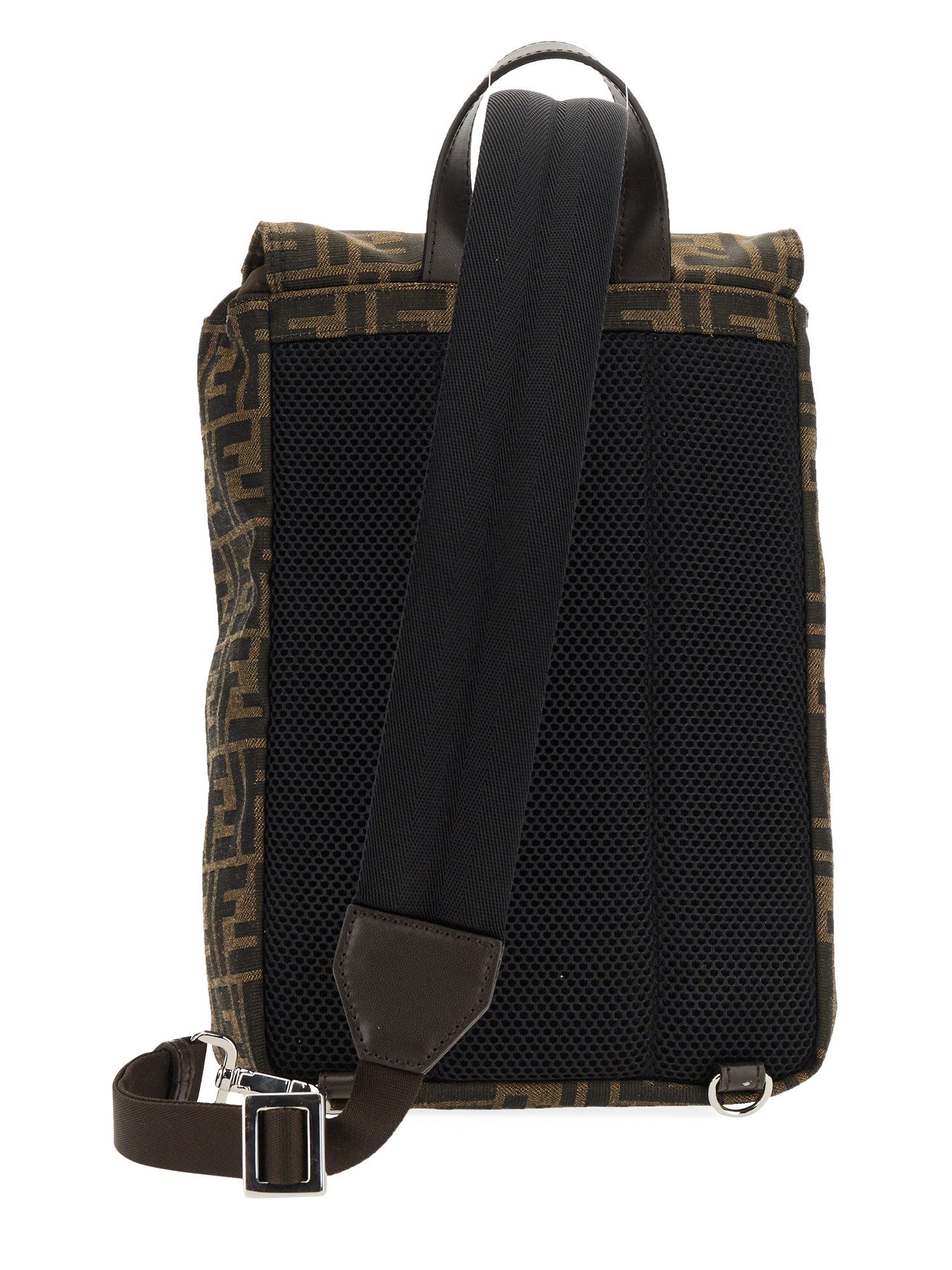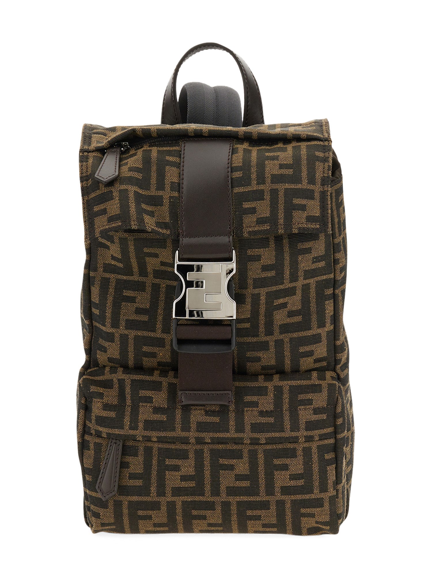 Small Fendiness backpack made of fabric with jacquard FF motif with a single-buckle fastening.