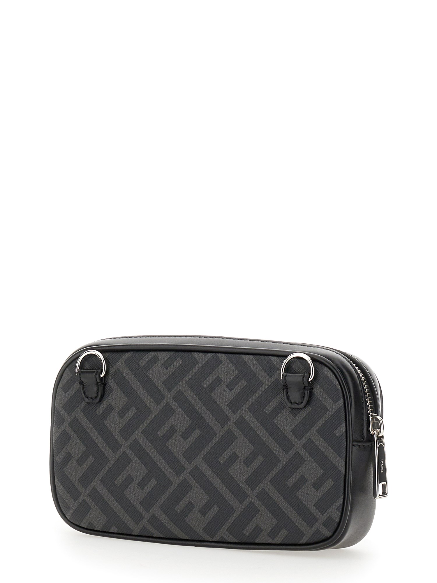 A small and stylish camera case by Fendi, with a logo on the front. The case is made of a light-weight fabric, and has a zipper closure. The zipper closure in the front is great for when you need to access your camera quickly. This camera case is small and compact, perfect for carrying around with you.