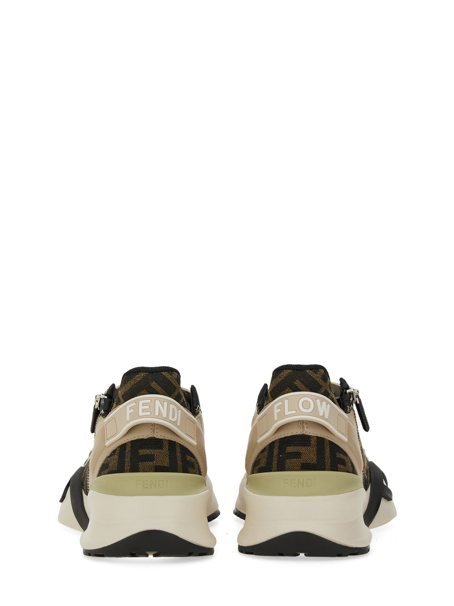 "FENDI FLOW" LEATHER AND JACQUARD FF SNEAKER