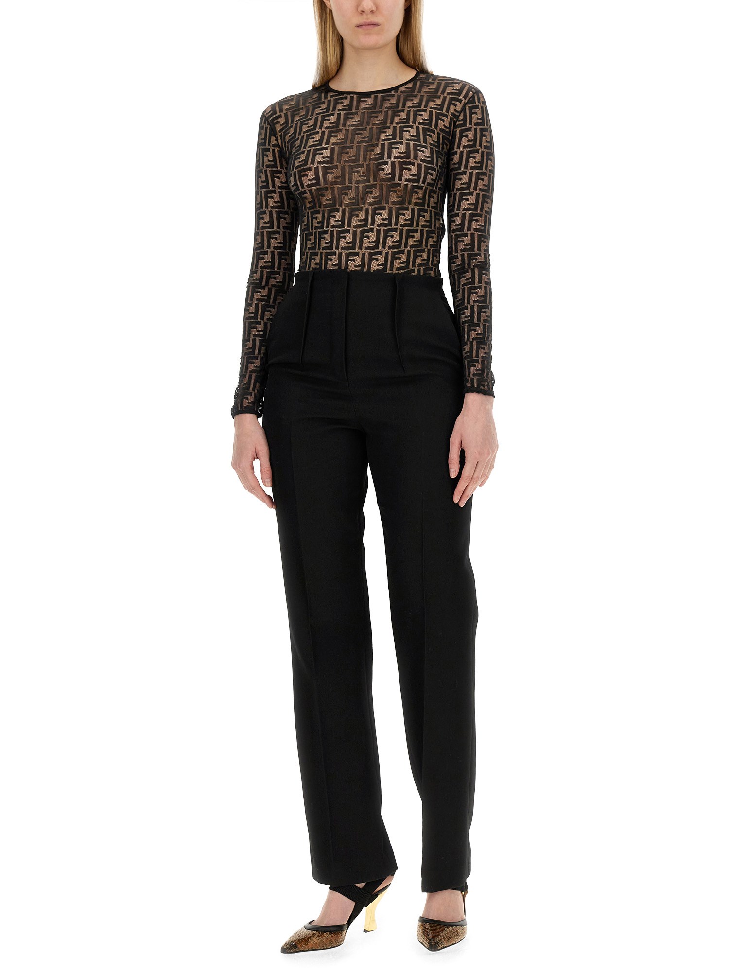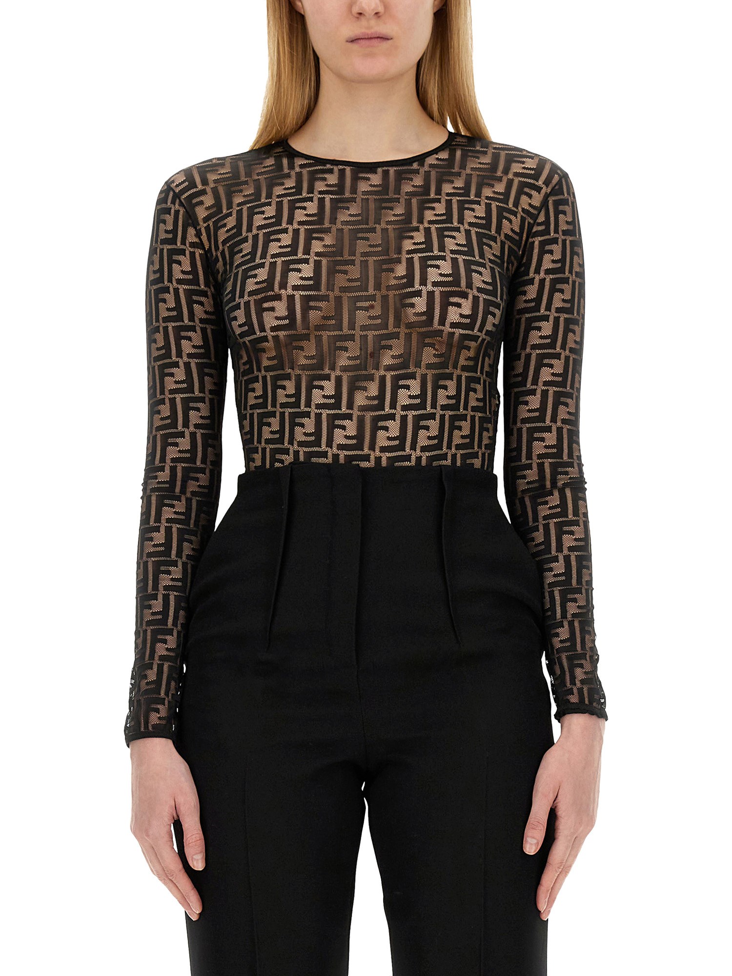 Upgrade your wardrobe with this stylish lace body top from Fendi. Crafted with a crew neckline and long sleeves, this top is perfect for a chic and elegant look. Made from high-quality polyamide, it offers both comfort and style.