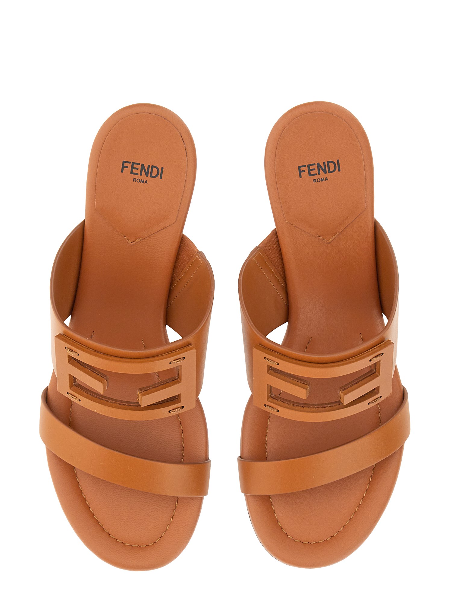 - STILETTO HEEL: 6.5 CM- WIDE BAND- TONE-ON-TONE FF BAGUETTE MOTIF- 100% CALFSKIN- MADE IN ITALY