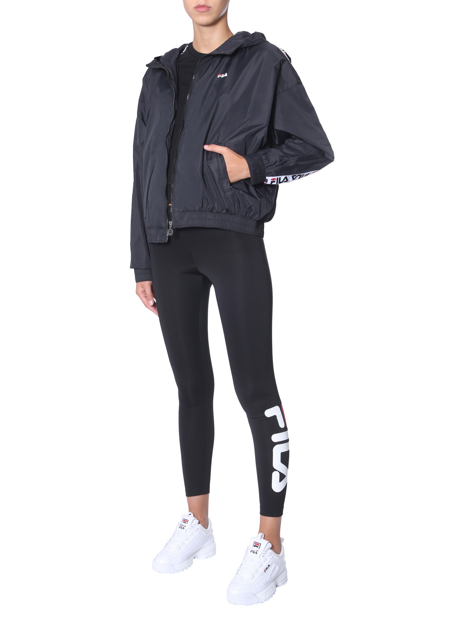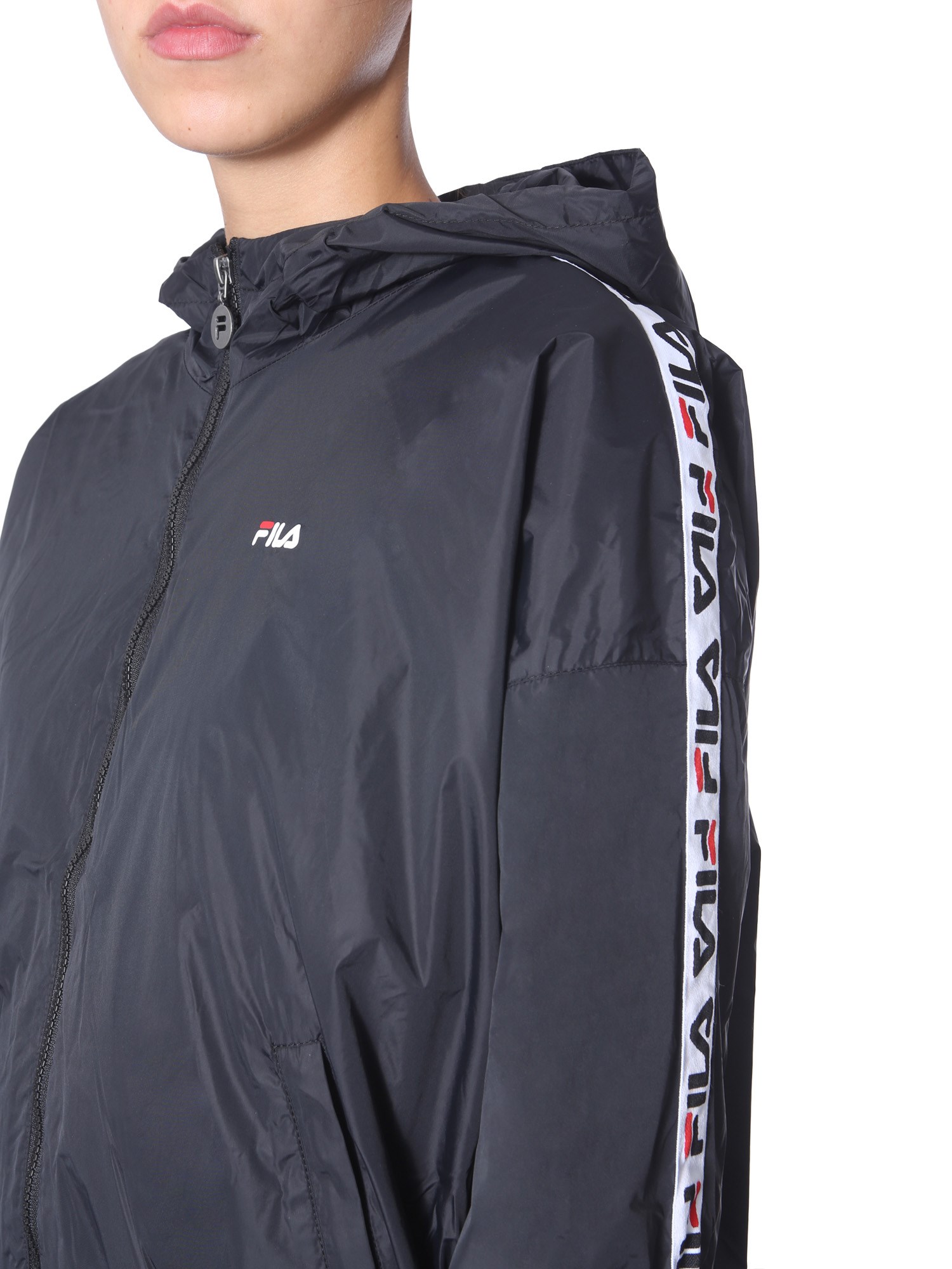 Upgrade your winter wardrobe with this hooded wind jacket from FILA. It is made of 100% polyamide that makes it durable and water resistant. It has a high neck with hood and long sleeves. The logo band stitched on the sleeves completes its stylish look. You can use the two side pockets to keep things like phone and keys.