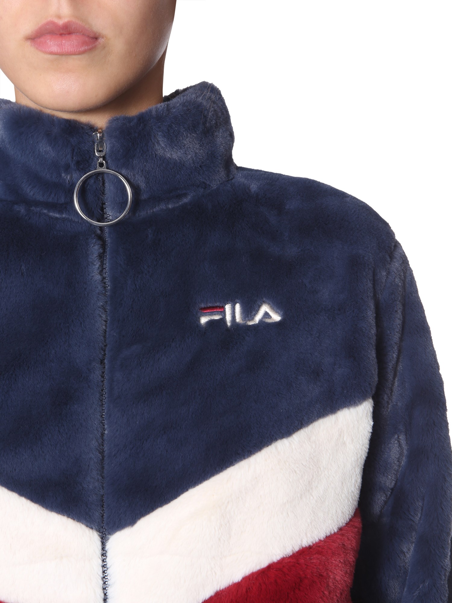 Walk with confidence wearing this fabulous, faux fur jacket presented by Fila in their Charmaine collection. The polo neck, accompanied by a zip closure at the front together provides a comfortable fit on your body. Also, the colour block effect makes it suitable to wear over all your favourite outfits.