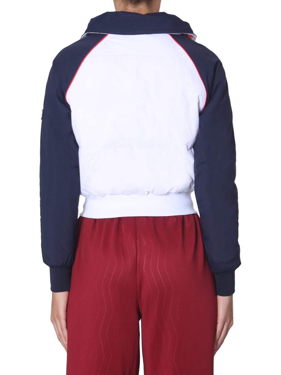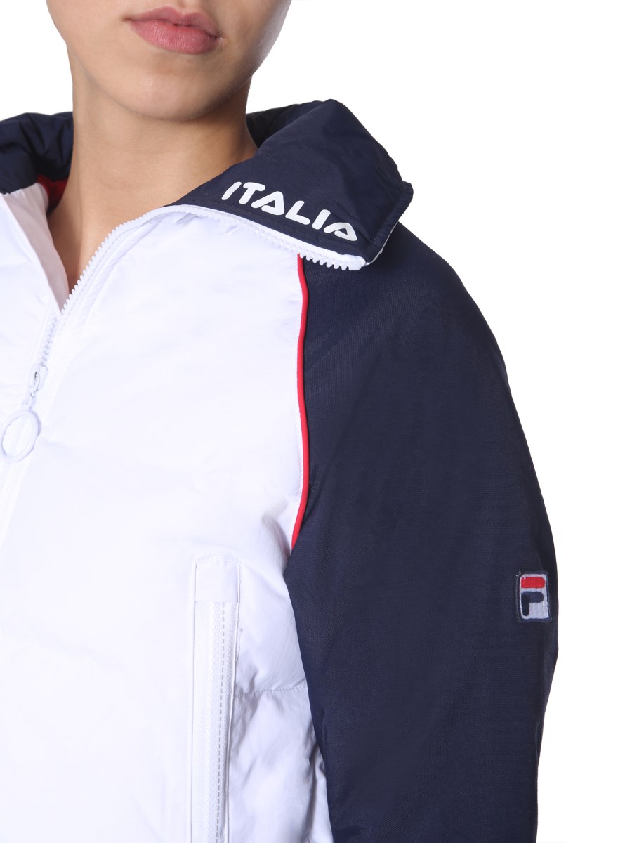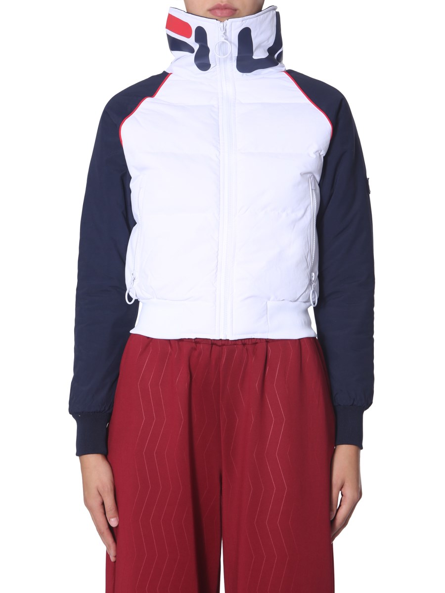 Head out for an adventure trip or an expedition with this "maiko" down jacket from FILA. The polyamide surface is strong and damage-resistant, while the polyester stuffing gives optimum insulation to keep you warm during fall. This jacket comes with a high polo neck and half zip closure, which areaccompanied by contrasting sleeves.