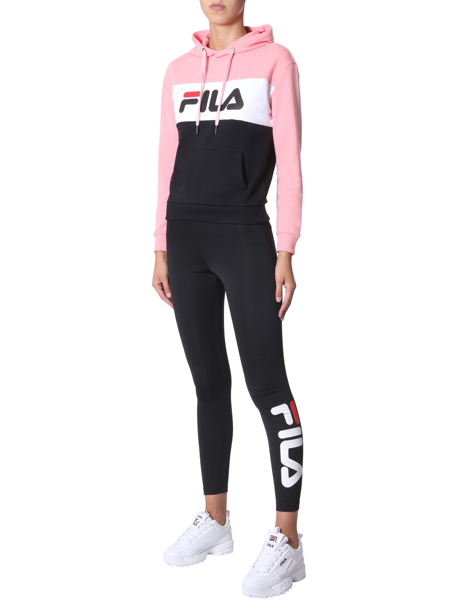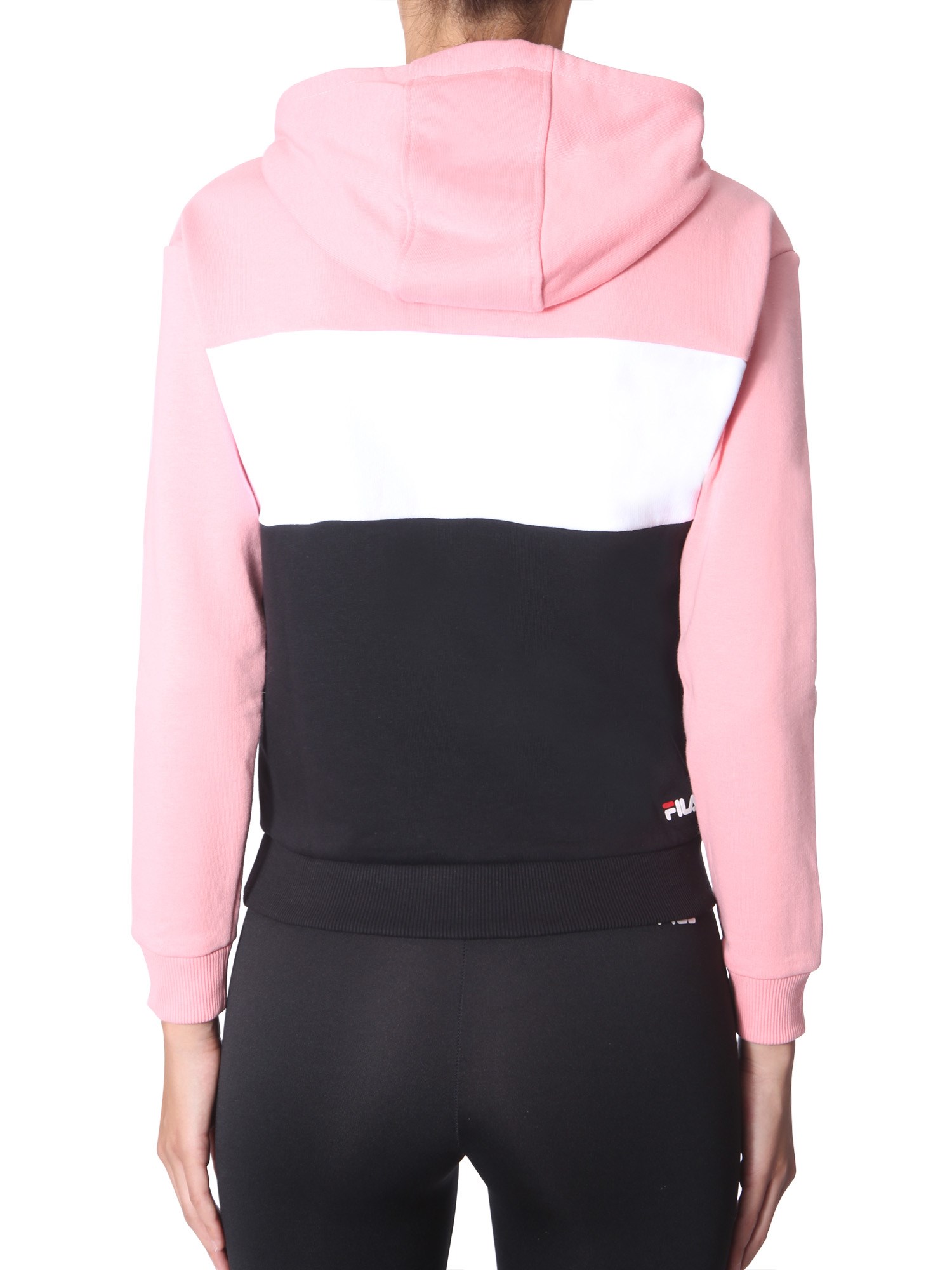 The Lori sweatshirt by Fila is a great addition to your workout collection. This sweatshirt has a logo band that further enhances its style and look. It is made with a blend of cotton and polyester for breathability and maximum comfort. The sweatshirt has a hoodie to keep your head warm and safe from the weather.