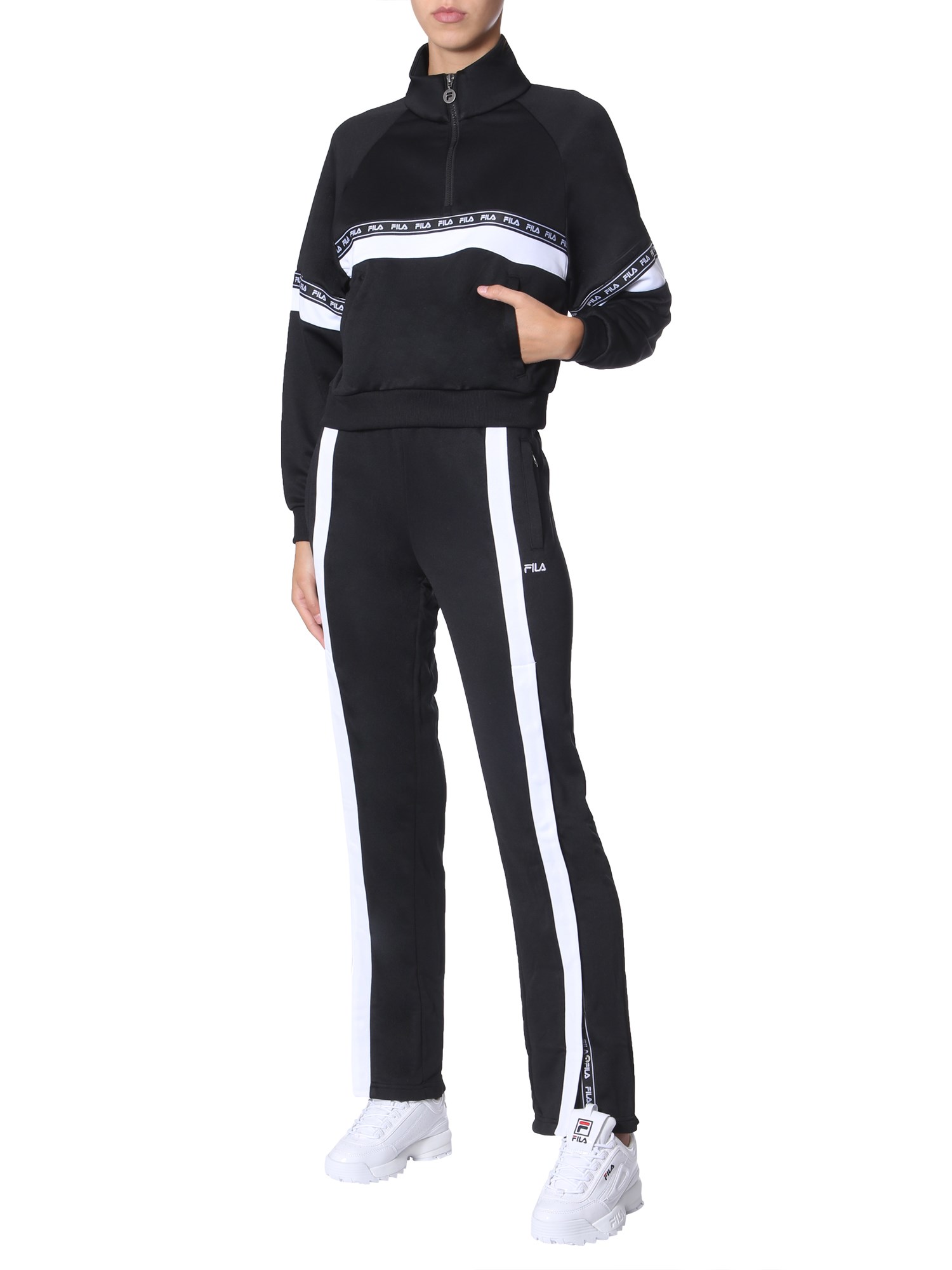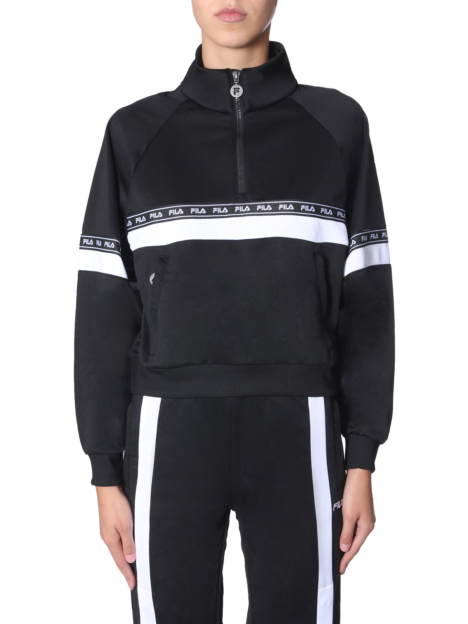 Wear the Chinami sweatshirt from Fila to get a comfortable and stylish wear all day long. It has a unique taped design running from sleeves through the chest. The half-zipper closure secures a polo corner and the whole sweatshirt is given in a cropped form. The raglan shoulders provide a relaxed fit that is easy to put on and remove.