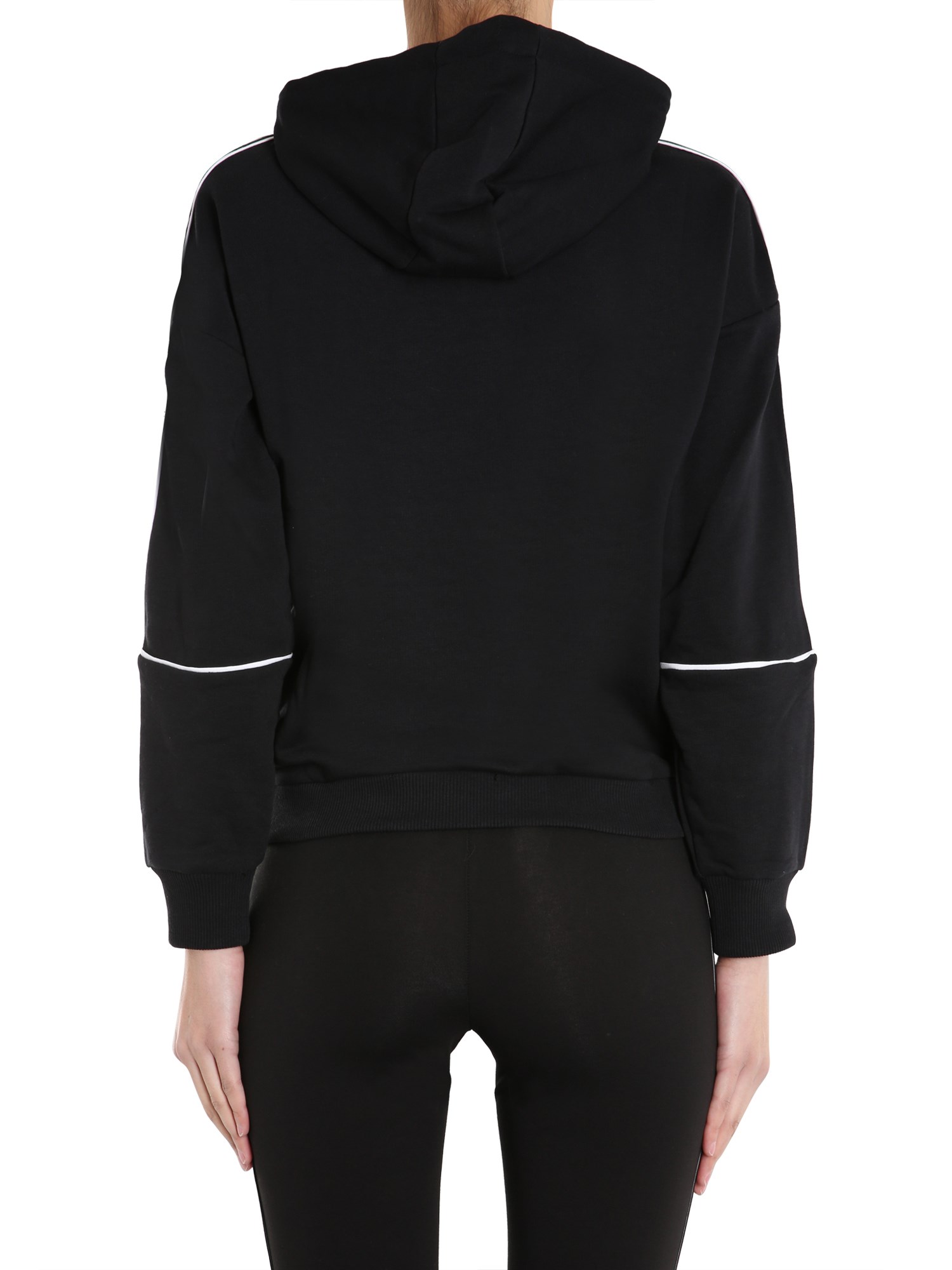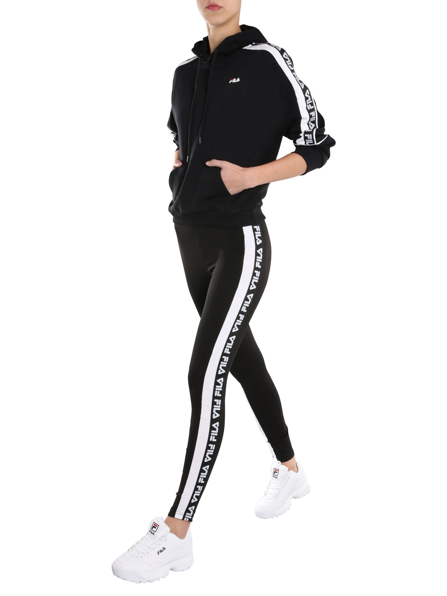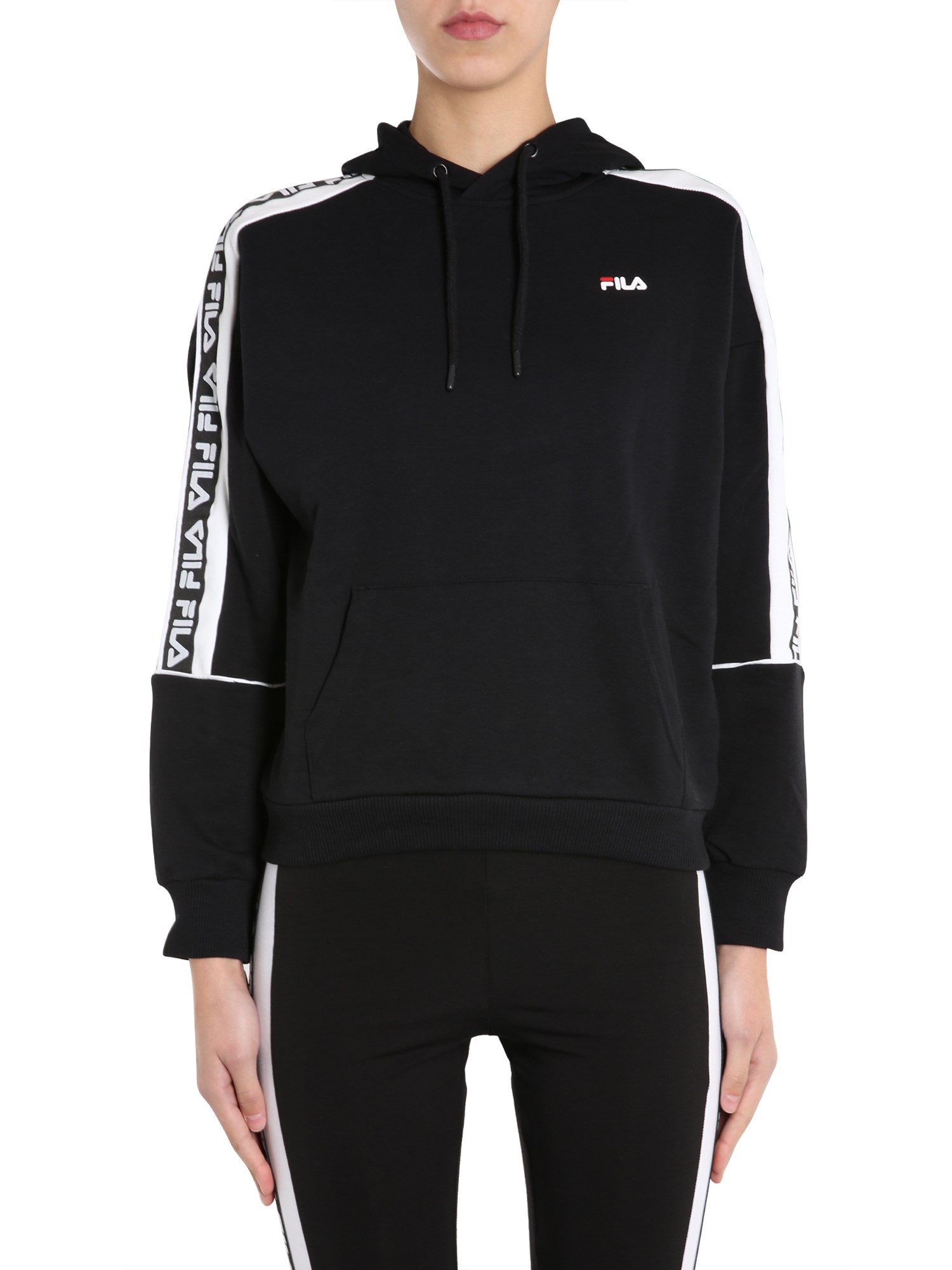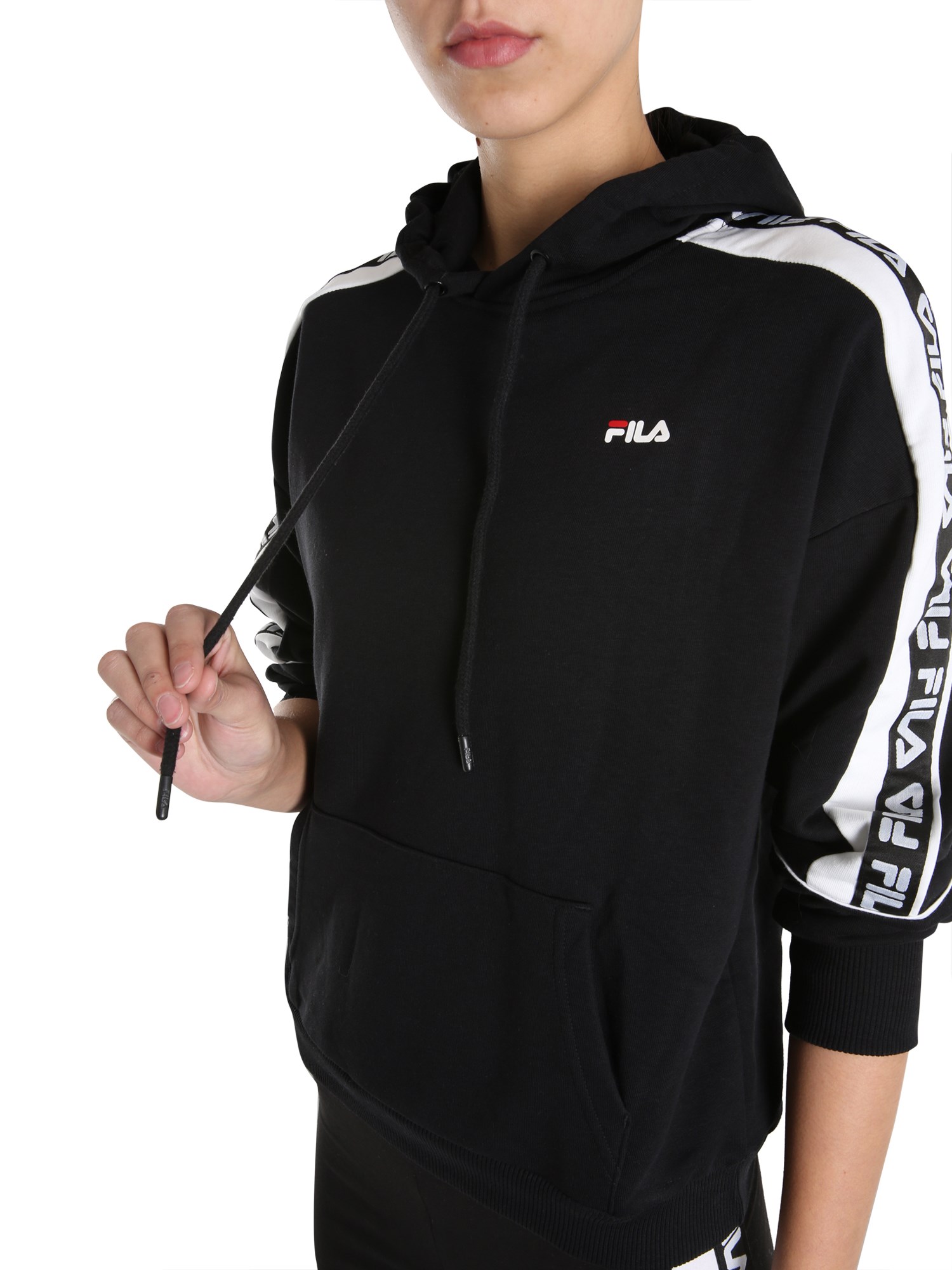 Make your everyday workout sessions fun in the Tavora sweatshirt by Fila. This blended cotton sweatshirt has a brushed inner to keep you warm on a cold day. It has a hooded neckline and regular fit. The sweatshirt with logo stripe and front pocket can be paired up with joggers and shoes.