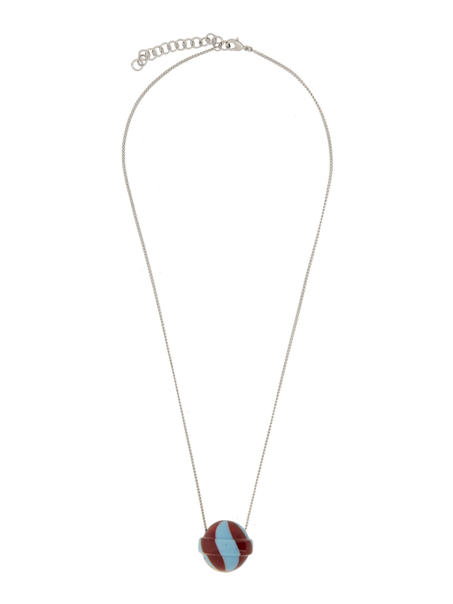 This necklace from Fiorucci features a delicate chain adorned with a playful lollipop pendant. The lollipop pendant, embellished with shimmering crystals, creates a mesmerizing sparkle that catches the eye. Its vibrant colours and intricate details make it a unique and eye-catching piece of jewellery