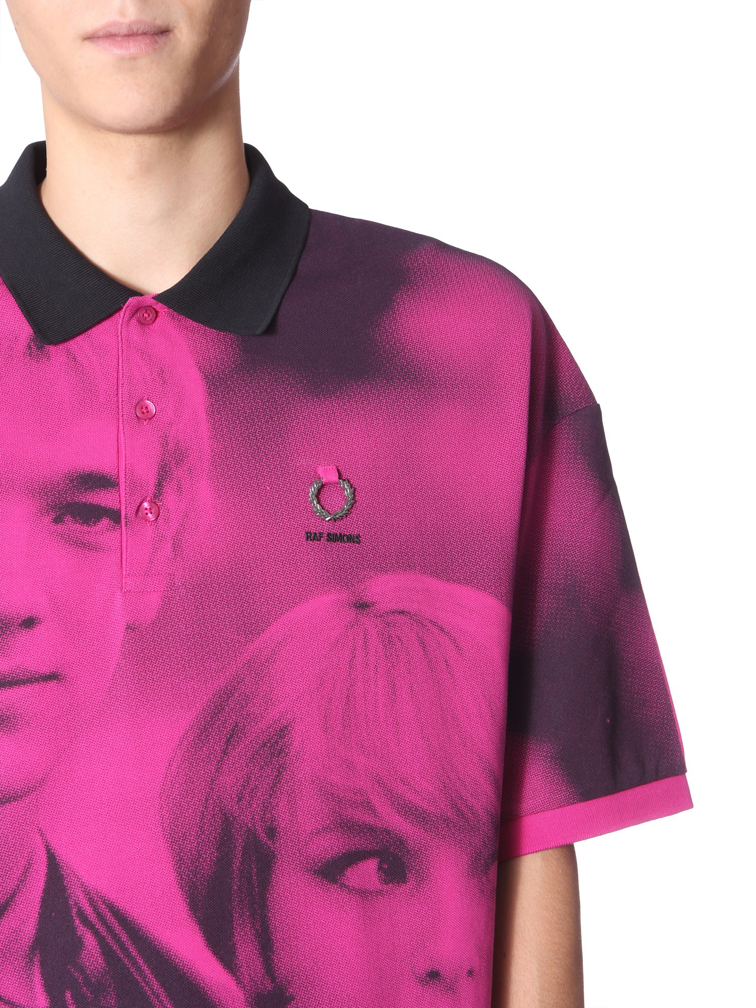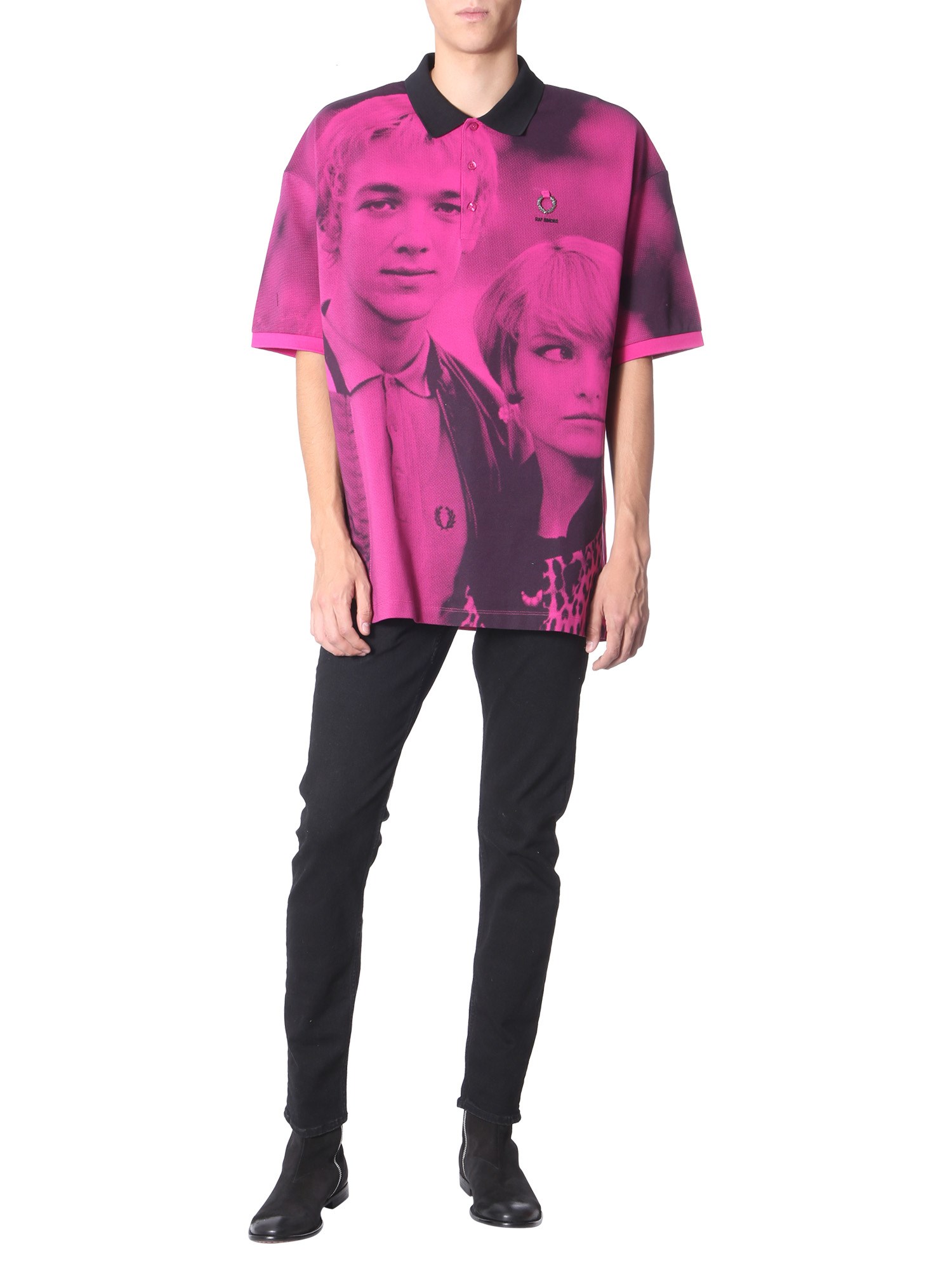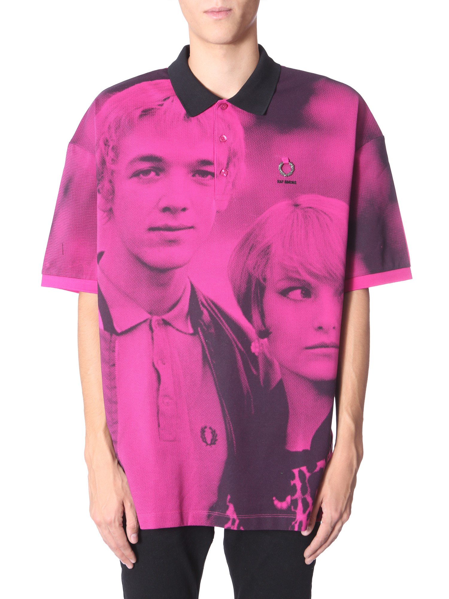 Upgrade your summer wardrobe with piqué polo T-shirt from Fred Perry X Raf Simons. It has classic collar and half front opening with three buttons. The photographic printing from the archive of George Plemper marks its distinctiveness. The metal tab with cororod'oro and Raf Simons embroidery completes its unique design.