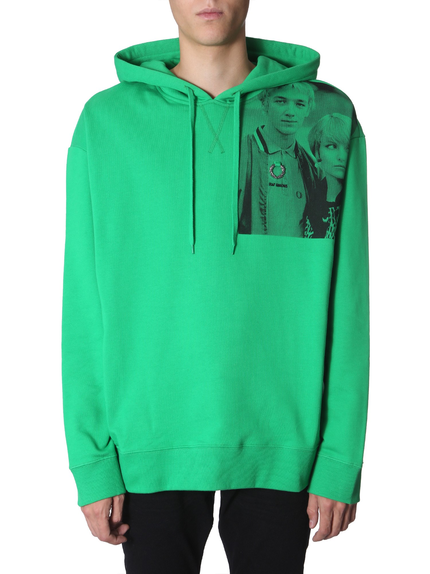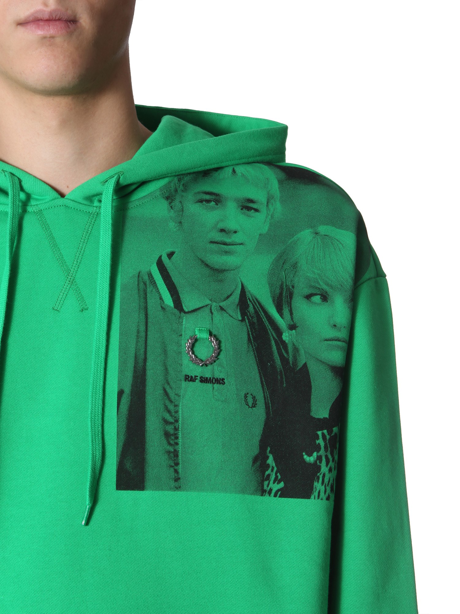Winter calls for this cool hooded sweatshirt from Fred Perry X Raf Simons. It is made of soft and pure cotton fabric and finished plush inner to give utmost warmth and soft feel on the skin. The George Plemper print at the front gives it a cool and trendy appeal. Style it with jeans or trousers to complete the look.