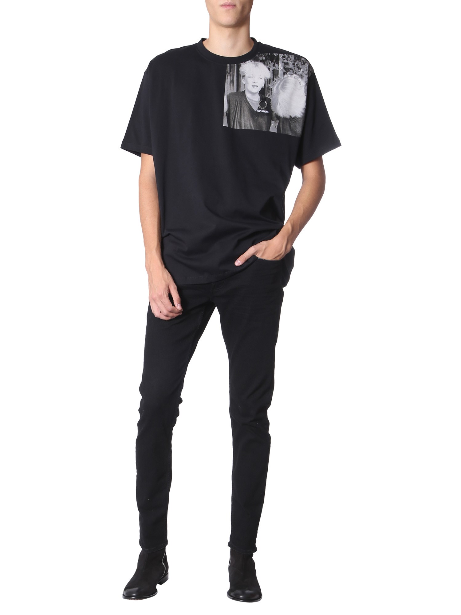 This T-shirt with printed shoulder from Fred Perry X Raf Simons is a summer essential for every guy. Owing to the fine quality cotton, the apparel is soft, breathable and stays new for a longer period. Its dark colour scheme lets you wear it in winter as well. The print detail matches well with its basic design.