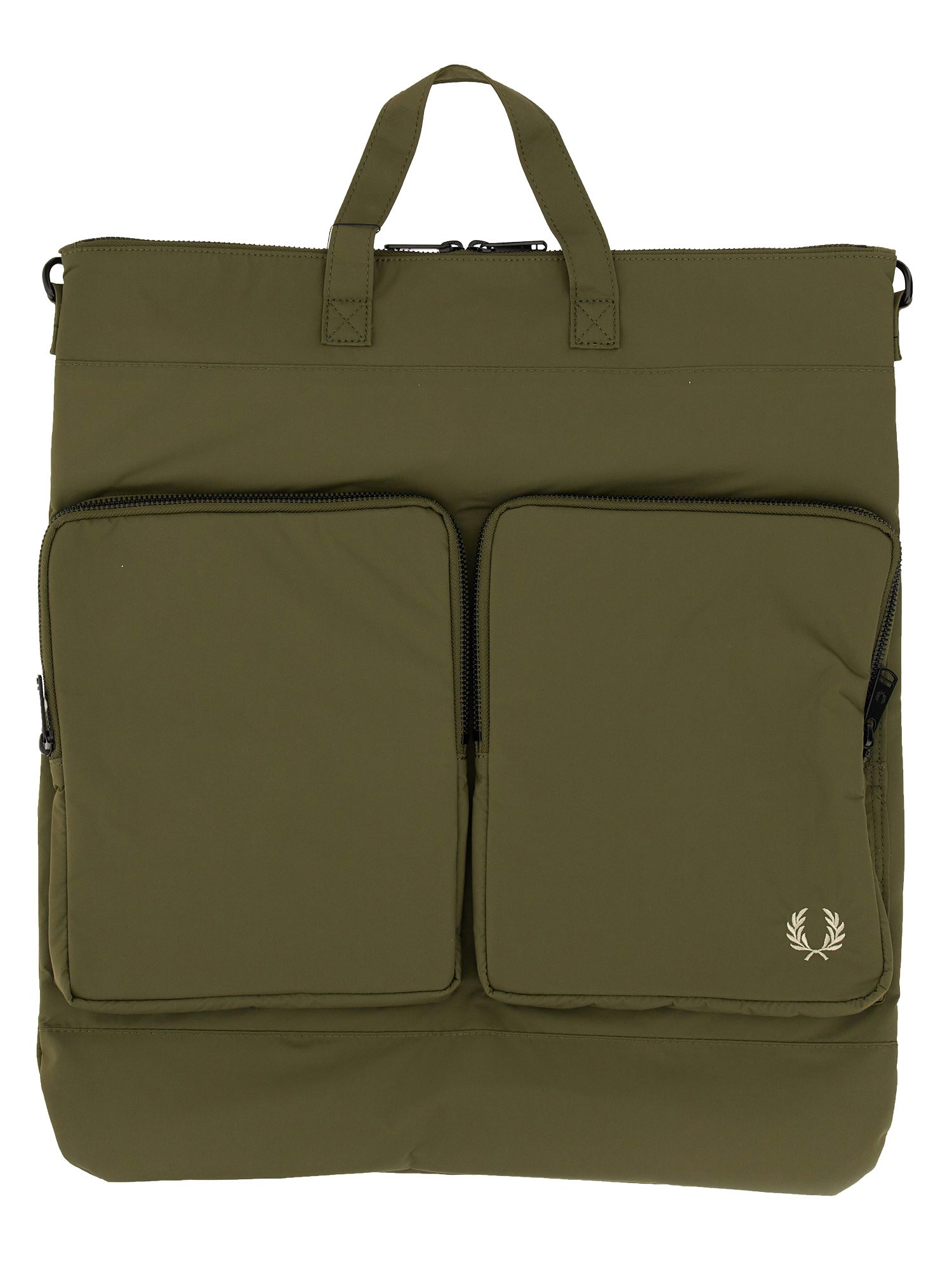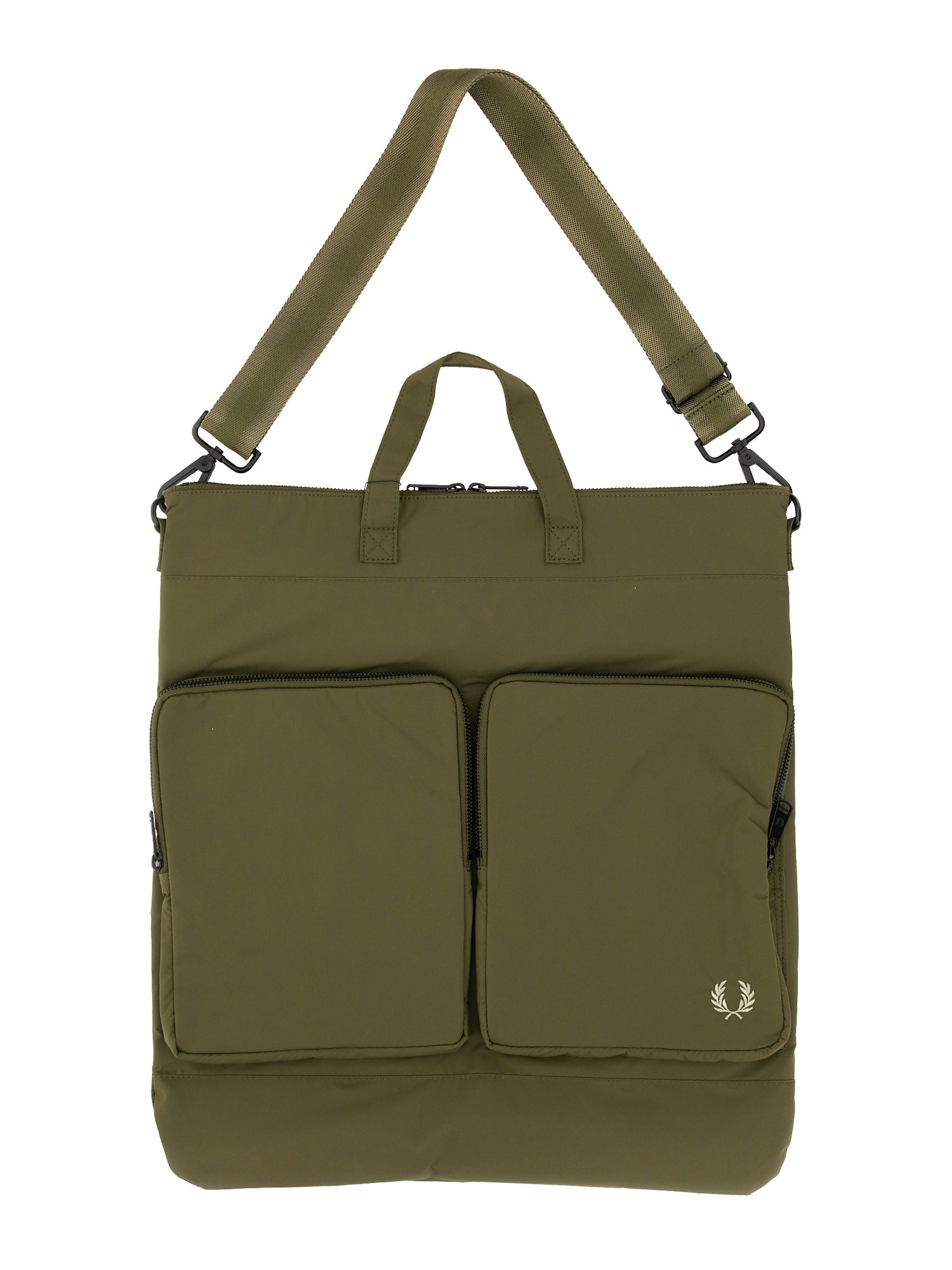The Olive Green Bag "Helmet" by Fred Perry will elevate your look. This stylish and functional bag is ideal for stylishly transporting your necessities. Constructed from premium materials, this bag is long-lasting and robust. Olive green accessories are a must-have for anyone who is fashion forward since they lend a touch of refinement to any ensemble.