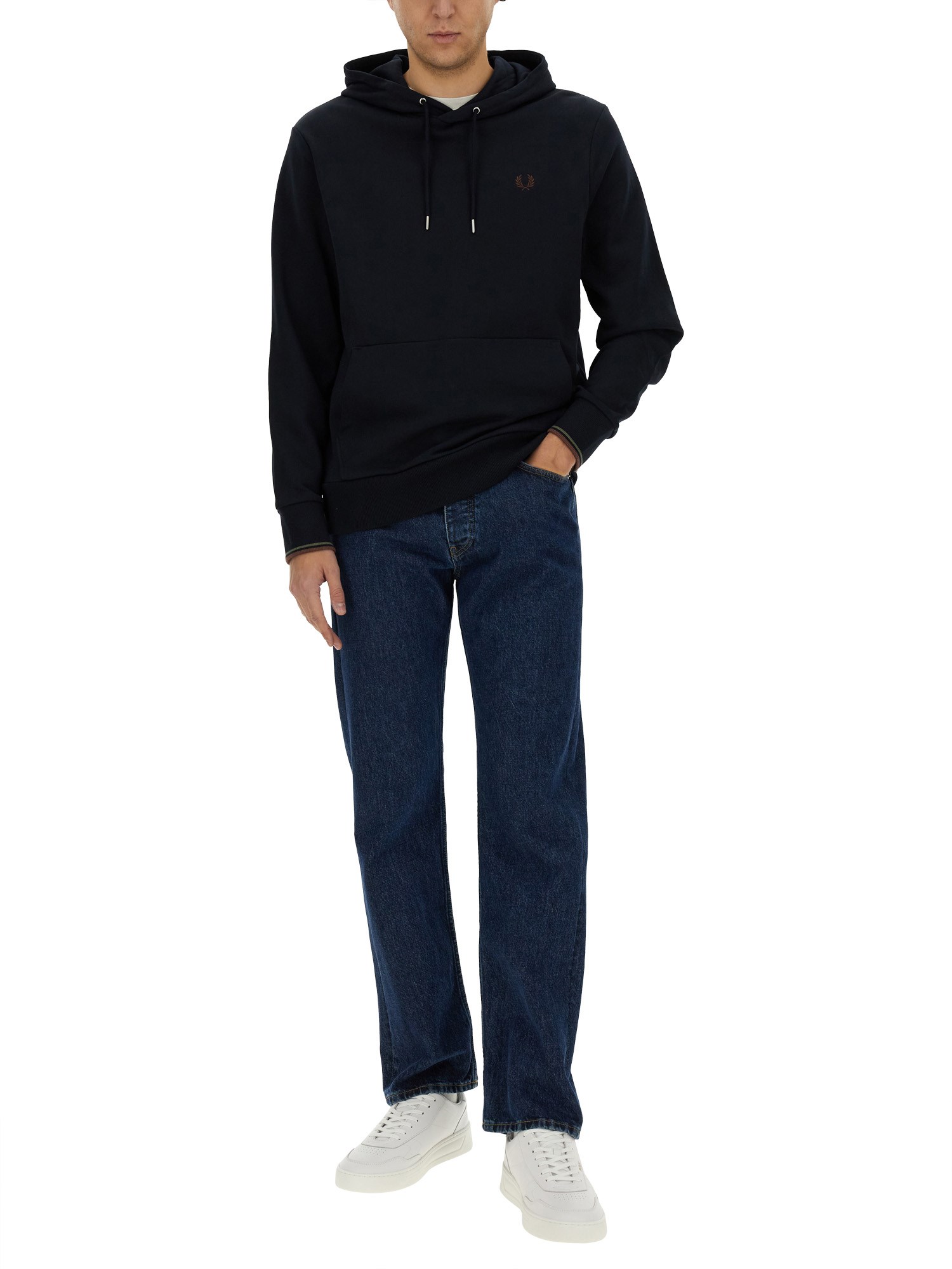This Fred Perry sweatshirt features a distinctive logo patch, embodying the brand's classic style and heritage. Crafted from high-quality materials, it offers both comfort and durability, making it an ideal choice for casual wear. The sweatshirt's versatile design allows for easy pairing with various outfits, while the logo patch adds a touch of sophistication and authenticity. Perfect for those who appreciate timeless fashion, this piece is a must-have addition to any wardrobe.