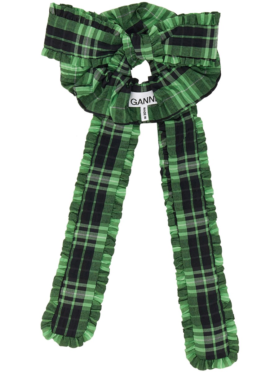 This soft, lightweight, comfortable, and sustainable organic cotton scrunchie from Ganni features a bow detail logo label. Cute, soft, and durable, this bow detail logo label organic cotton scrunchie is a perfect gift for the fashionista in your life. The bow detail logo label organic cotton scrunchie is an accessory that will help your little girl or guy's outfit pop.