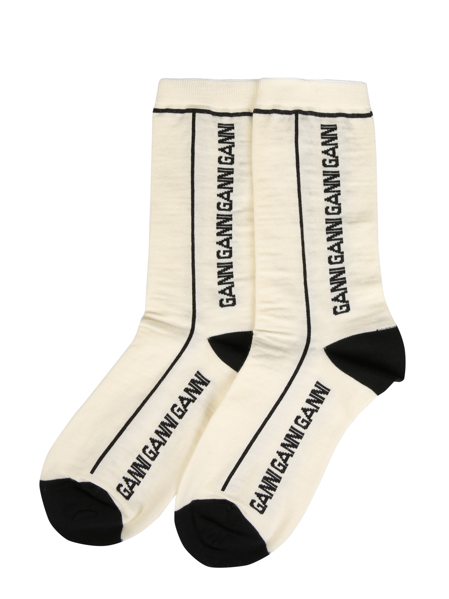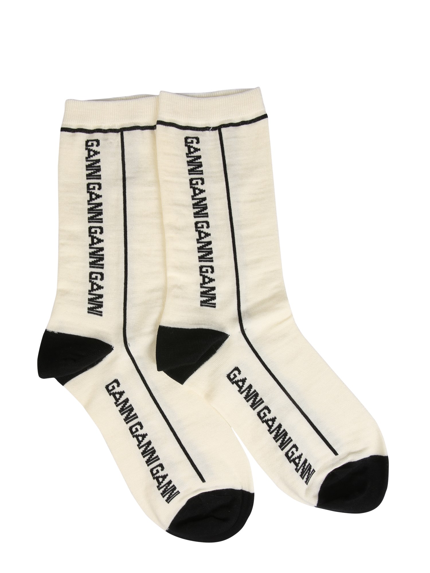 Pamper your smooth and sensitive feet with the Socks with Logo from Ganni. Flaunting an exciting colour, the socks are stylish enough for formal and casual situations. The soft knit socks have the components of elastane for a snug fit without leaving any marks. Merino wool assures round the year use.