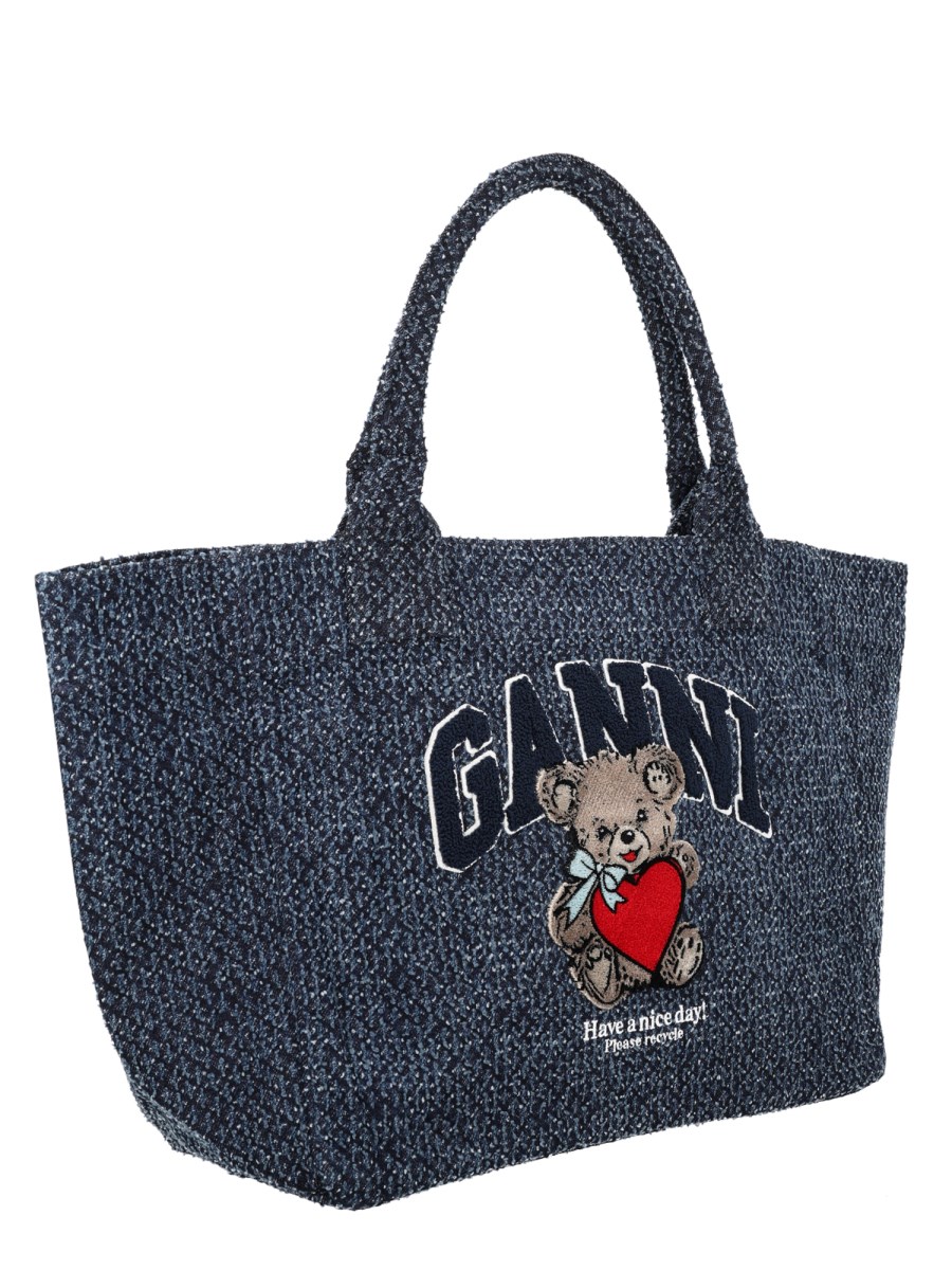 COTTON DENIM MEDIUM "TRAPEZE BEAR" BAG