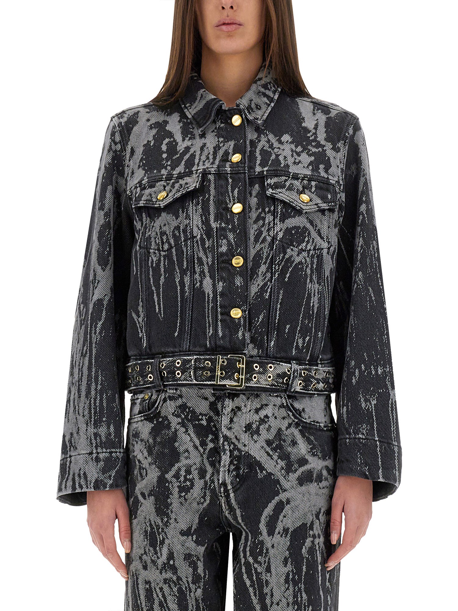 Elevate your wardrobe with the GANNI Heavy Denim Jacket, a timeless piece that combines durability with contemporary style. Crafted from premium heavy denim, this jacket offers a structured fit that flatters all body types while providing exceptional comfort. Its classic design features a button-up front, chest pockets, and a slightly oversized silhouette, making it perfect for layering over your favourite outfits. Whether you're dressing up for a night out or keeping it casual, this versatile jacket is an essential addition to any fashion-forward closet.