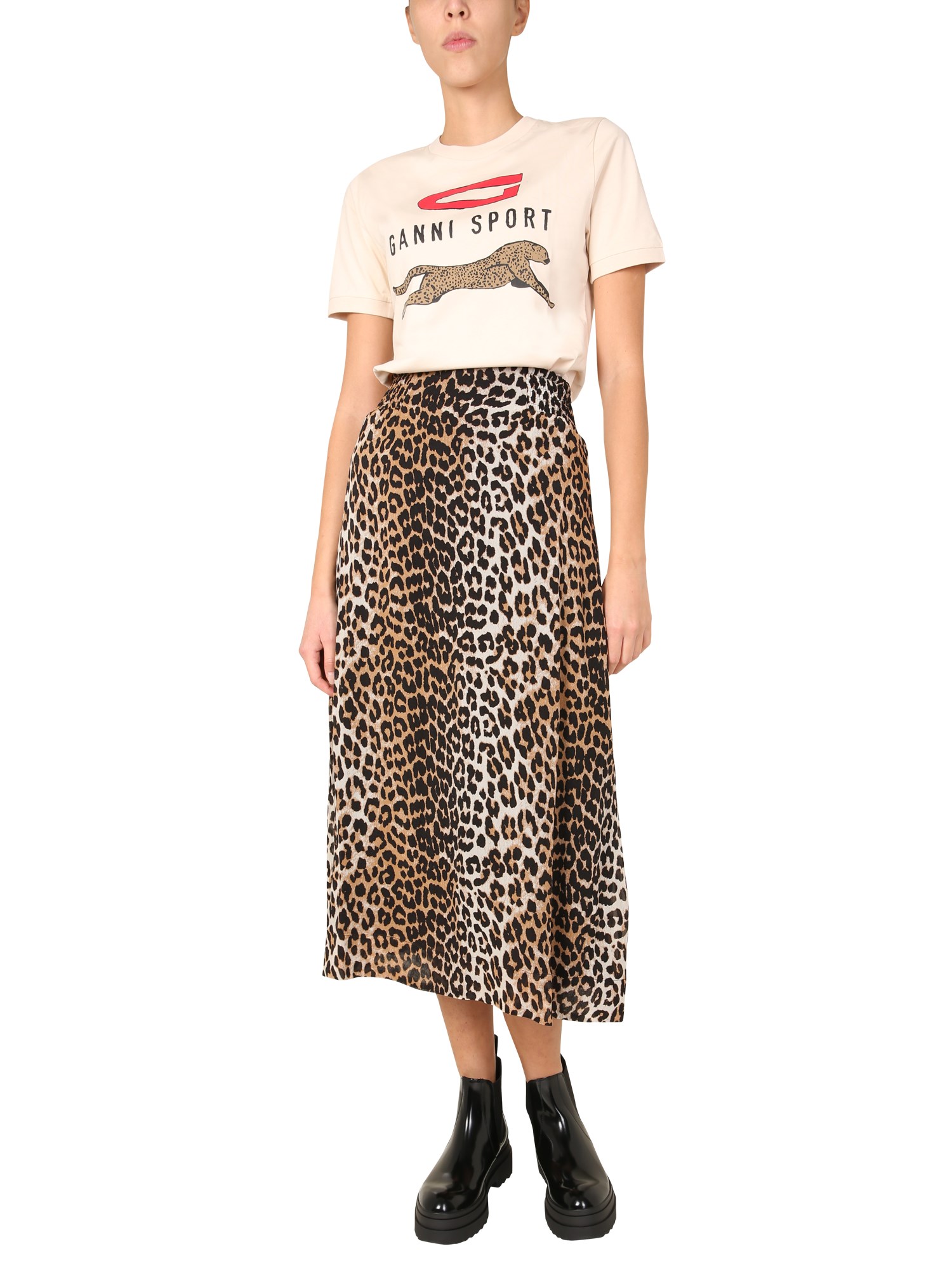 Wear the Ganni Midi Skirt this spring since it is a timeless style that will never go out of style. The midi skirt has a leopard print over the entire surface and an elastic waist with a line model. It's made of durable yet comfy, 100% polyester. Pair this wonderful leopard print midi skirt with your favourite crop top for a fun attire for vacation, housewarming celebrations, or shopping.