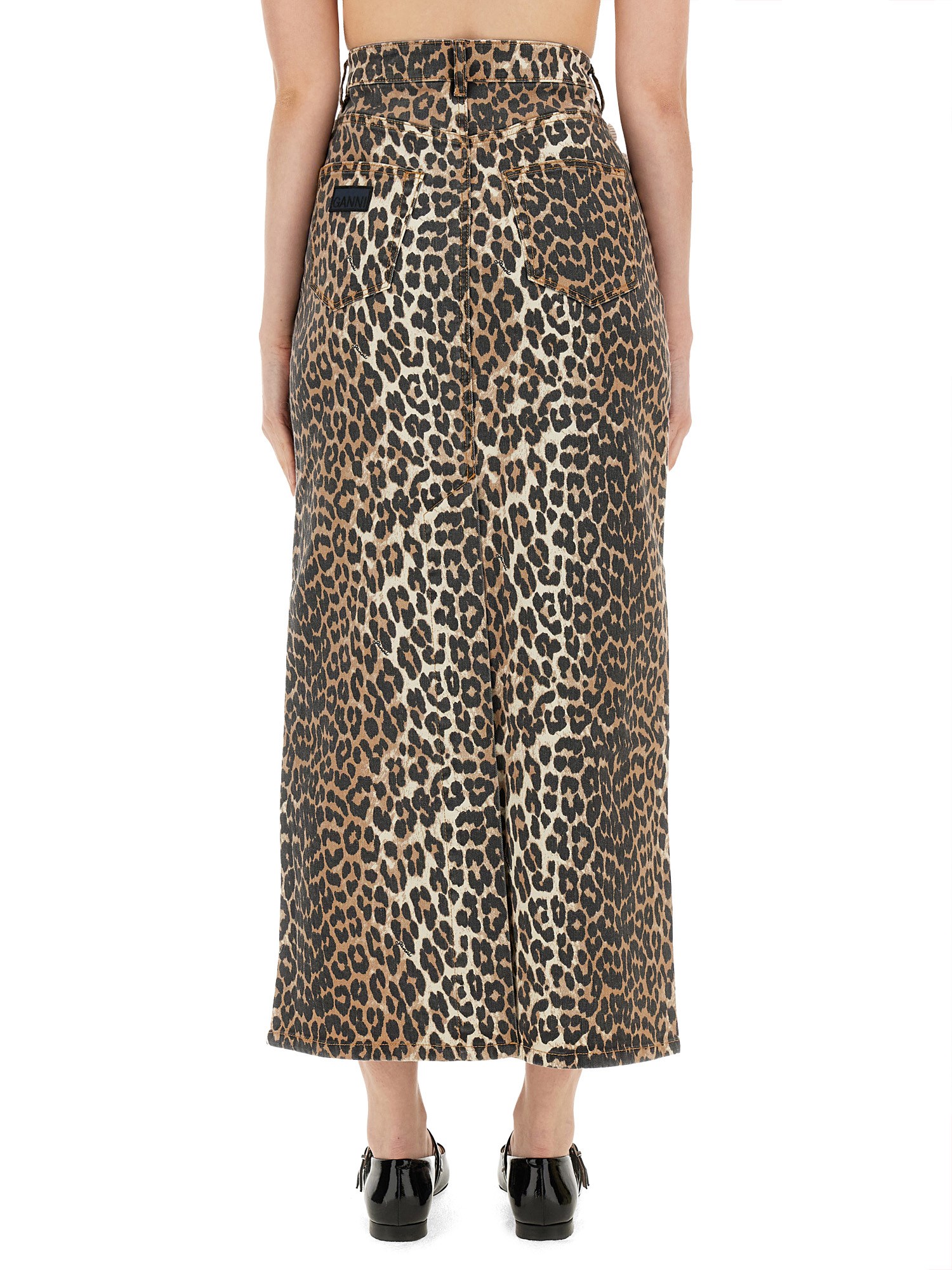 The Ganni skirt features a striking maxi slit, combining elegance with a contemporary edge. Crafted from high-quality materials, it offers both comfort and style, making it a versatile addition to any wardrobe. The design accentuates the silhouette while allowing for ease of movement, perfect for both casual outings and formal occasions. This skirt is an essential piece for those seeking to make a bold fashion statement.