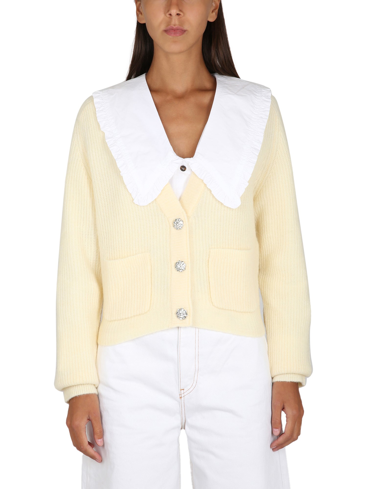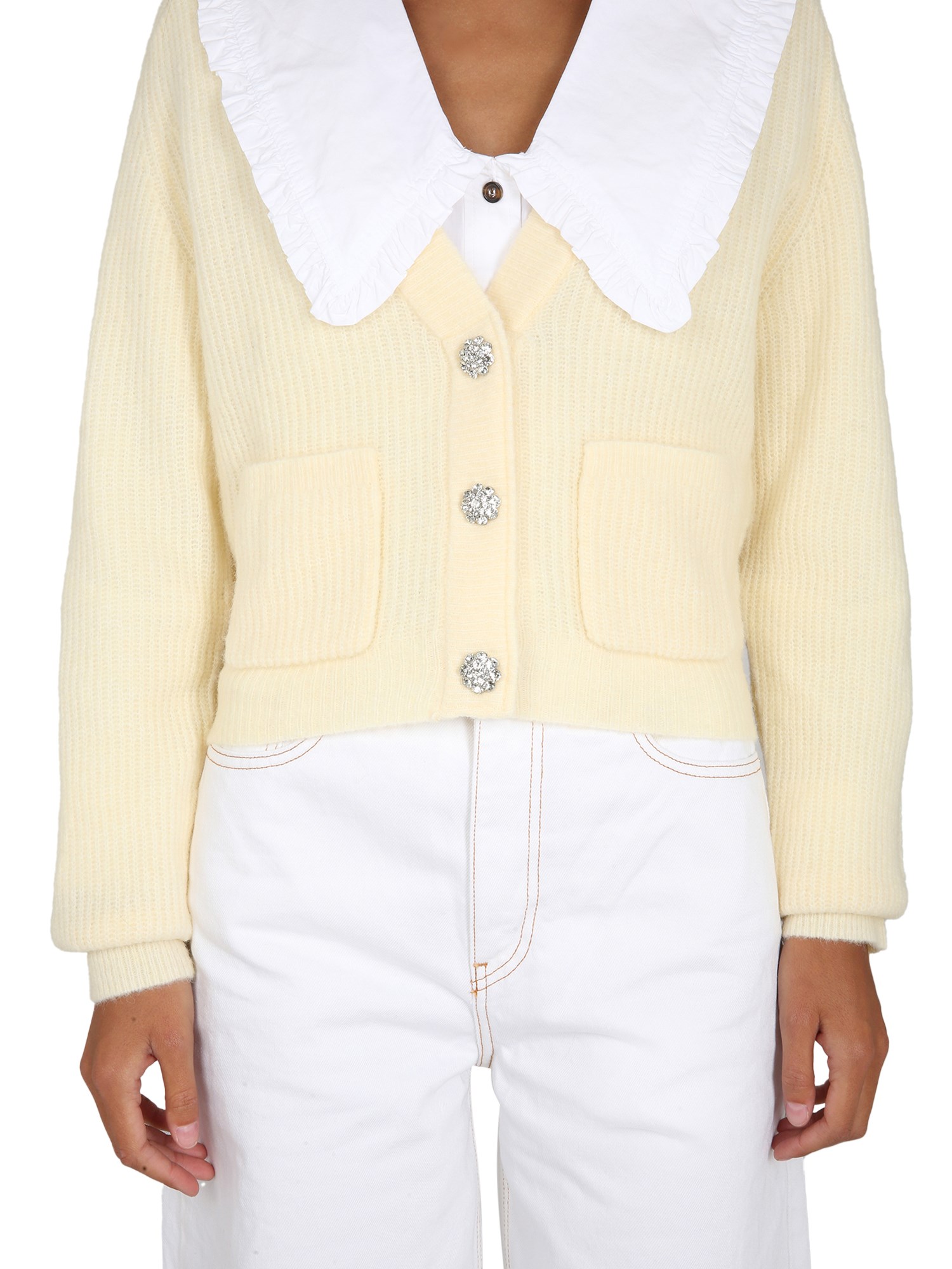 - FRONT BUTTON CLOSURE- V-NECK- TWO PATCH POCKETS- RELAXED FIT- 32% ALPACA, 32% MERINO WOOL, 30% POLYAMIDE, 6% ELASTANE- THE MODEL IS 180 CM TALL AND WEARS SIZE S