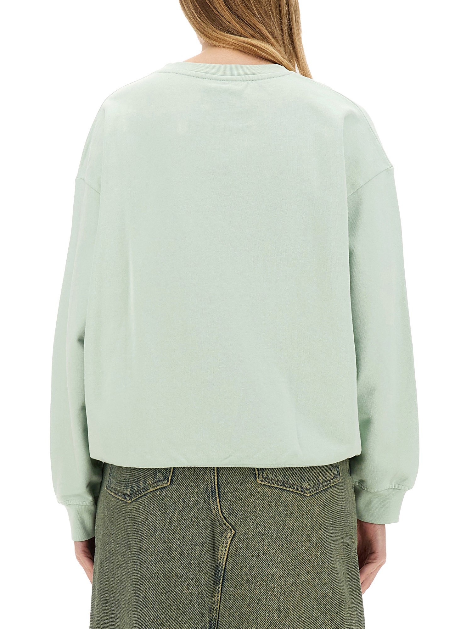 Elevate your casual wardrobe with the Ganni Oversize Sweatshirt. Made from soft cotton, this sweatshirt boasts a classic crew neckline, long sleeves, and a relaxed fit. Whether you're staying in or heading out, this pullover style sweatshirt will keep you looking effortlessly chic and feeling comfortable all day long.