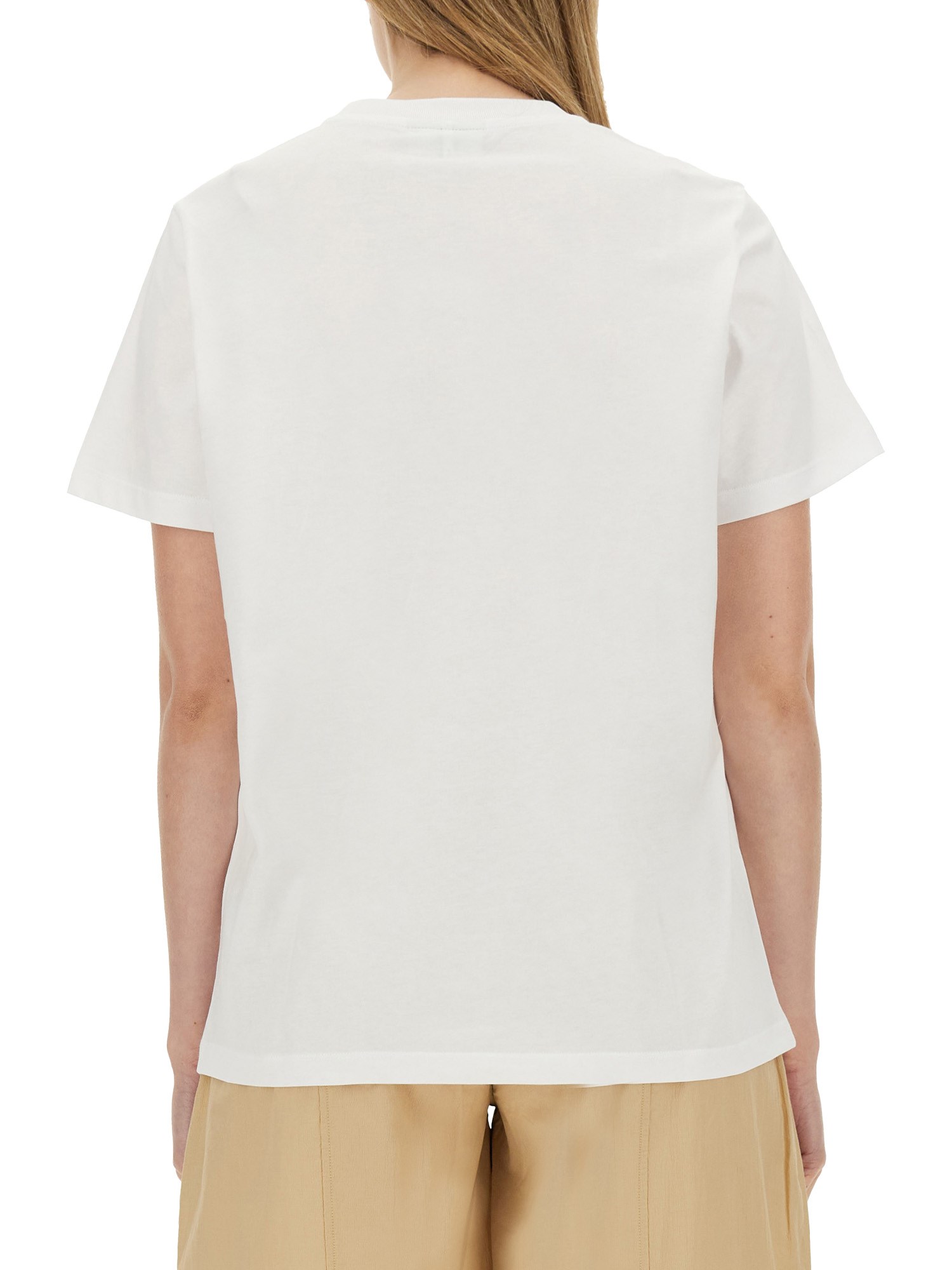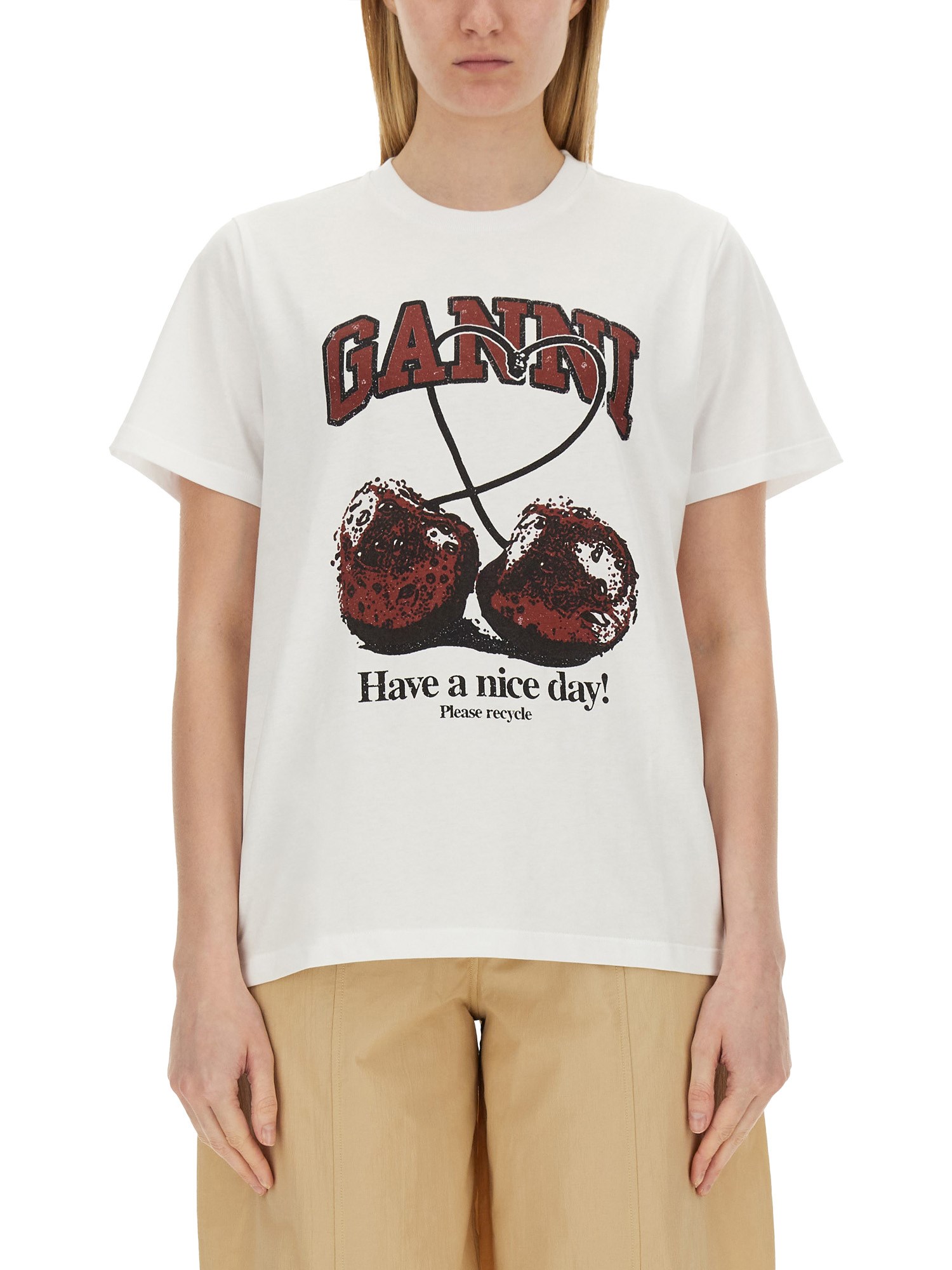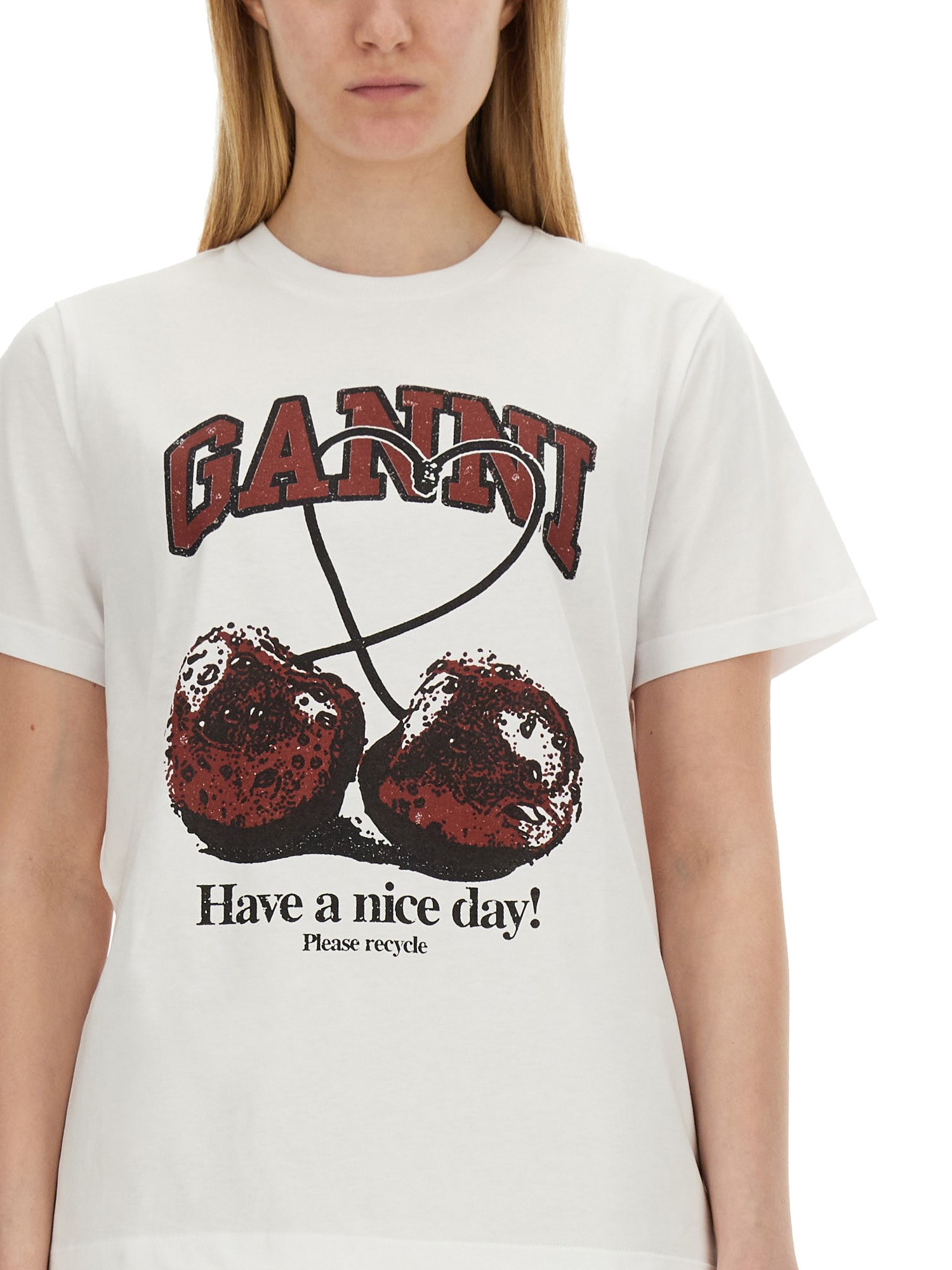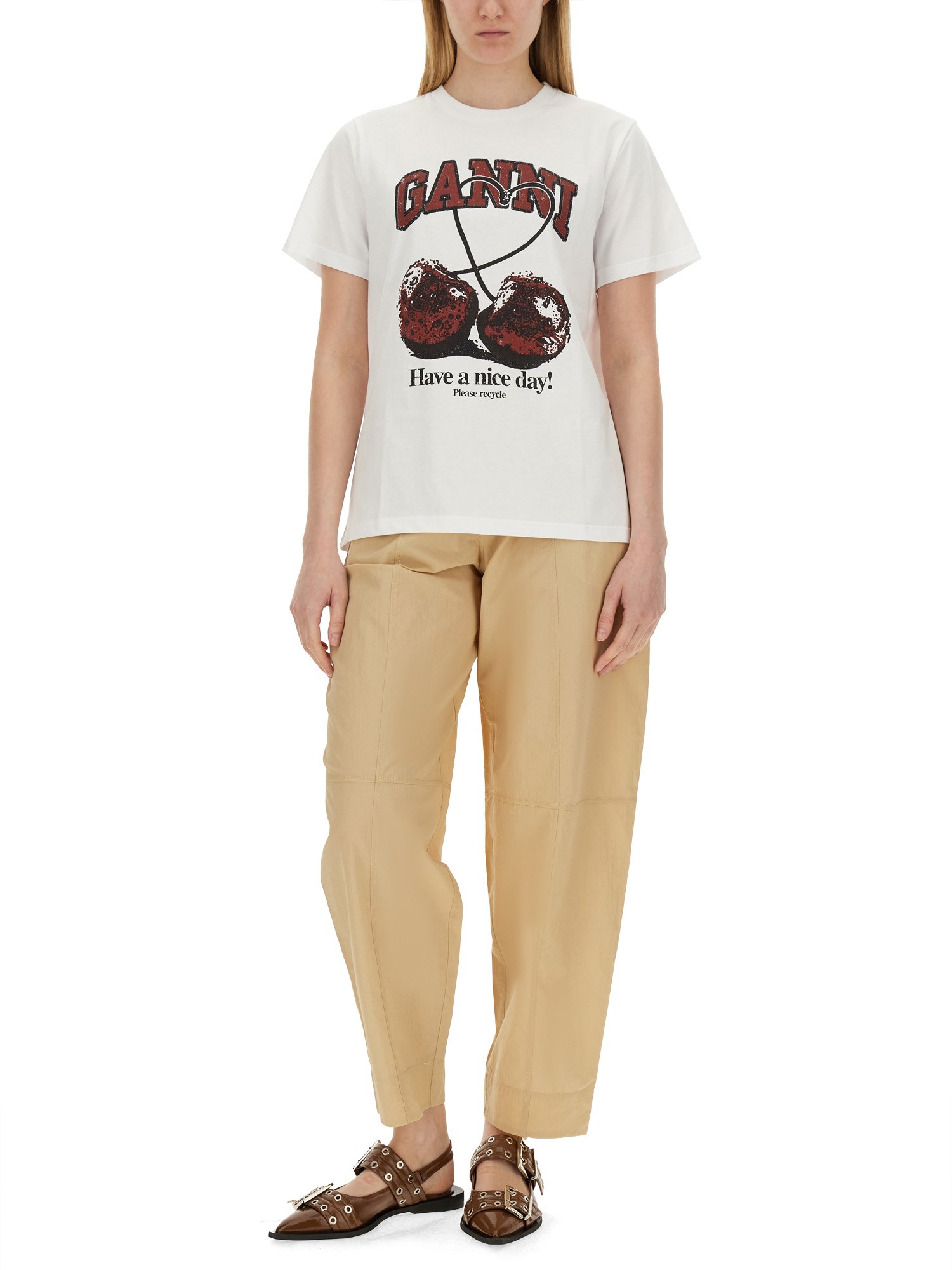 This T-shirt from Ganni is designed to provide a perfect blend of comfort and style. Made from 100% pure cotton, this T-shirt offers a soft and breathable feel, ensuring all-day comfort. The white colour of this T-shirt adds a touch of elegance, making it a versatile wardrobe staple that can be easily paired with any bottoms.