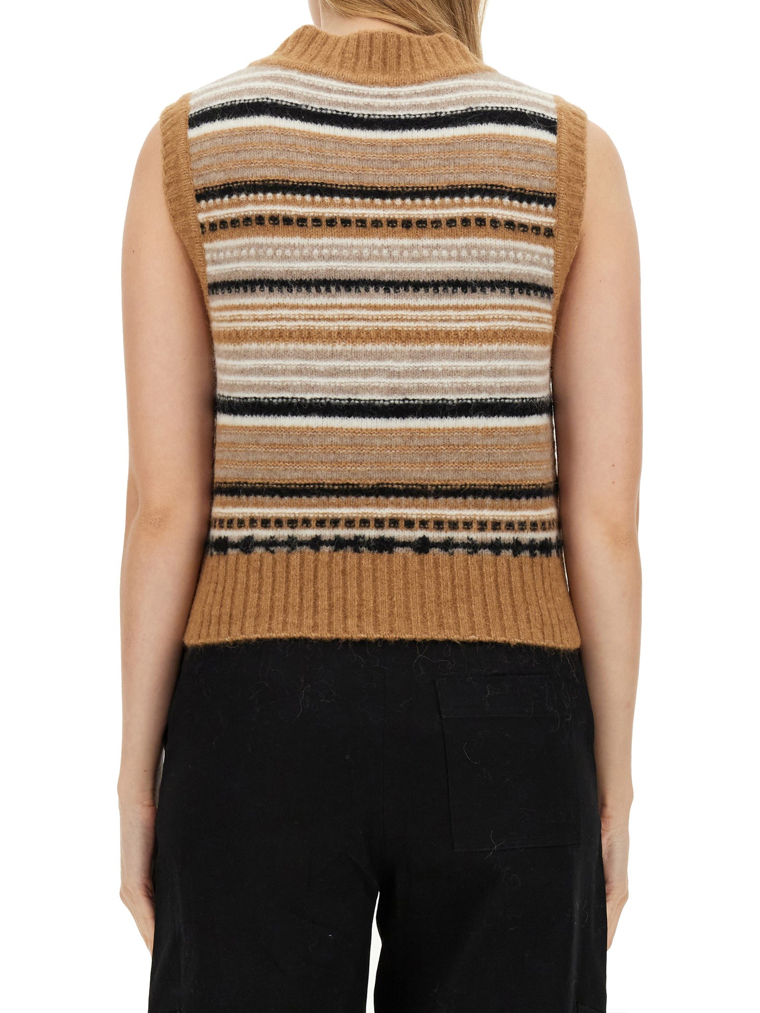 The Ganni V-Neck Vest for kids is a stylish and versatile addition to any young wardrobe. Crafted from high-quality materials, this vest features a classic V-neck design that offers both comfort and a fashionable silhouette. Ideal for layering, it can be paired effortlessly with various outfits, making it suitable for both casual and semi-formal occasions.