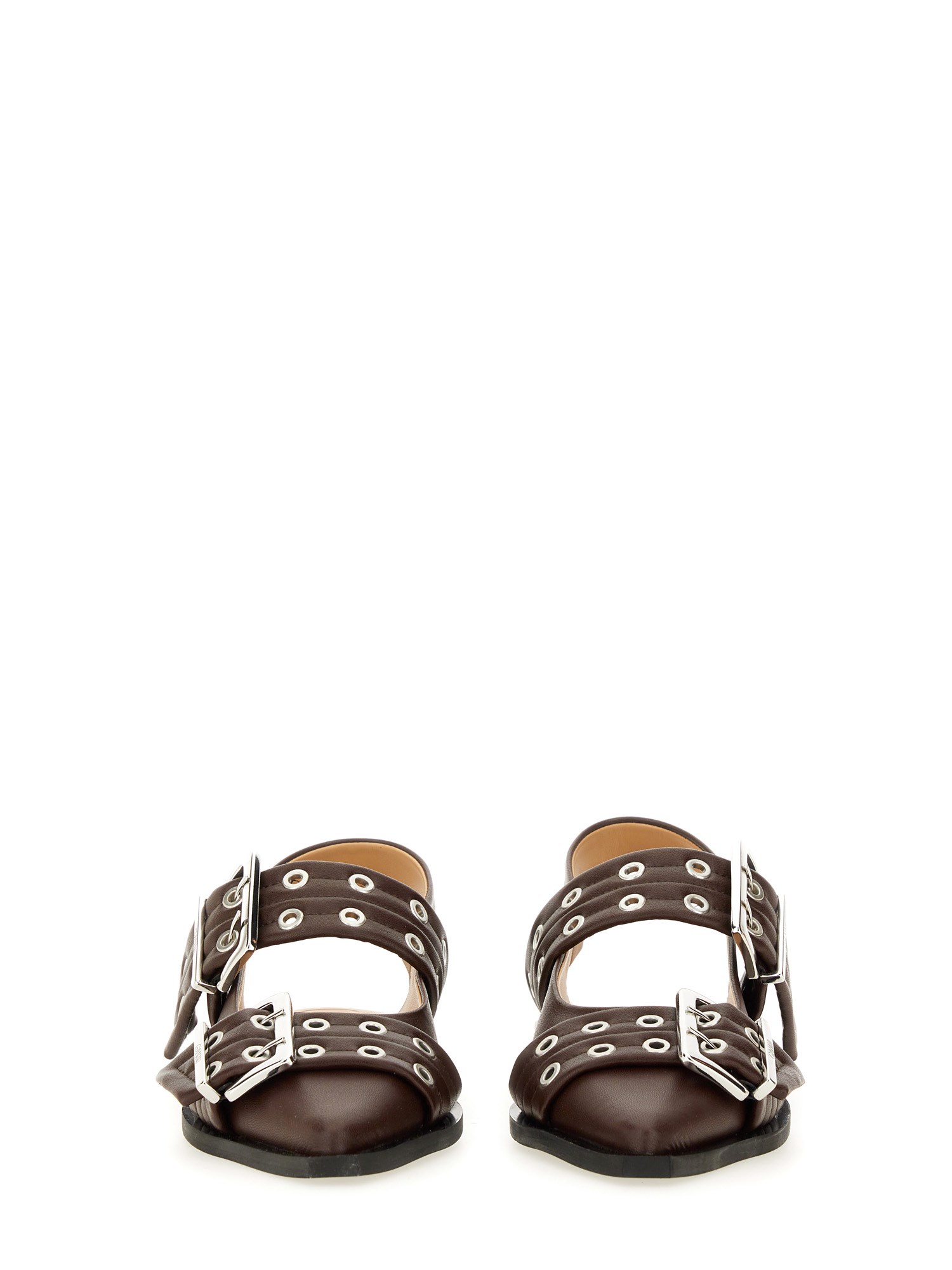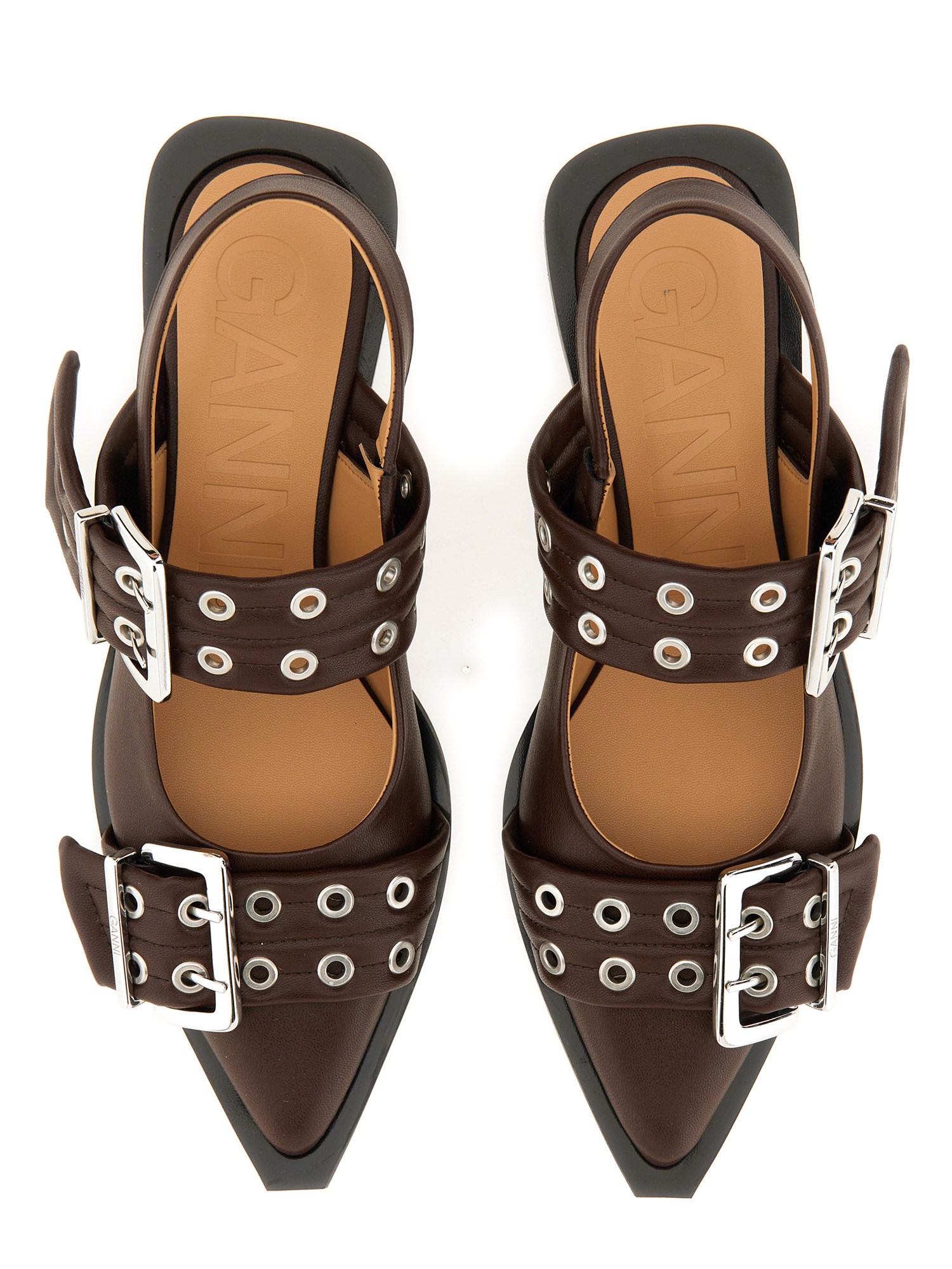 The Ballerina with Buckle from Ganni is a stylish and sophisticated footwear option that seamlessly blends comfort with contemporary design. Crafted from high-quality materials, this elegant shoe features a chic buckle detail that adds a touch of refinement, making it suitable for both casual and formal occasions. Its versatile silhouette ensures it can be paired effortlessly with a variety of outfits, while the cushioned insole provides all-day comfort. Elevate your wardrobe with this essential piece that embodies Ganni's commitment to modern aesthetics and functionality.