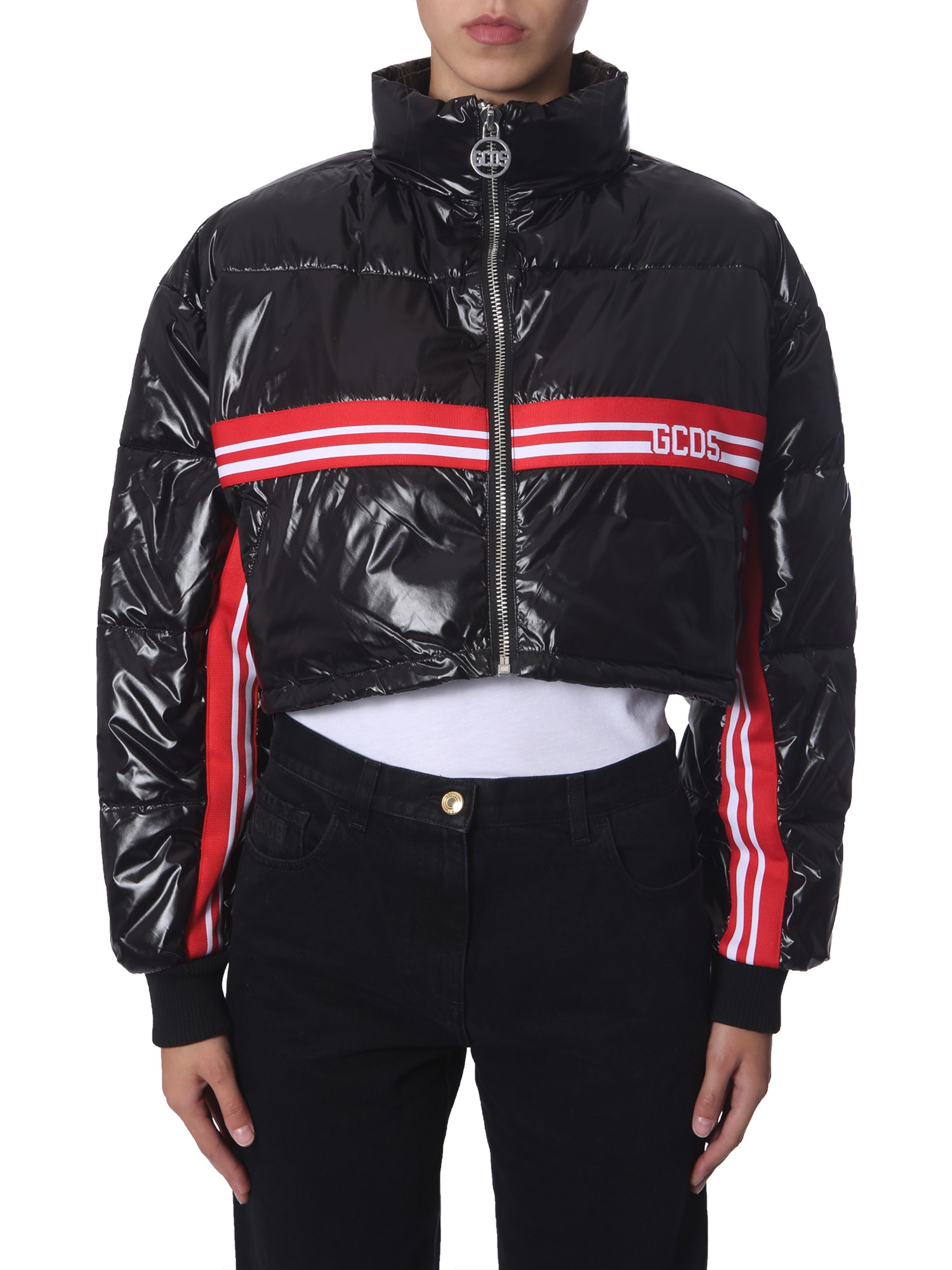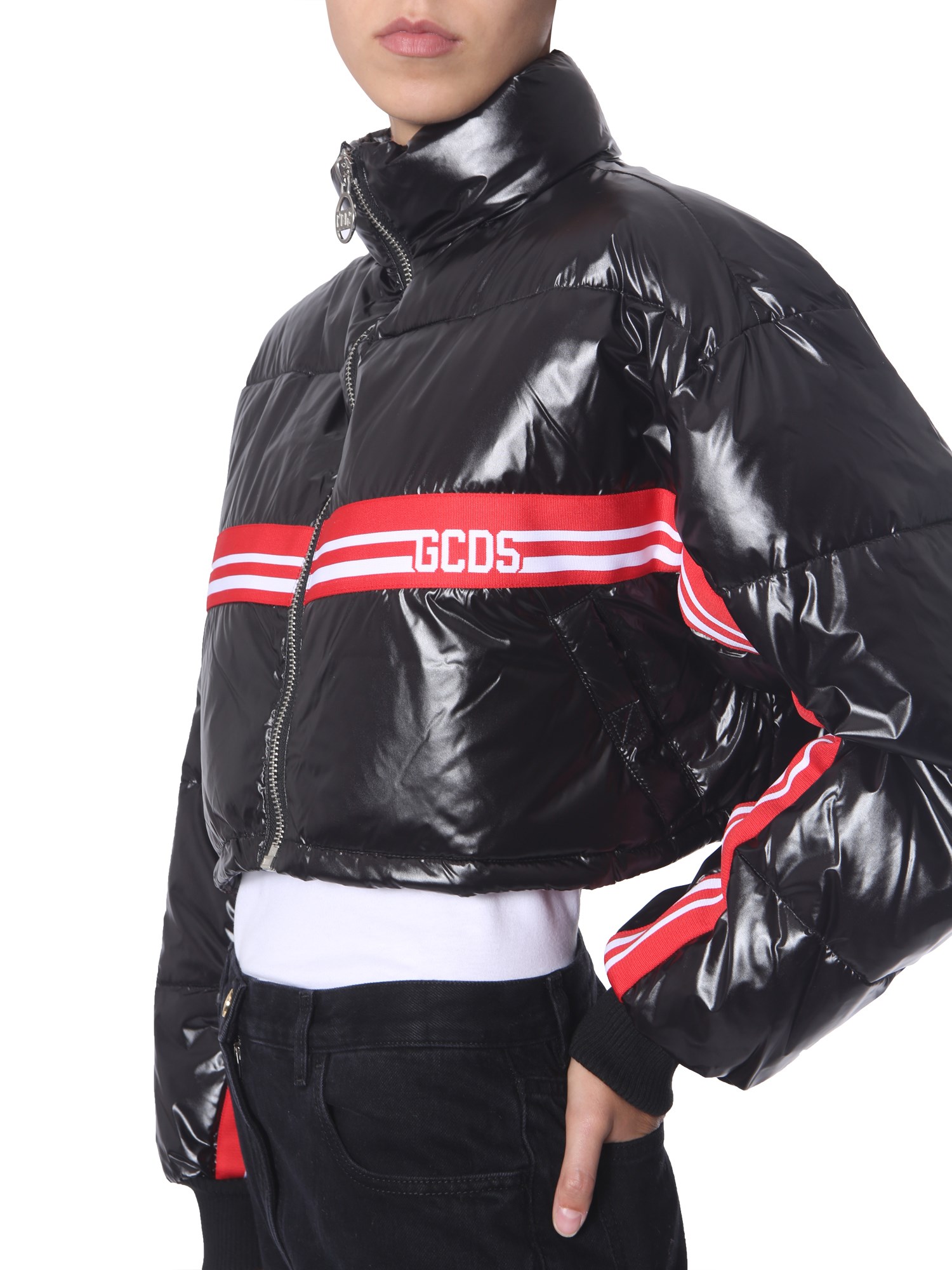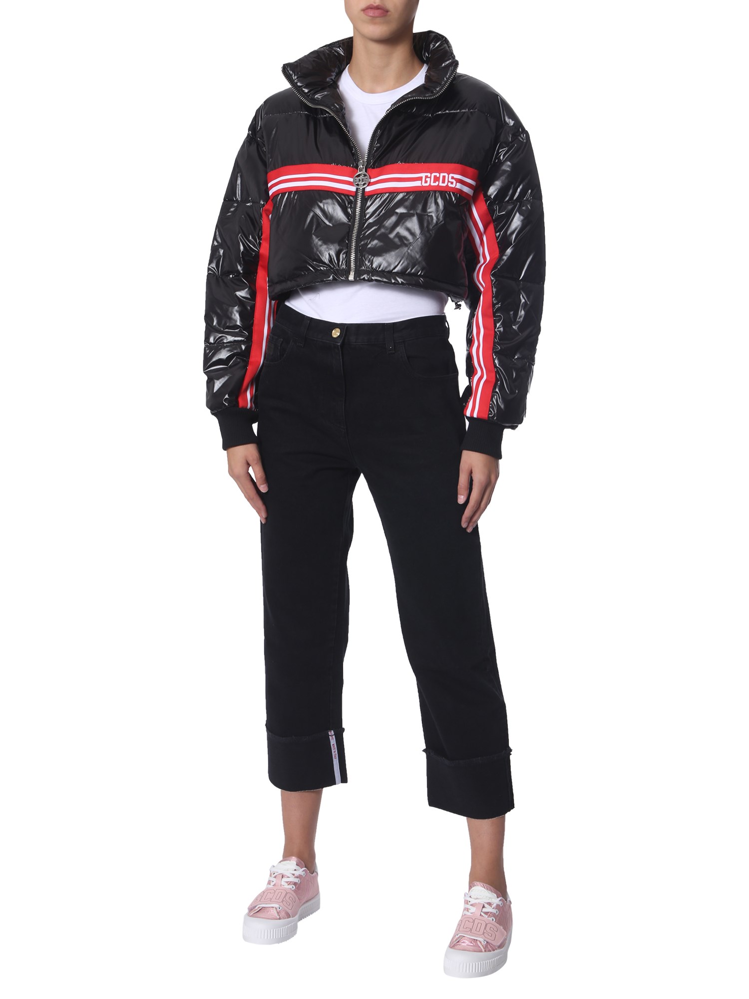 Get a bikers’ look with the Super Shorty Puffer cropped down jacket by GCDS. This comfy and fluffy jacket is made of 100% polyamide for softness and elasticity. It has a zip closure at the front for a secure fit. The down jacket has two side pockets to keep small essentials handy.