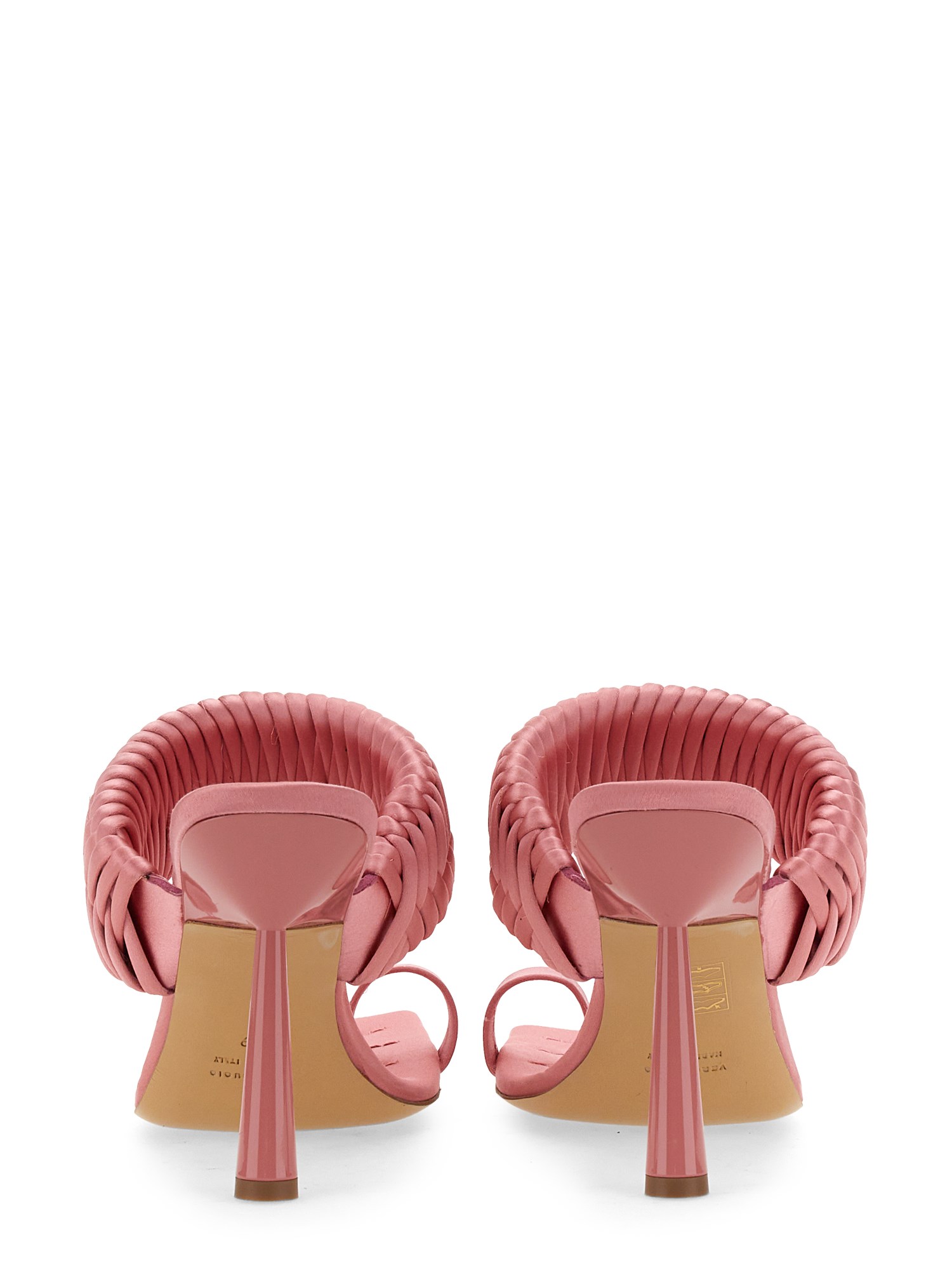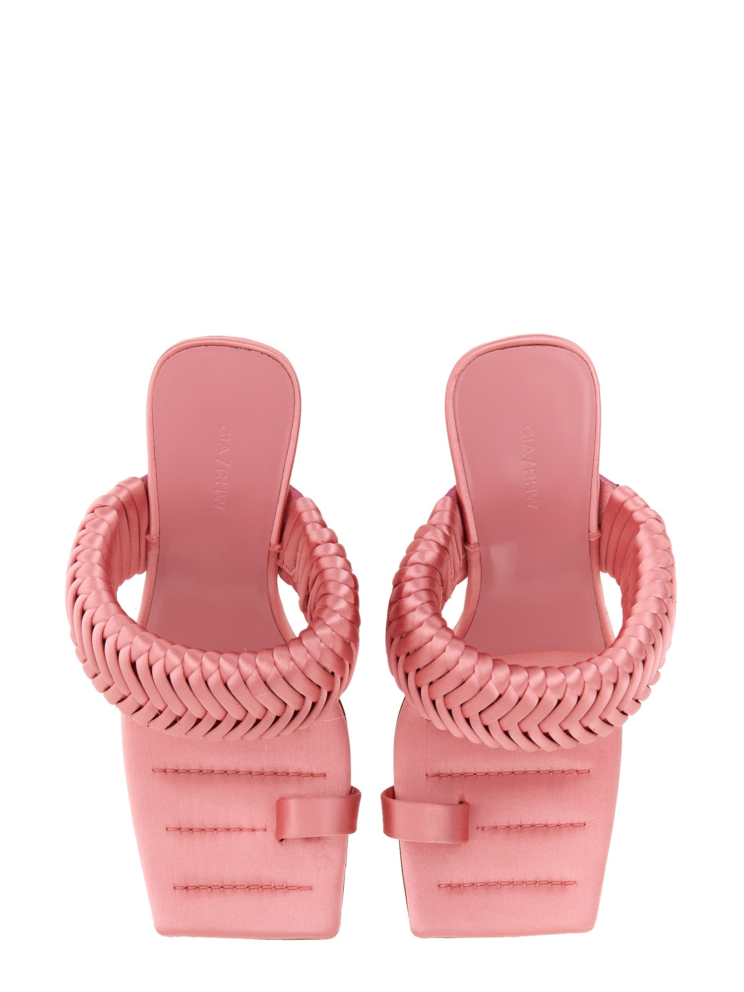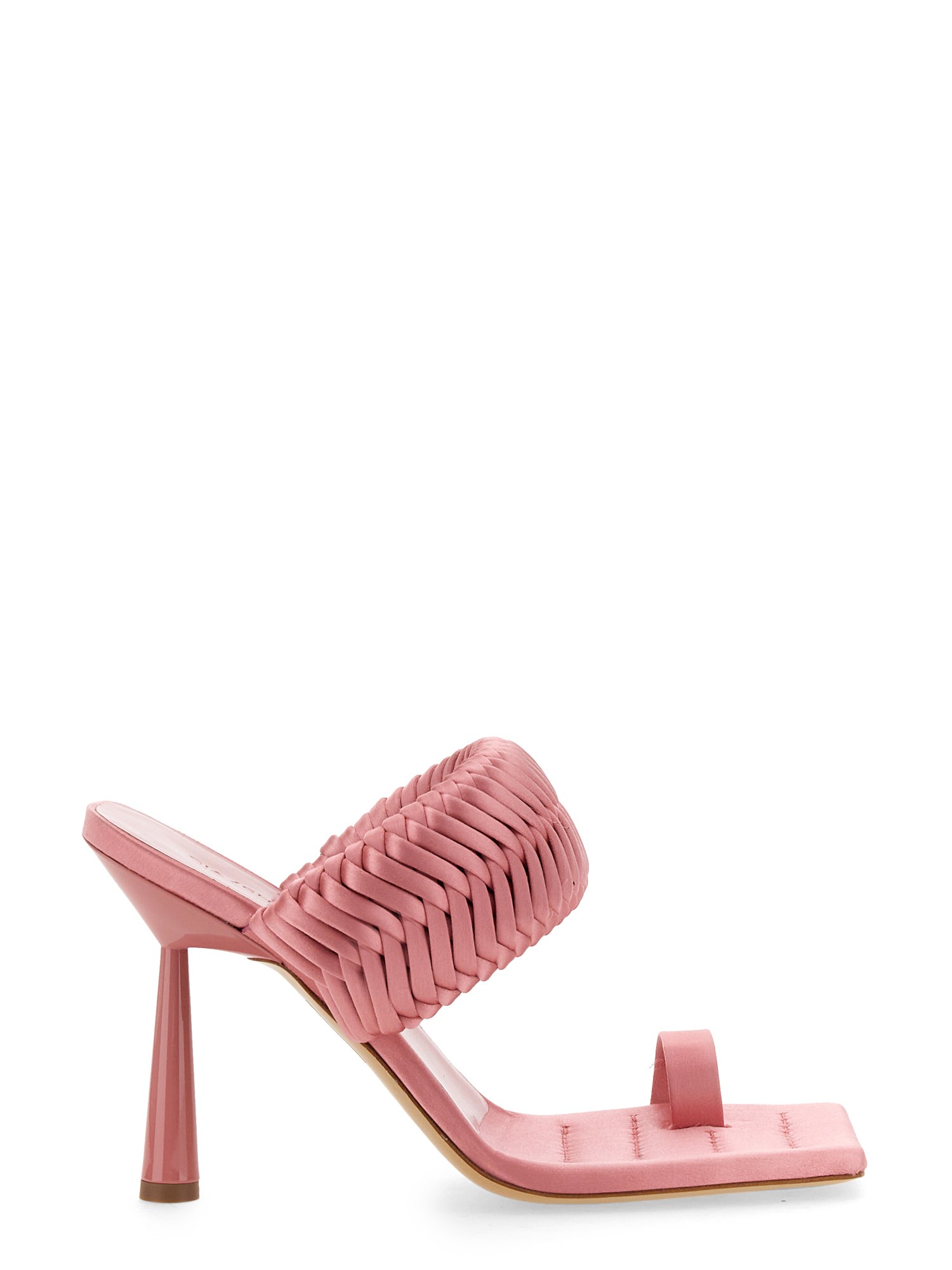 This is a nice casual sandal from Gia Borghini with a slightly block heel. It has a white top with a square toe, and a wide flat strap with buckle detail. It is made of a viscose fabric with a 10.5 cm heel and is comfortable to wear.