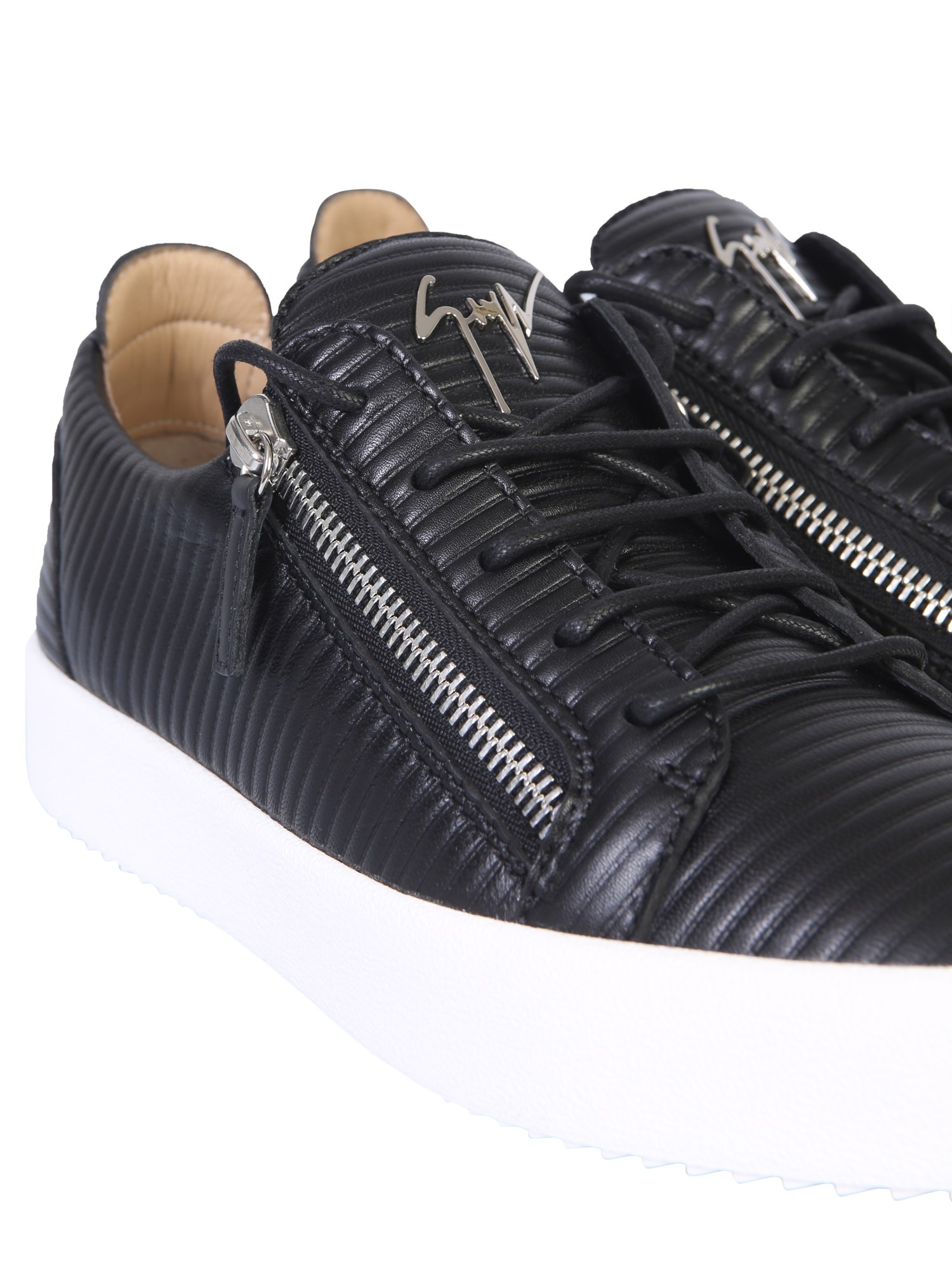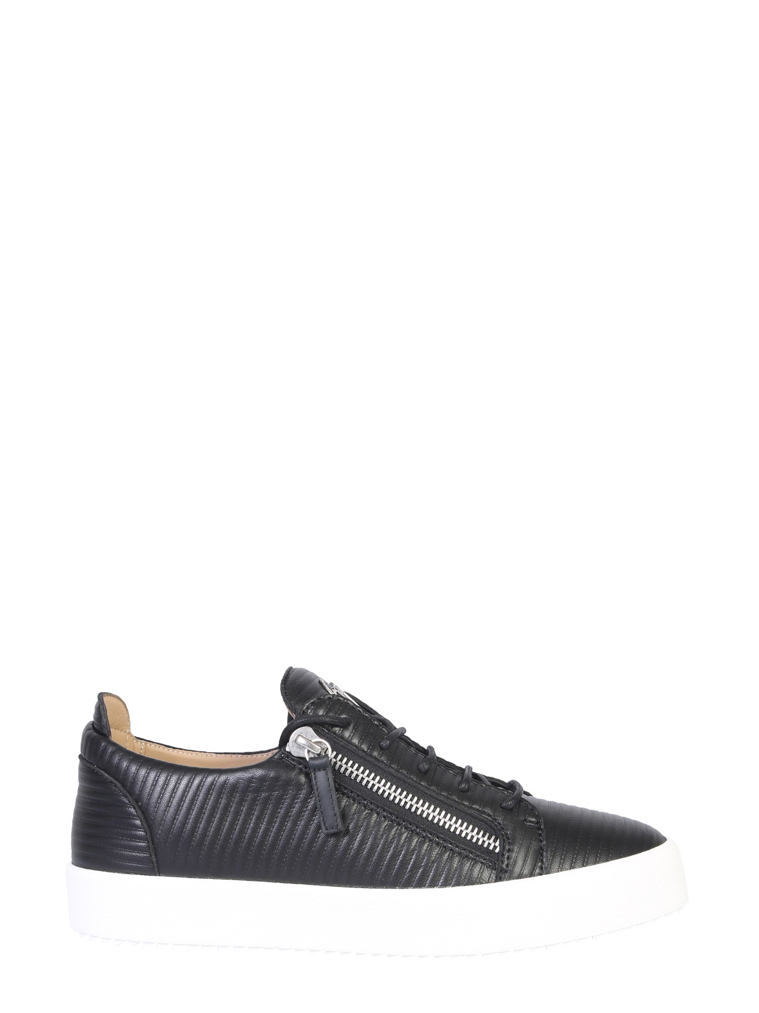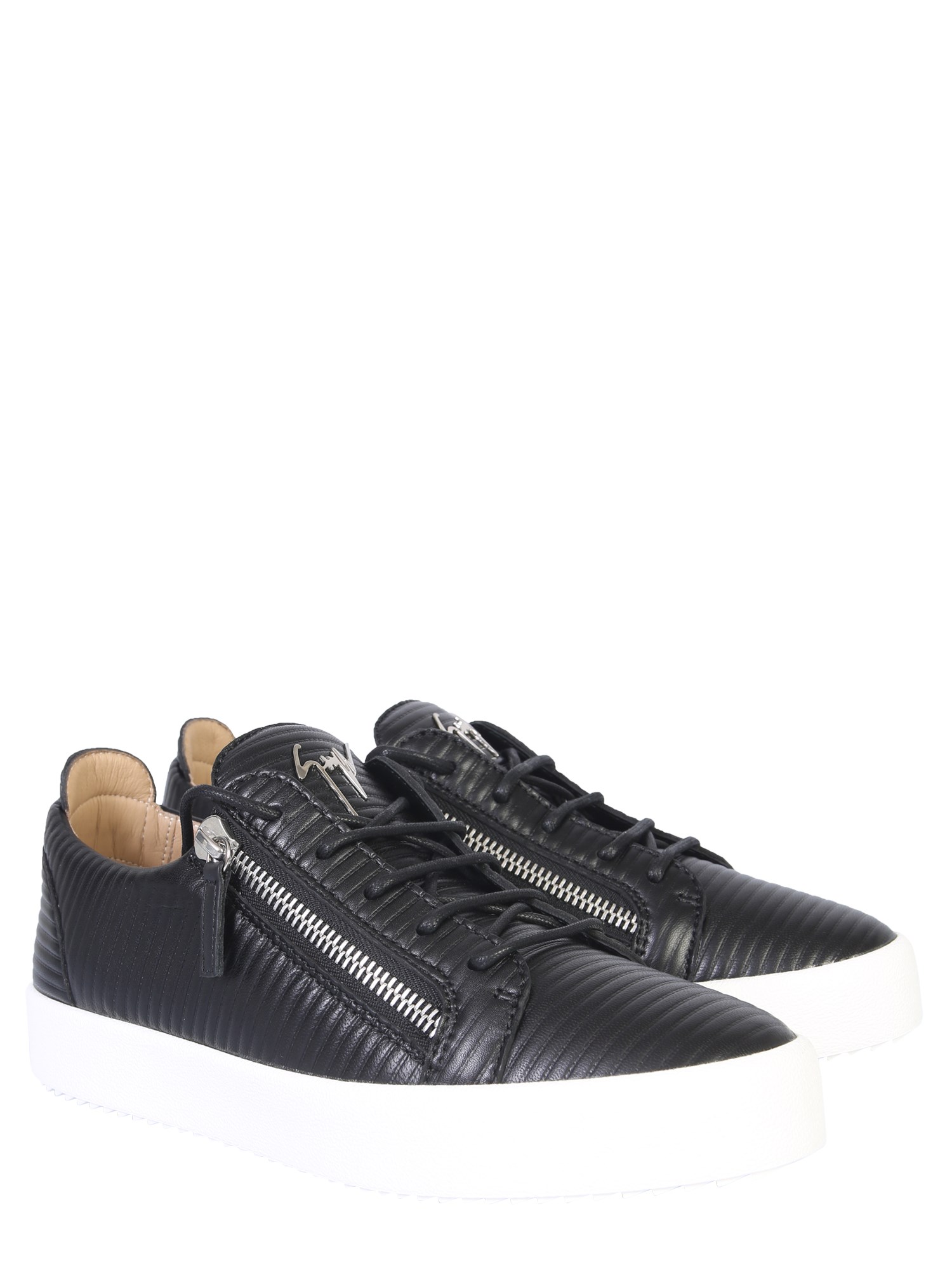 When style meets comfort, it looks like these Frankie low top sneakers from Giuseppe Zanotti. Owing to the fine quality leather, the sneakers are durable and classy. You can wear them easily using the front lace closure. The striped texture and signature detail add a cool and dapper touch to them.