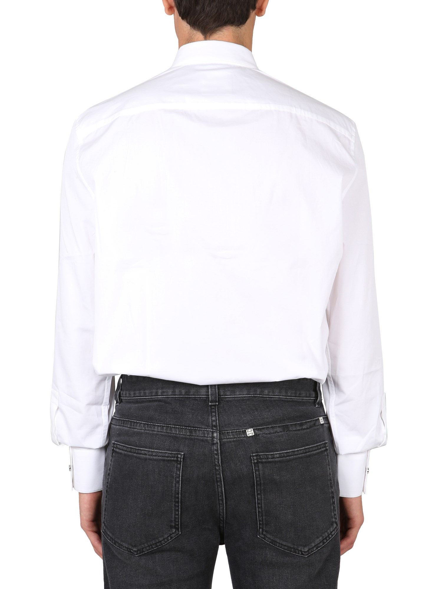 - COLLETTO A PUNTA- CHIUSURA FRONTALE CON BOTTONI- POLSINI CON BOTTONI- REGULAR FIT- 100% COTONE- IL MODELLO È ALTO 190 CM E INDOSSA LA TAGLIA 40