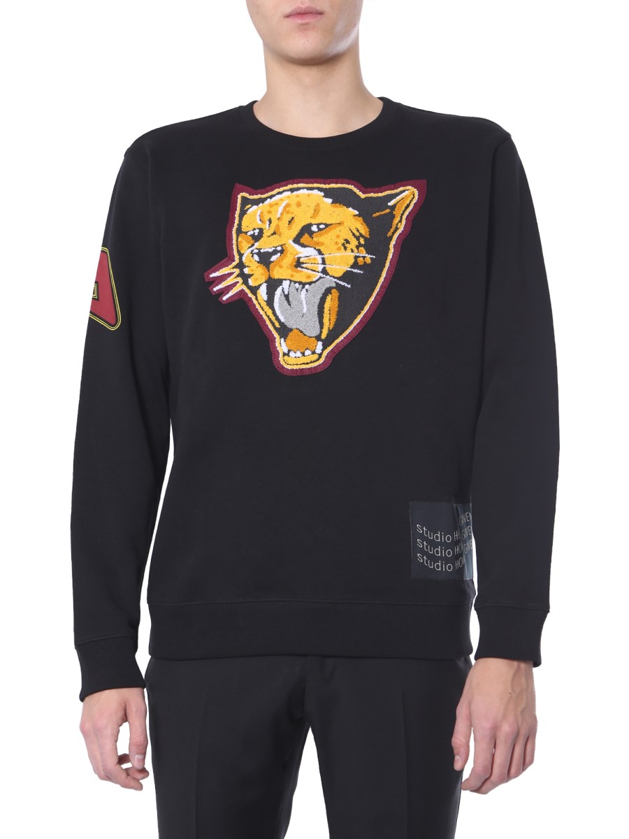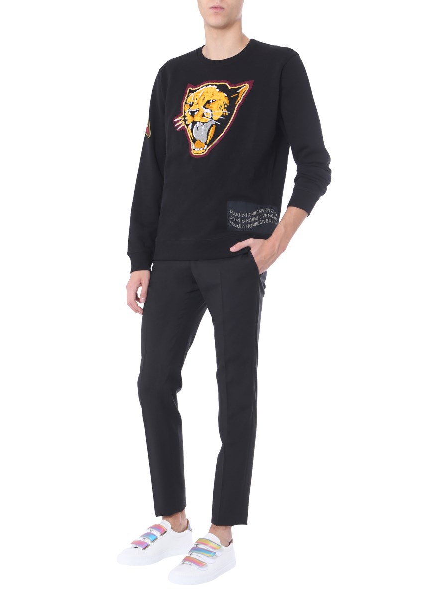 Be the high-street icon by wearing this round neck sweatshirt from Givenchy. A 100% cotton product, the sweatshirt can surely be the most favourite and comfortable addition to your summer collection. With a panther embroidered on the chest and round neck, it can be clubbed with flared jeans and a pair of sneakers for a cool off-duty look.