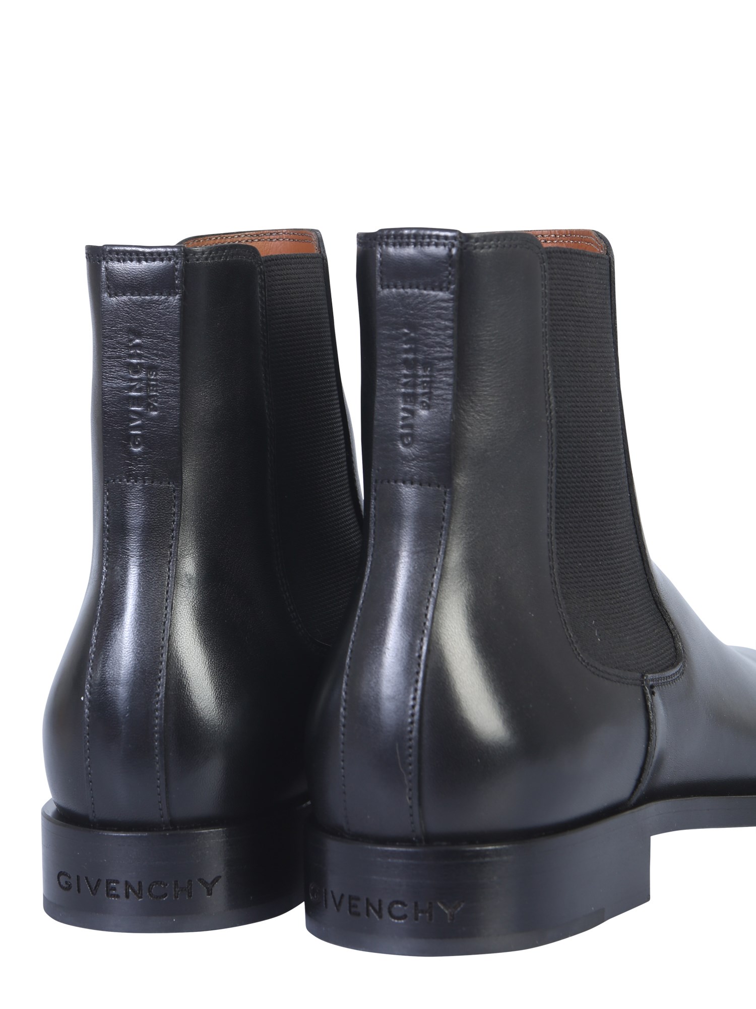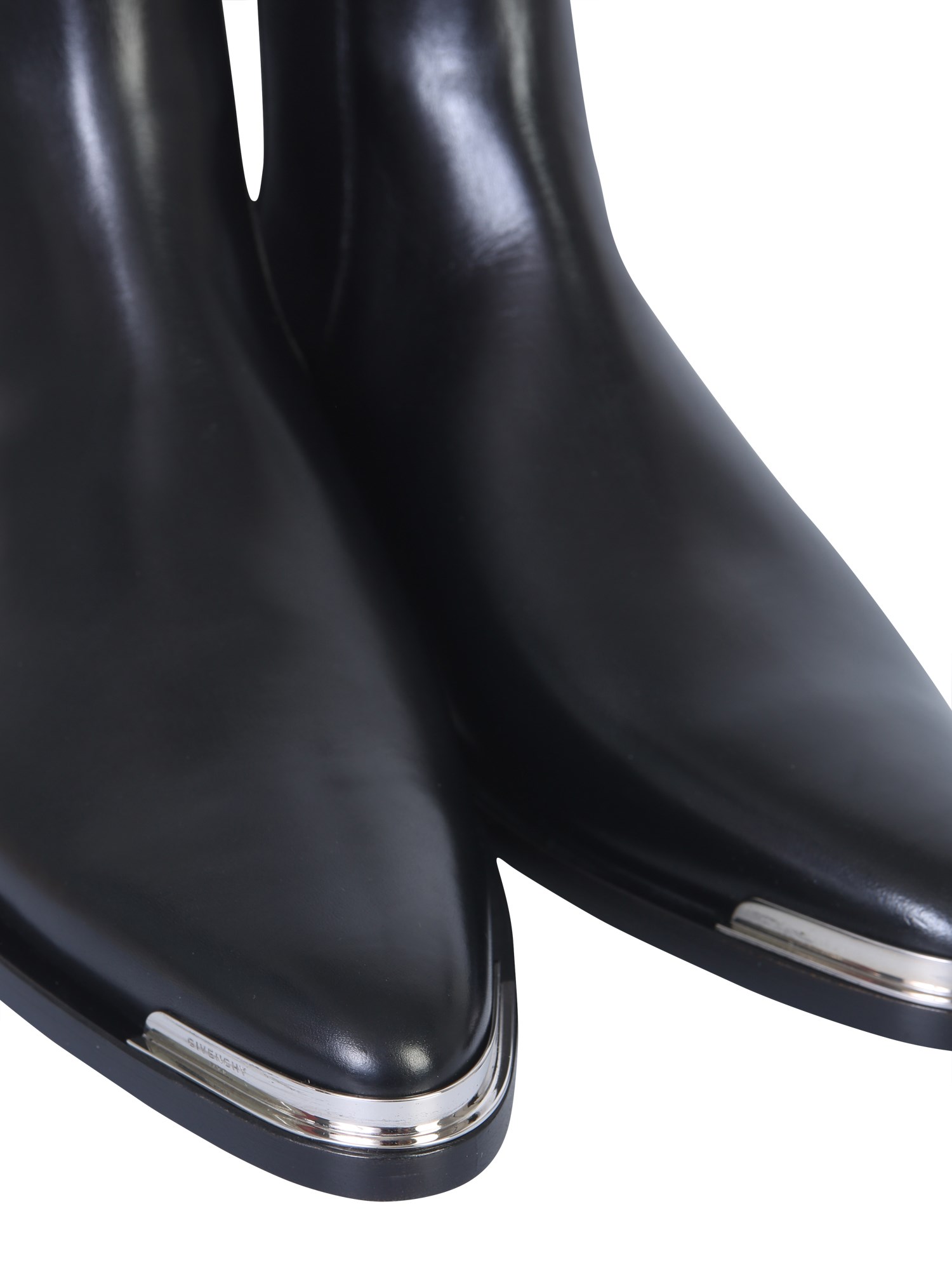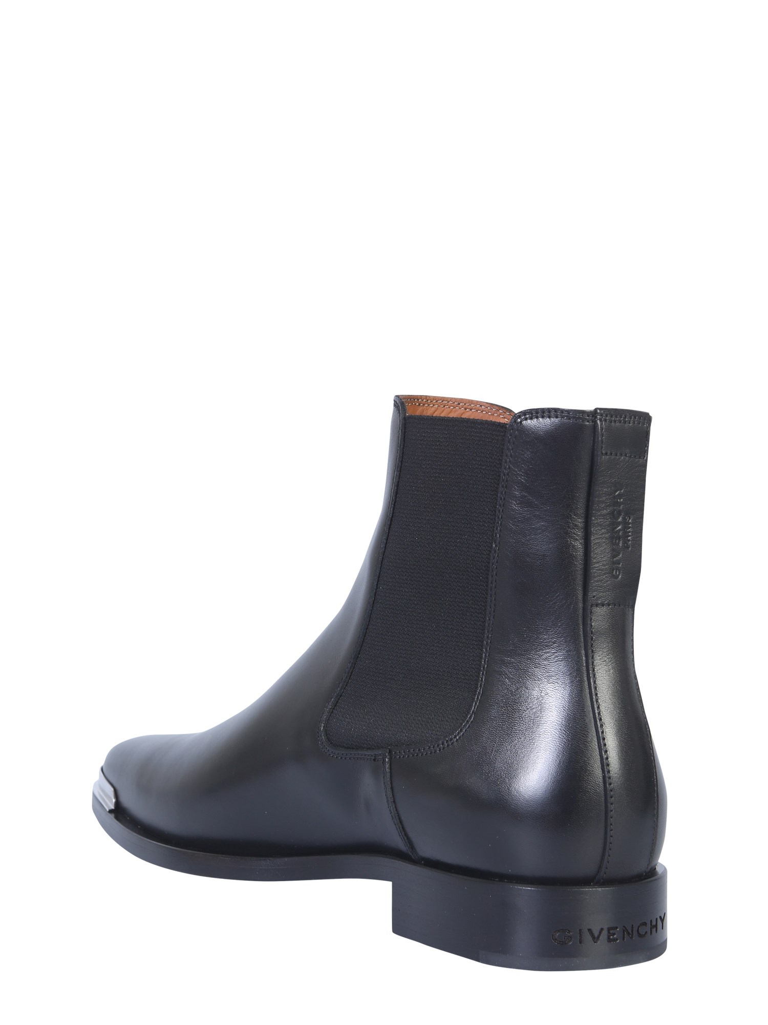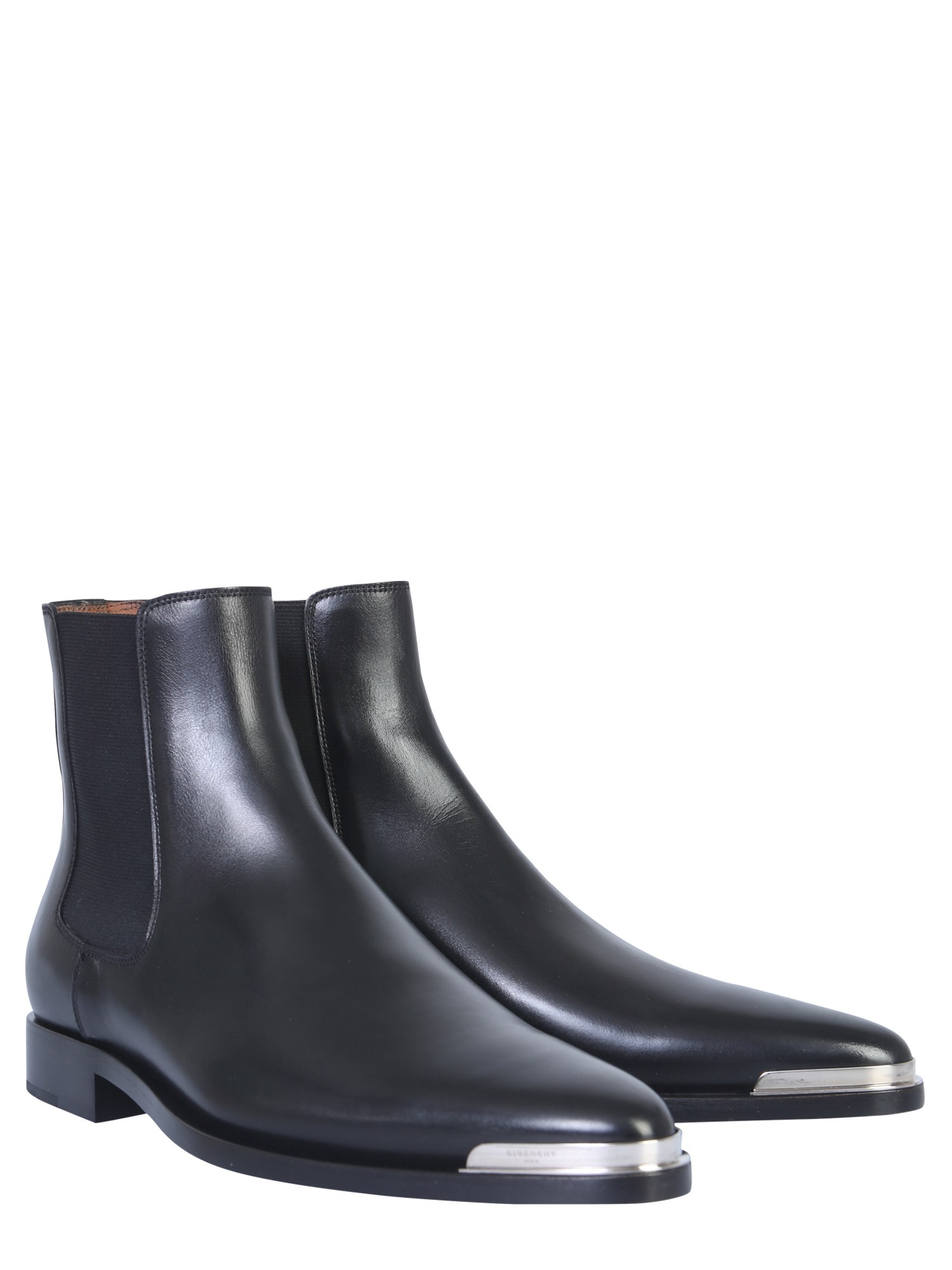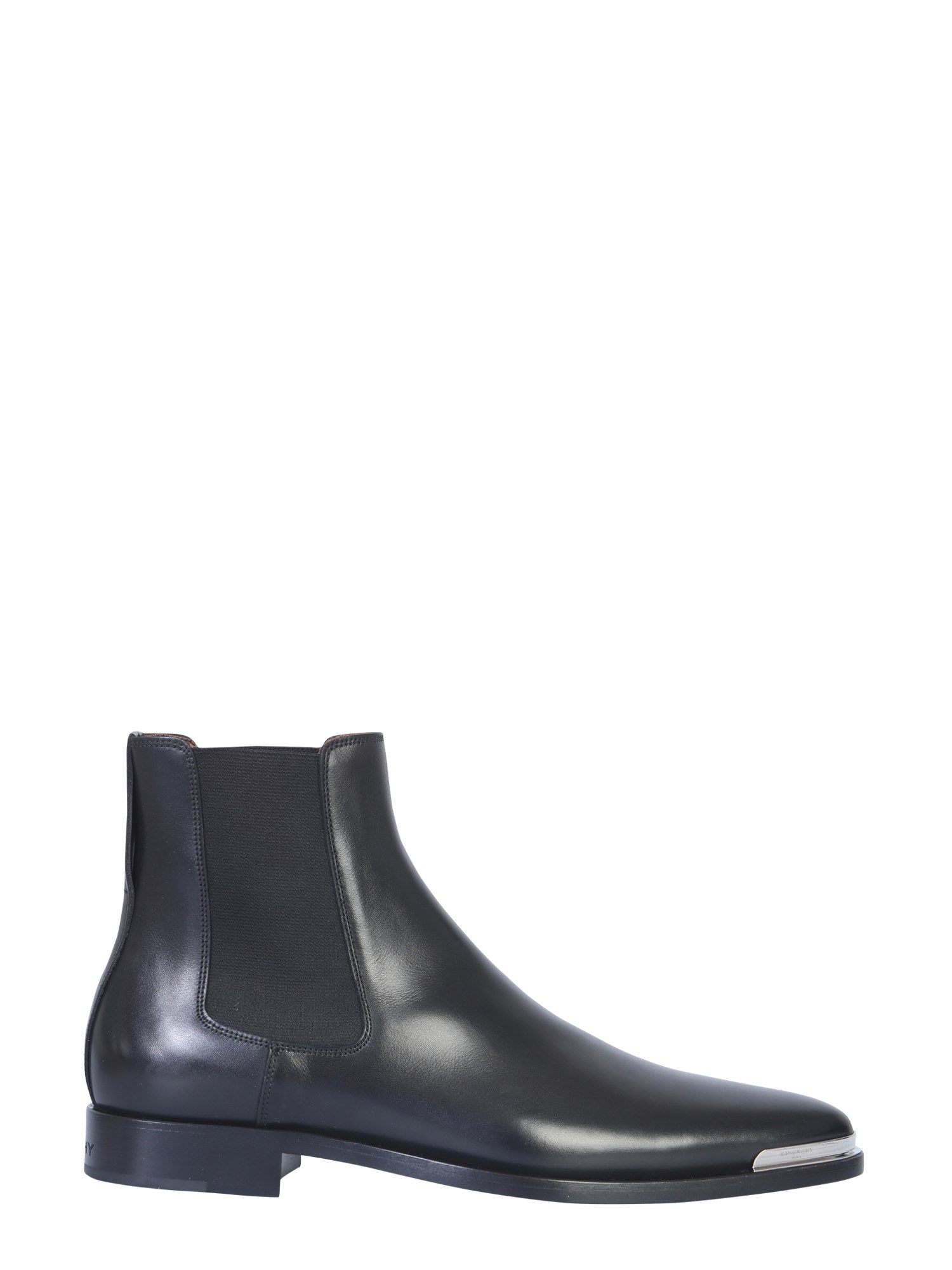 Redefine your footwear collection with these Dallas Chelsea boots from Givenchy. They are made of calf leather for a shiny and sleek finish. The elasticated inserts are easy to wear and give a snug fit according to different foot sizes. The leather lining and insole make them long lasting. The metallic plate at the tip completes their classy design.