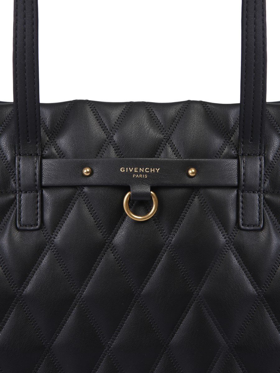 Outshine everyone and make heads turn with this textured quilted canvas tote bag from Givenchy. This pretty handbag is beautifully handcrafted with genuine material. Its classic shape will make you feel royal and lends sophistication around you. A beautiful design over the body adds charm into it with a metal ring.