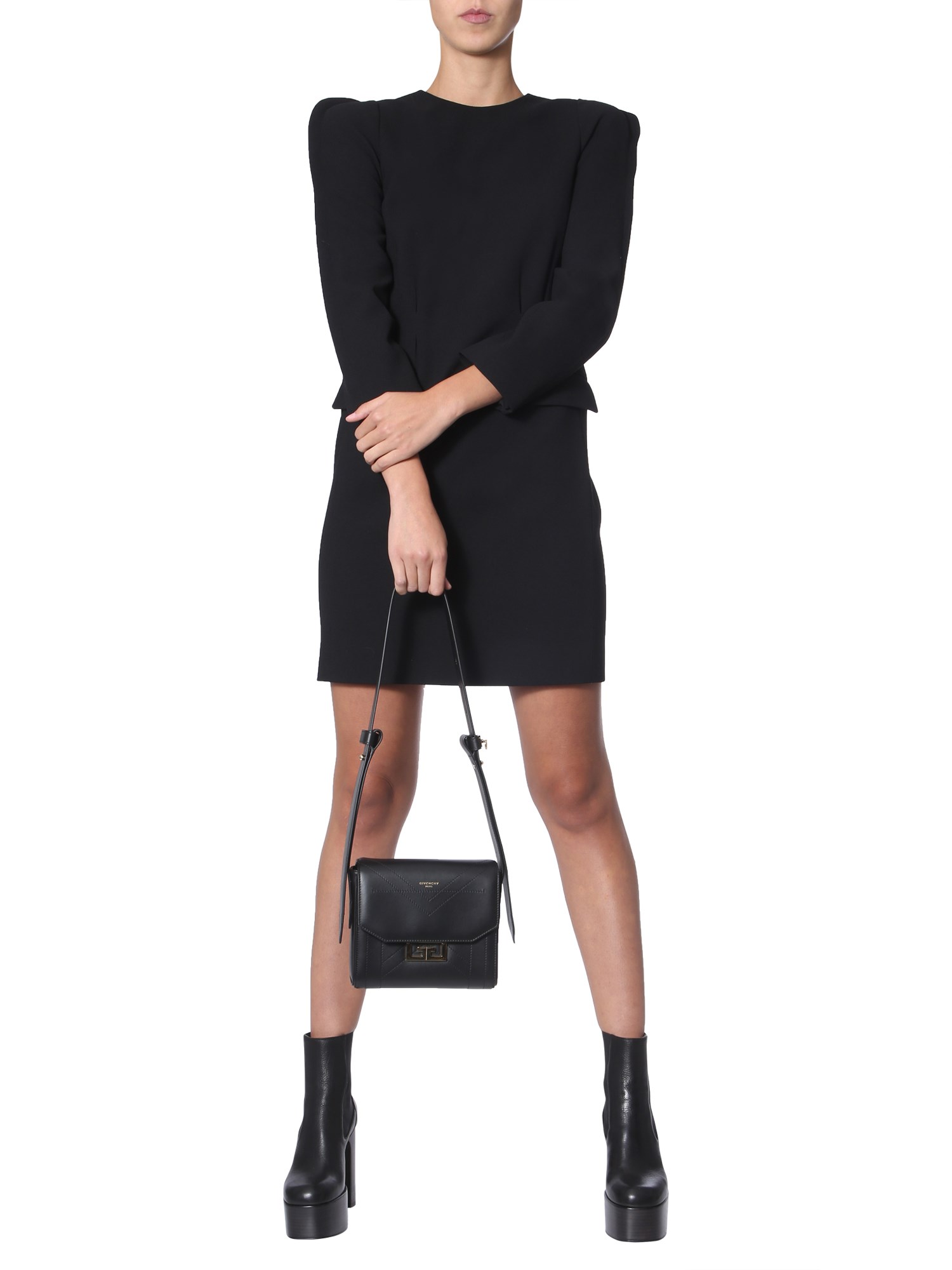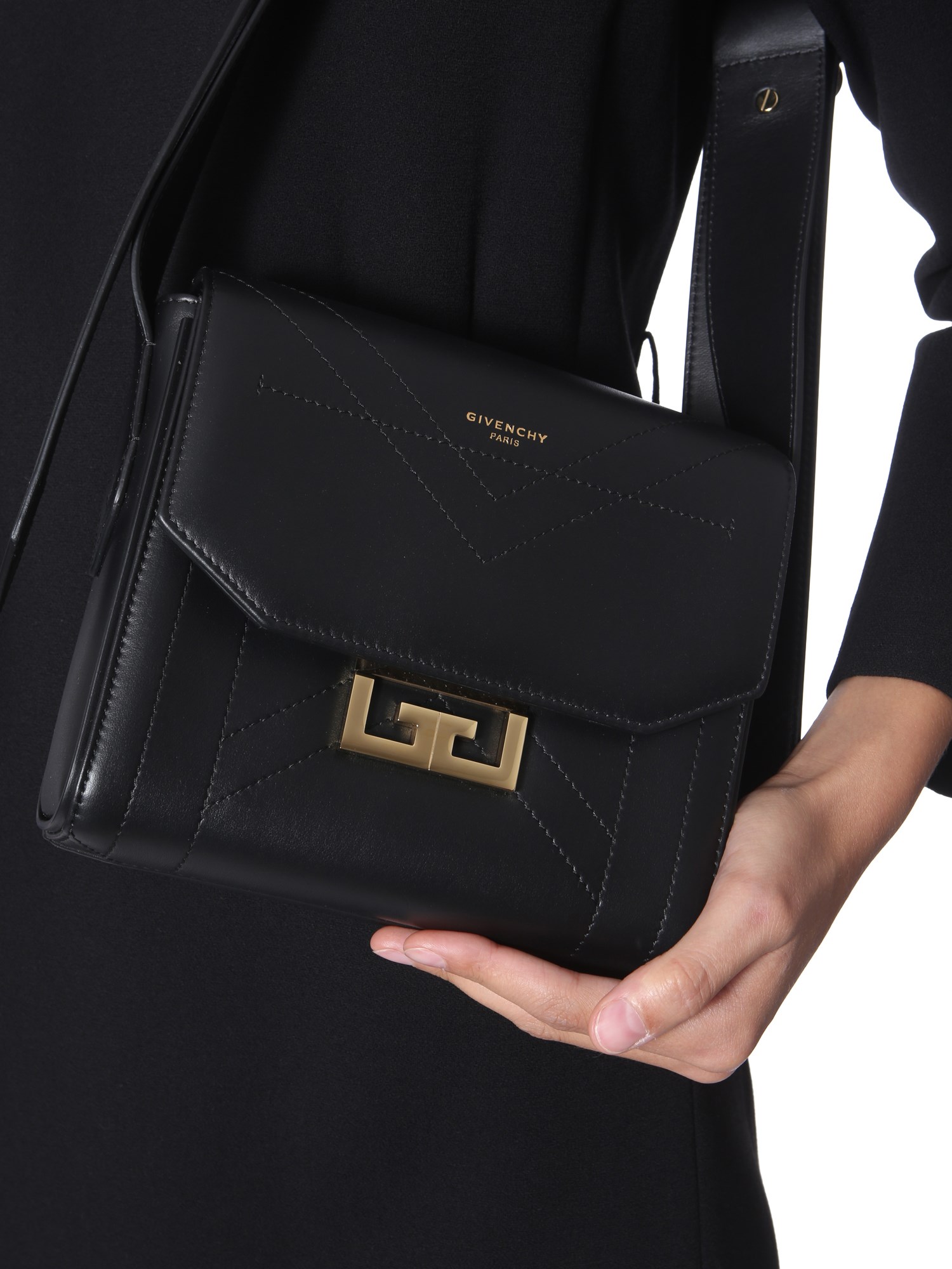 Excite your accessory collection with this classy small Eden bag from Givenchy. It has a golden double ‘G’ lock and visible seam lines at the front for an unmatched look. The broad and adjustable shoulder strap makes it a perfect companion for outings. It is made of goat skin for a soft surface and long lasting quality.