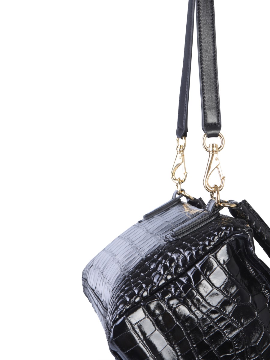 Head out for your next date with the pandora coconut bag from Givenchy. This small bag has an adjustable shoulder strap and rigid leather handle for your convenience. It includes a zip closure for safety of your belongings. The bag is made of 100% calf leather for a smooth and glossy finish.