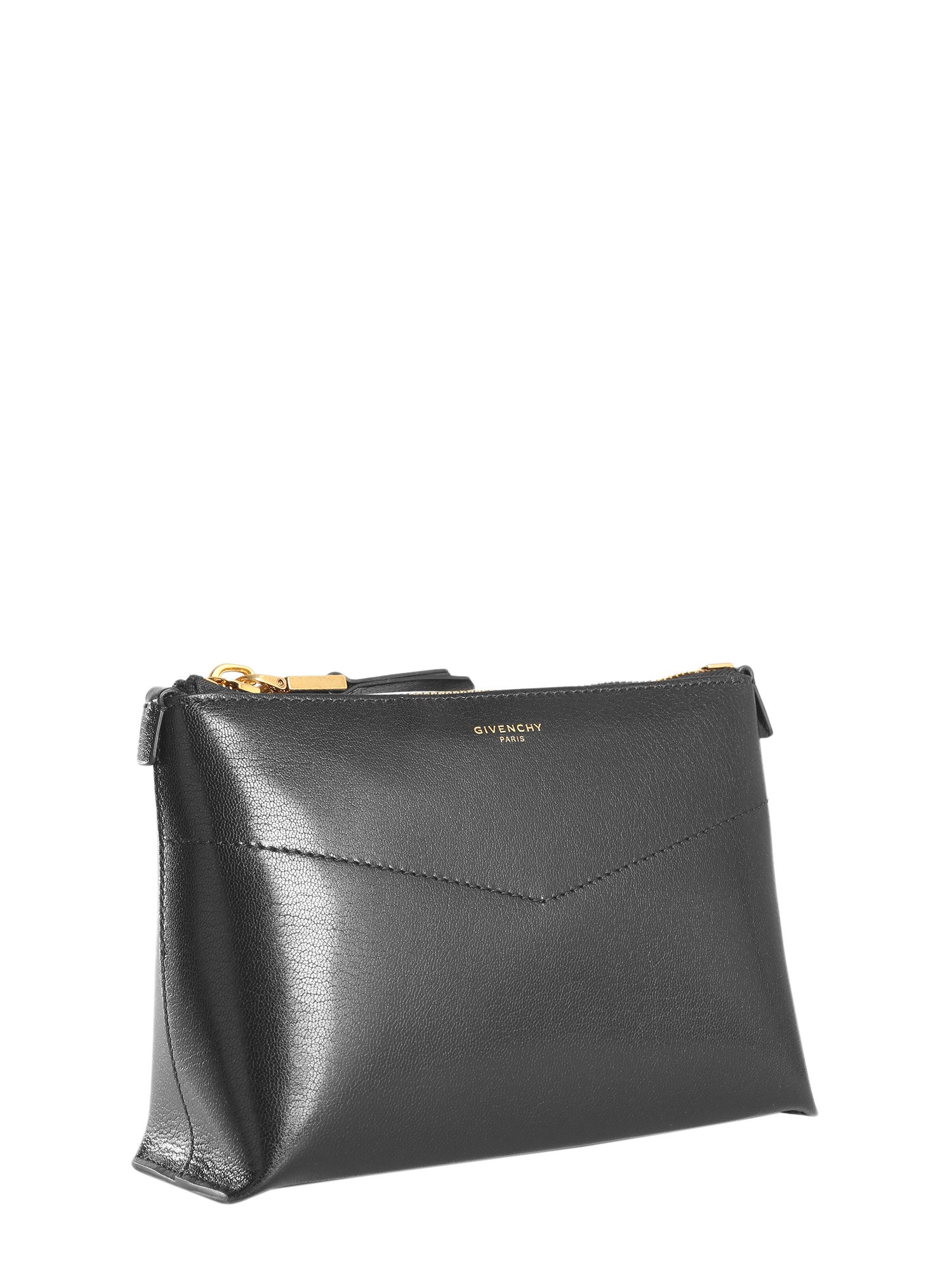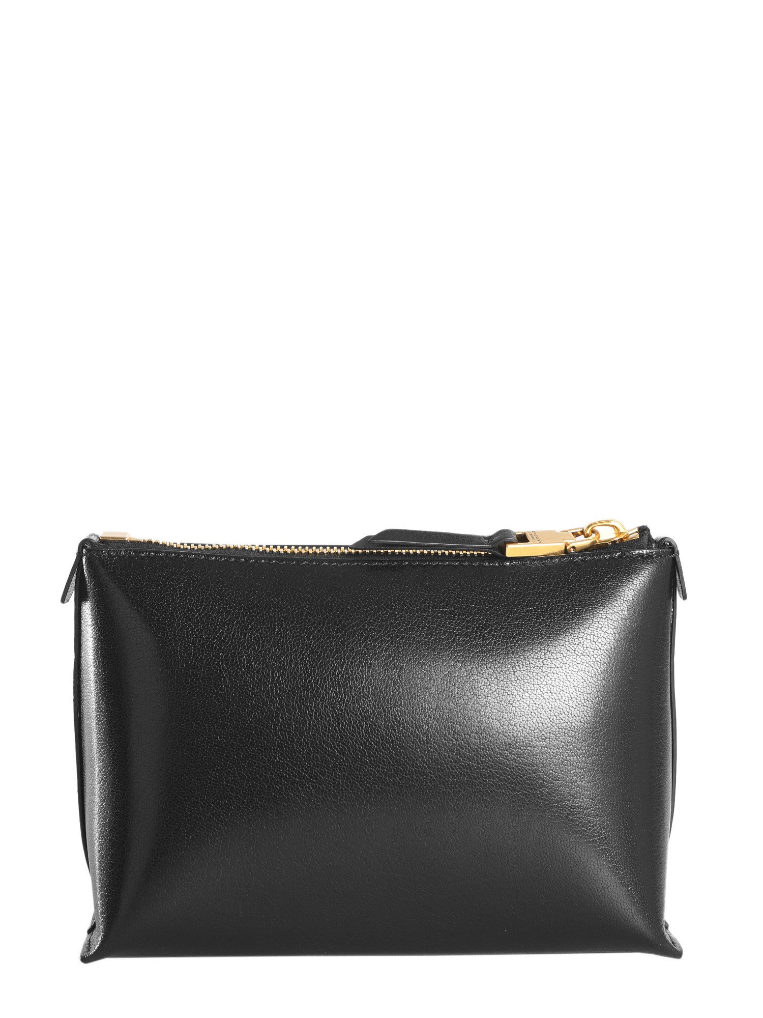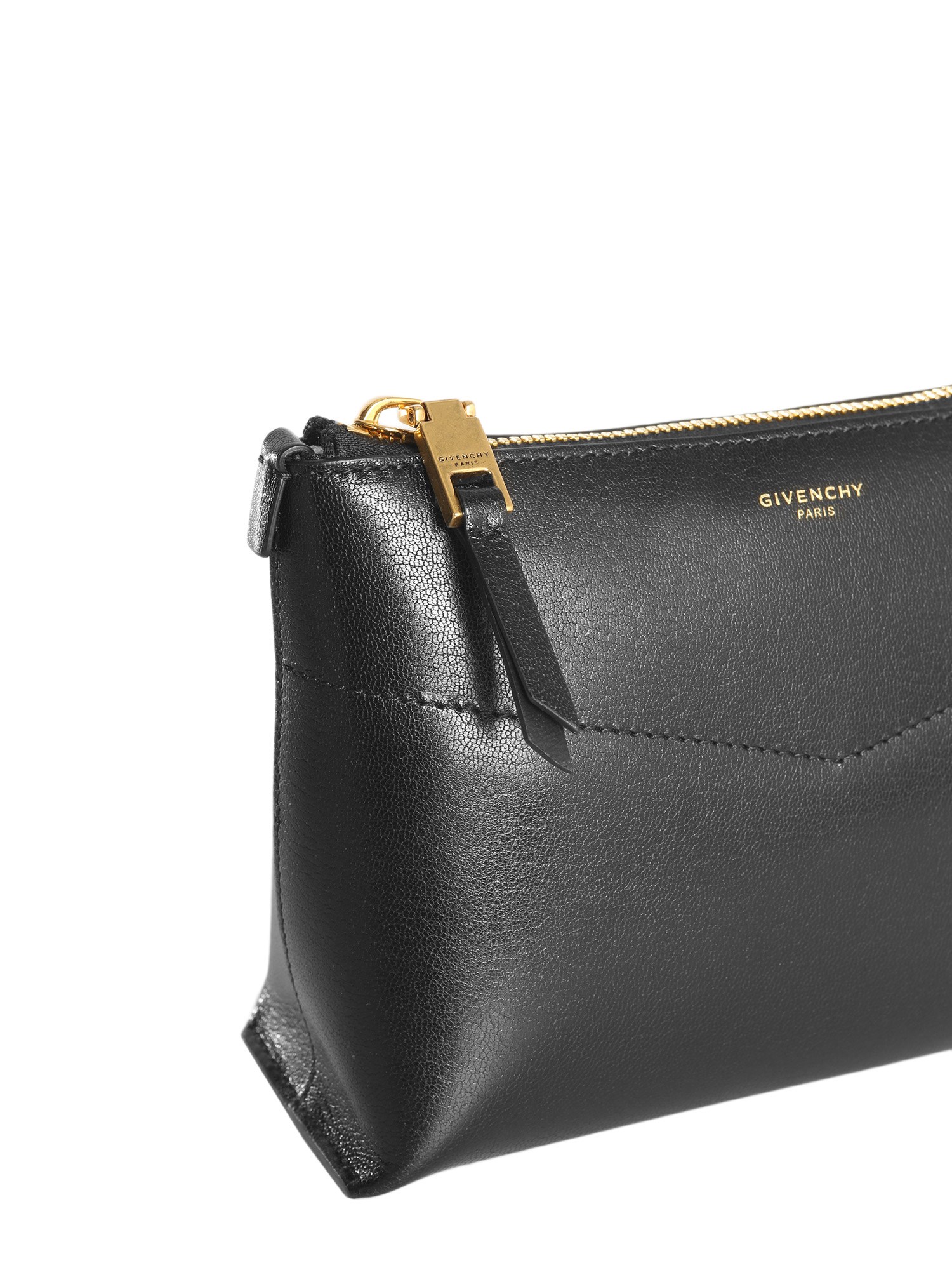 Store your essentials and belongings in this beauty edge case from Givenchy. The decorative sewing on the front gives it a classy look. The lined inner keeps your stuff safe. With zip closure, you can easily open and close it. The case is made of leather that gives it a refined finish.