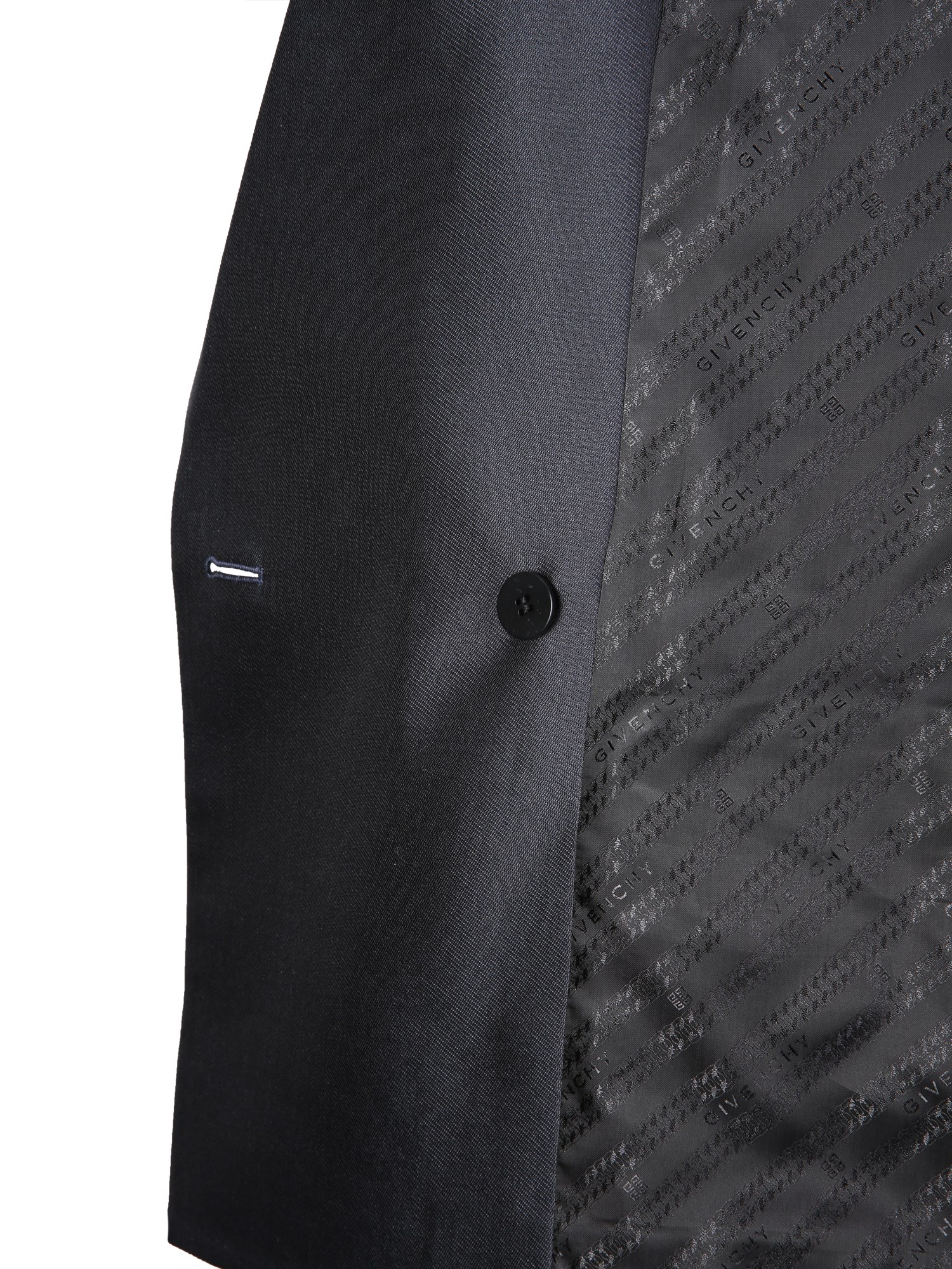 Embrace your femininity with the sophisticated double-breasted jacket from Givenchy. This silk and wool blended jacket has notched lapels at front which combines with padded shoulder panels to lend it a classy finish. Throw it over a silk top, black trousers and some pencil heels to look your best for a formal event.