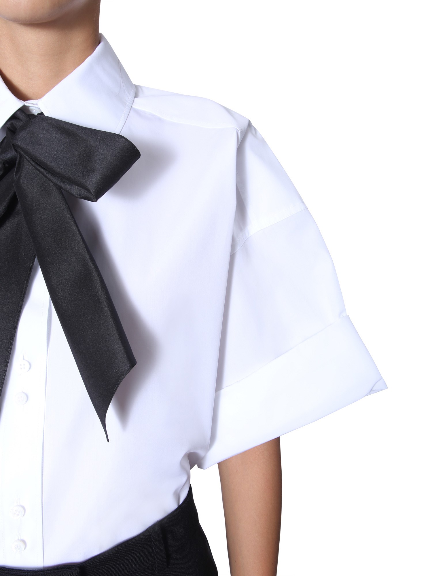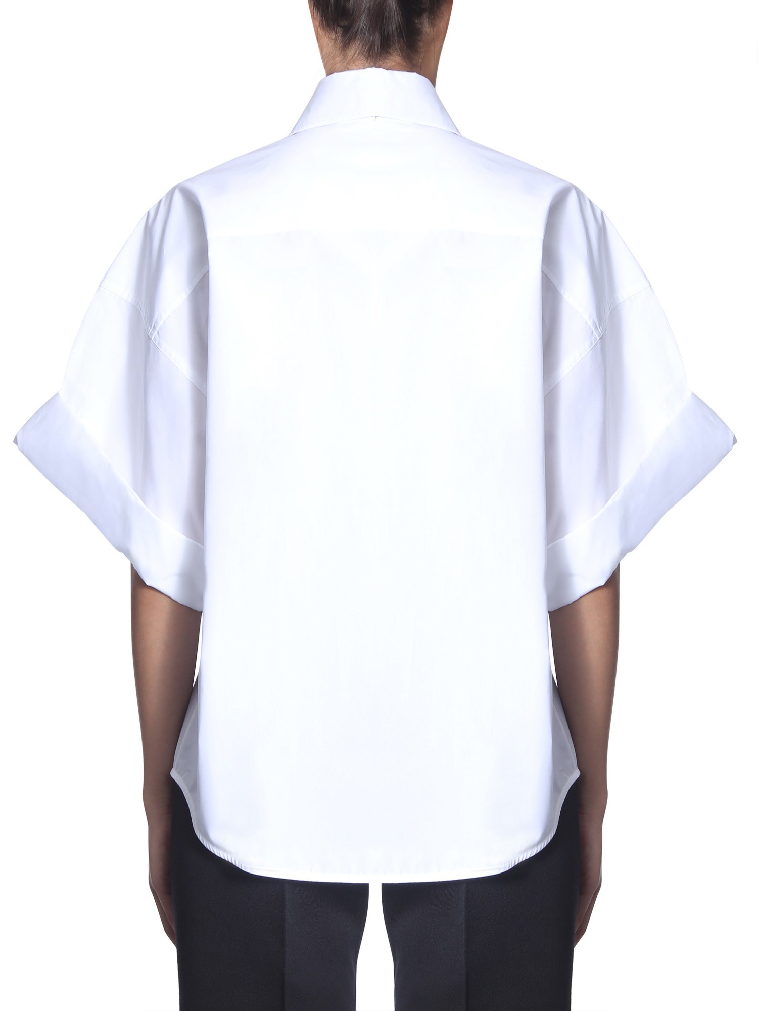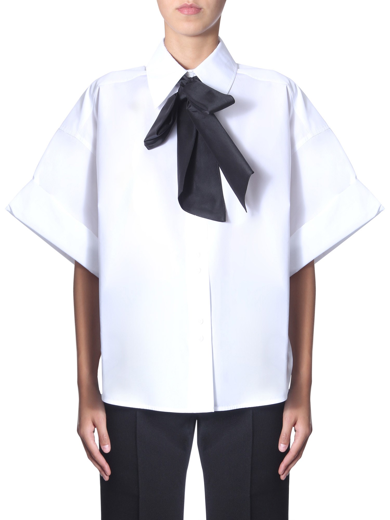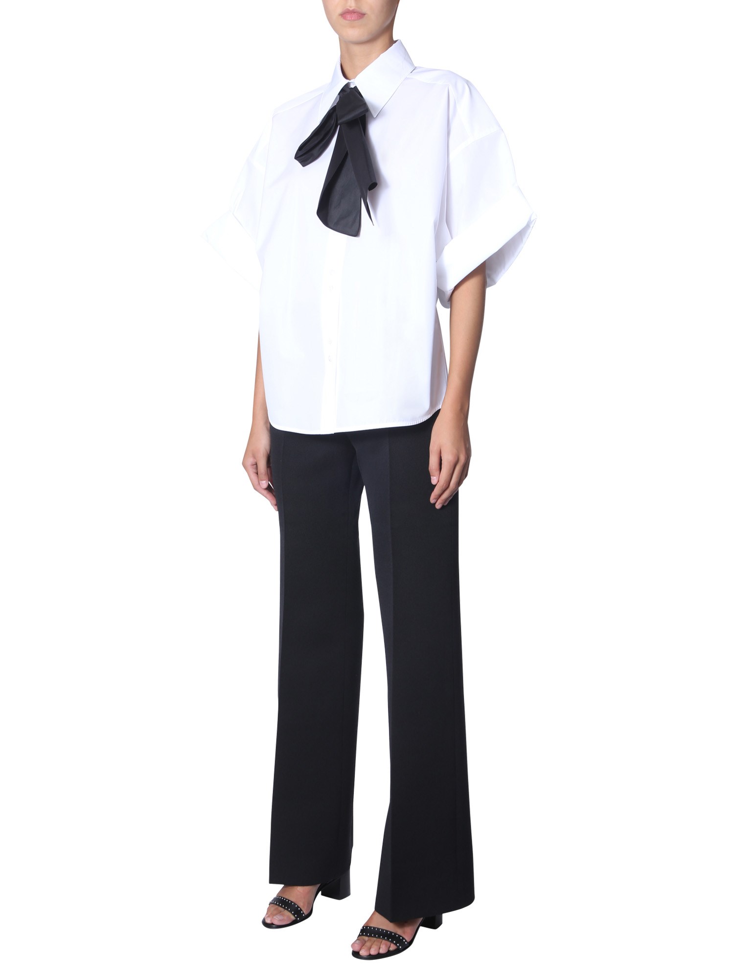 Create an unusual style statement with the oversize fit shirt from Givenchy. The shirt is made of premium quality cotton that feels soft on the skin and is breathable. Its classic collar is adorned with a shimmery scarf that makes it a perfect fashionable piece for your closet. You can pair it with formal pants and leather shoes.