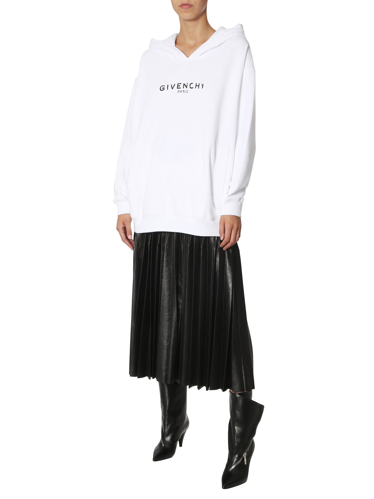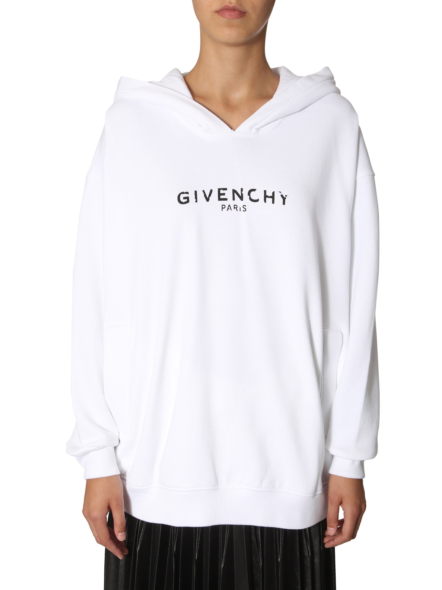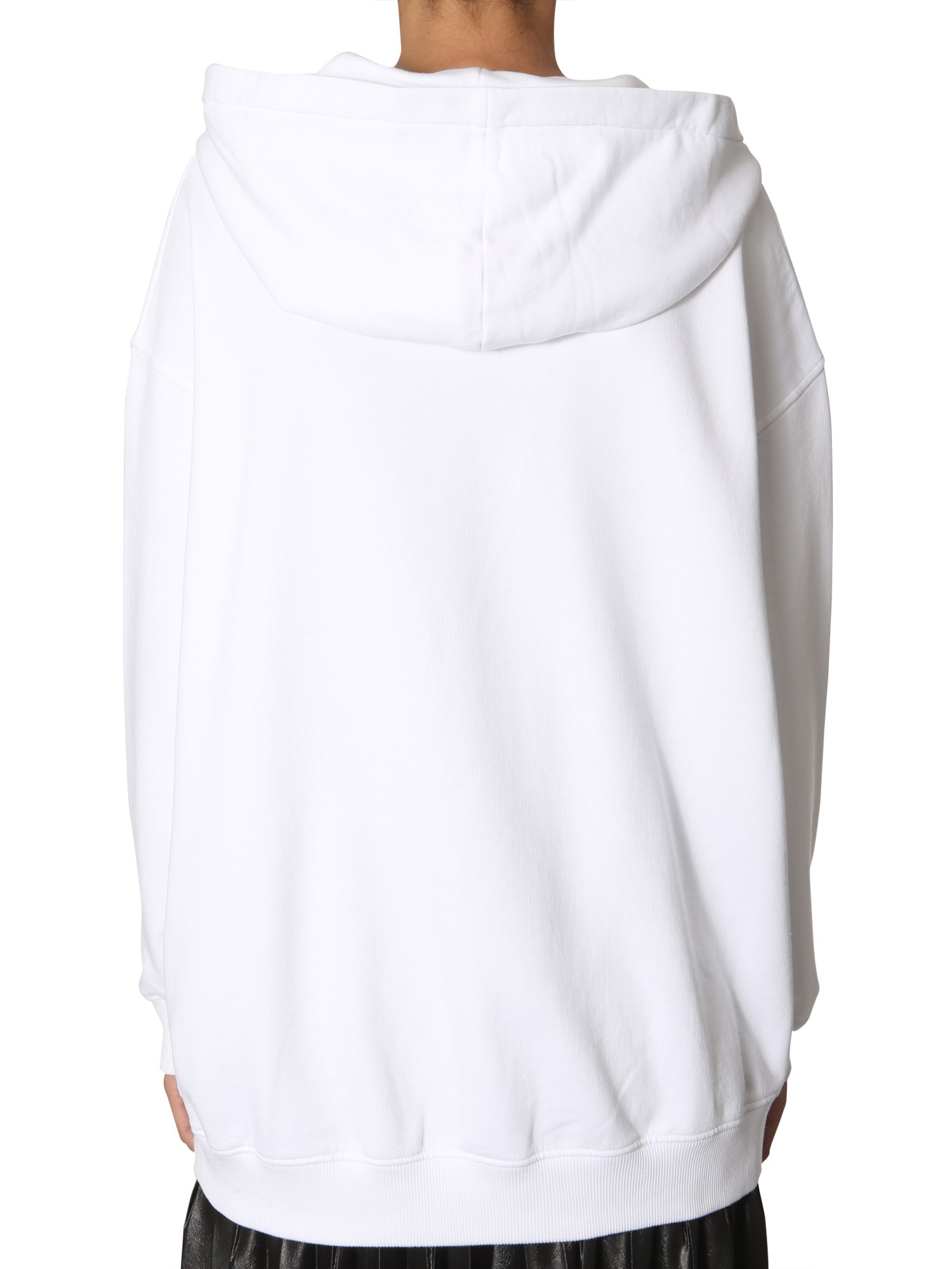 - HOODED NECKLINE - TWO SIDE POCKETS- PRINTED FRONT - BRUSHED INTERIOR- 100% COTTON- MODEL IS 1.84 CM TALL AND WEARS SIZE XS