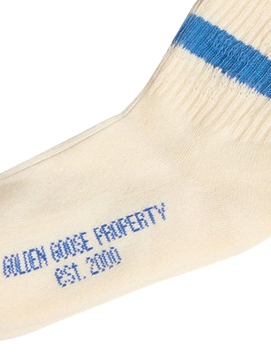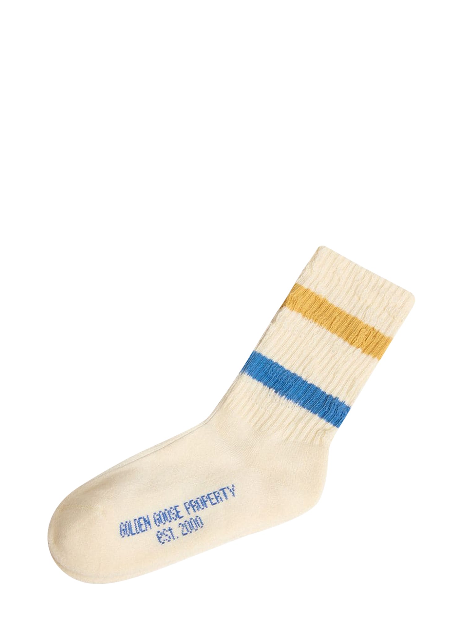 Introducing the Golden Goose kids' socks, featuring a stylish high rib design complemented by playful stripes and a trendy distressed finish. Crafted for comfort and durability, these socks are perfect for active children, ensuring a secure fit while adding a fashionable touch to any outfit. Ideal for both casual wear and special occasions, these socks are a must-have accessory for the modern young trendsetter.