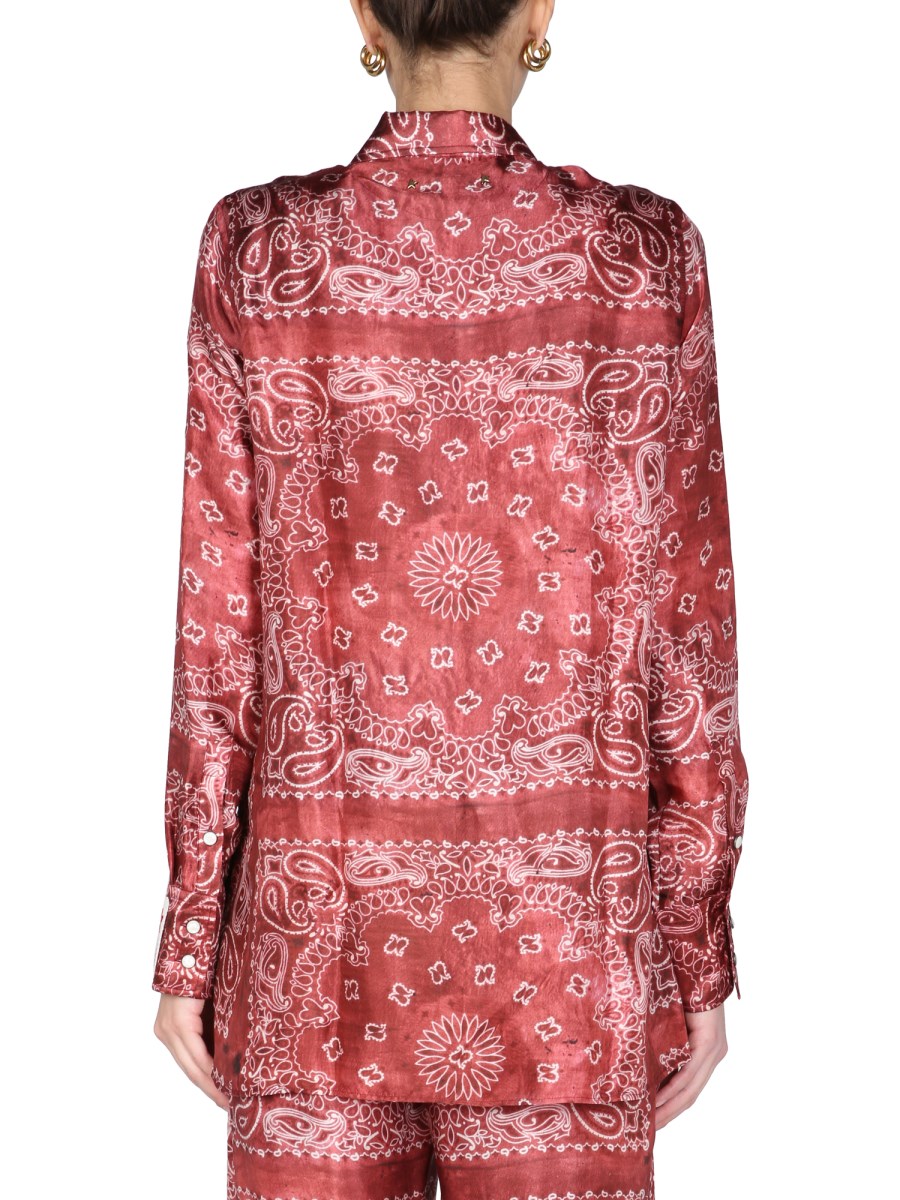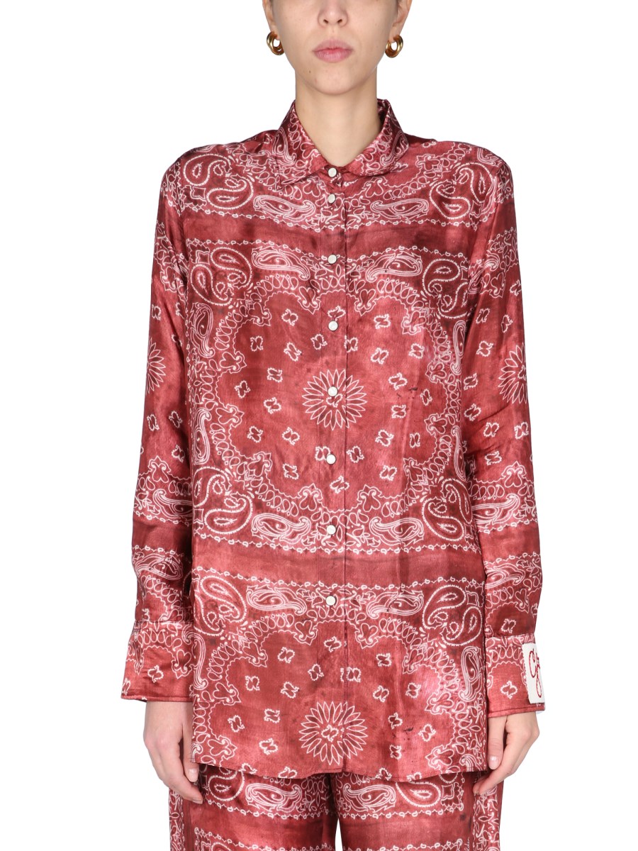 This luxurious, fitted shirt from Golden Goose is made from a lightweight viscose material that will keep you cool and comfortable throughout the day. The contrasting mother of pearl buttons, paisley pattern, and pointed collar make this shirt a standout. A paisley pattern is printed all over this viscose twill shirt, making it an eye-catching piece that is also versatile and stylish.
