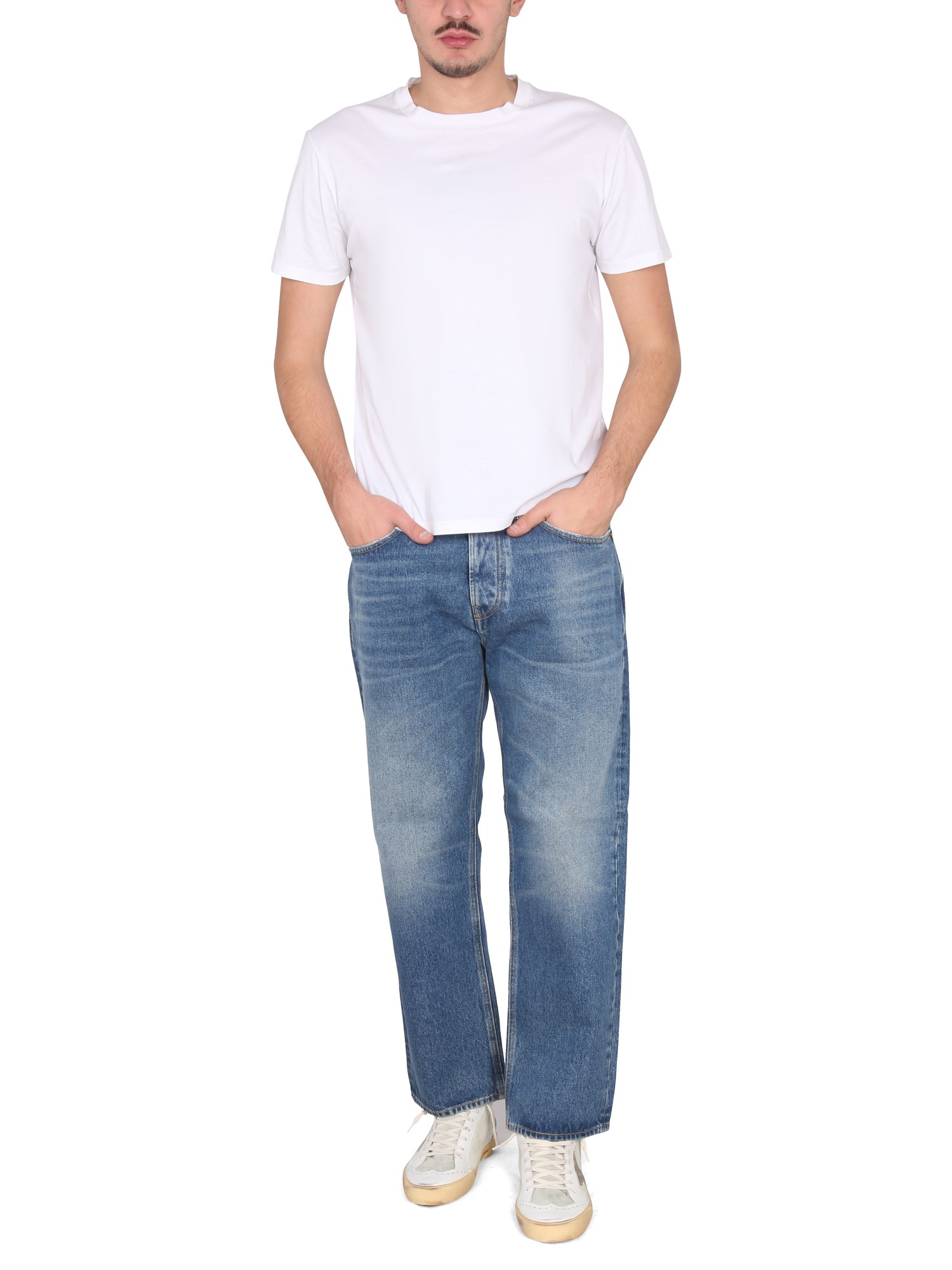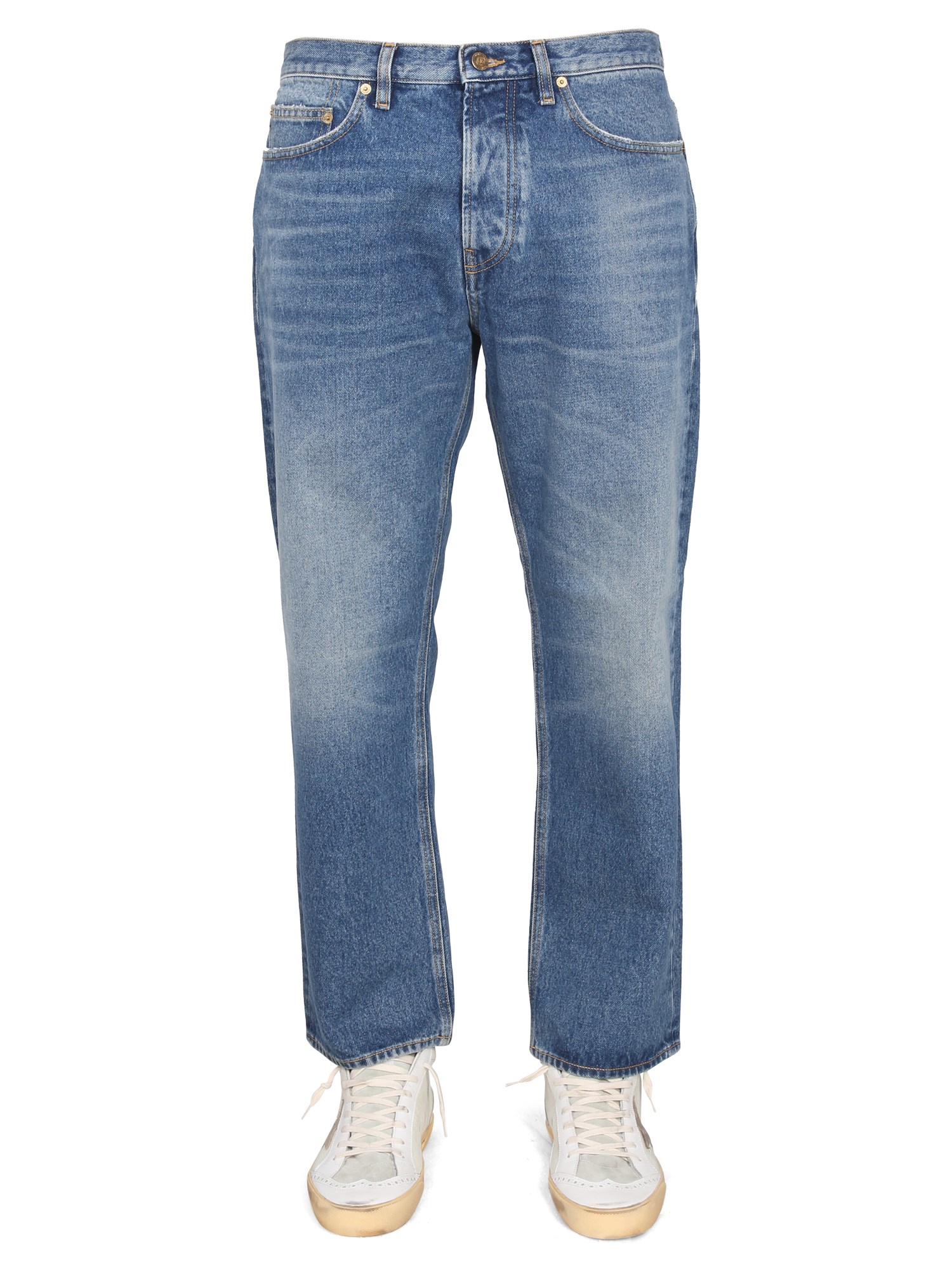 This pair of jeans from Golden Goose are a basic pair of denim jeans that will look great with any top or bottom. If you're looking for a comfy pair of denim jeans that are also stylish, these are the ones for you. They are loose fit and feature a button and zipper closure. They are made of cotton and will be comfortable to wear.