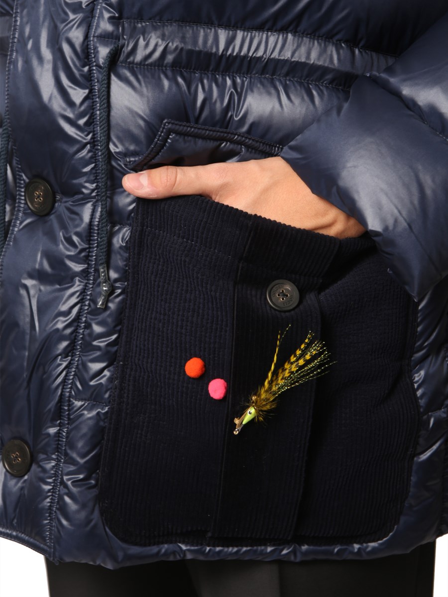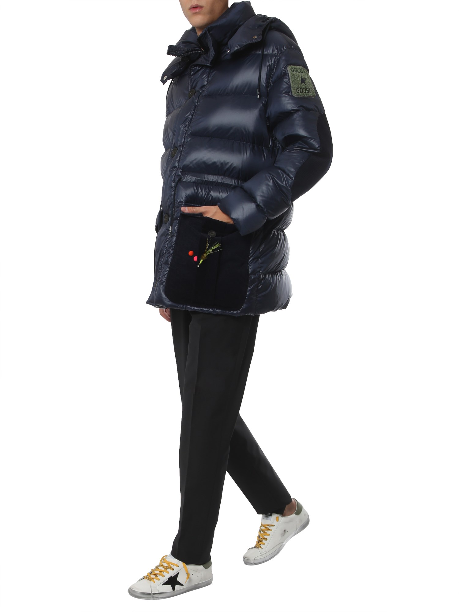 The down jacket by Golden Goose Deluxe Brand is designed for insulation and comfort. Made of 100% nylon, this outdoor jacket feels light in weight and soft against the skin. It has 100% goose padding to keep you safe from the harsh weather. Its hood can be removed, if not needed.
