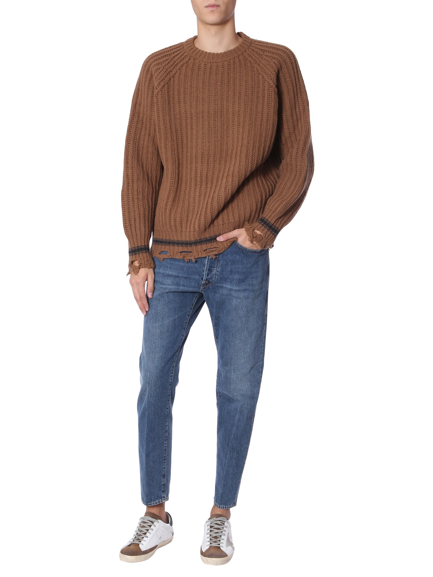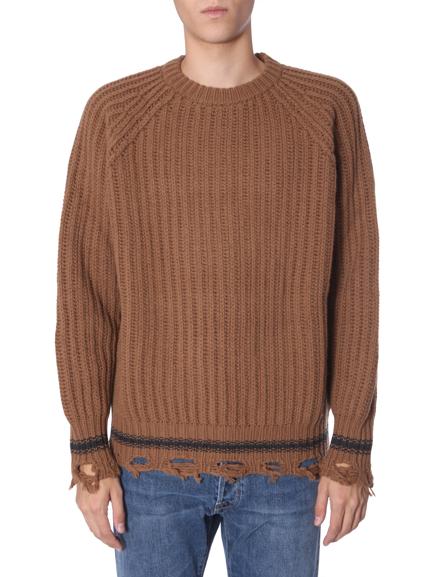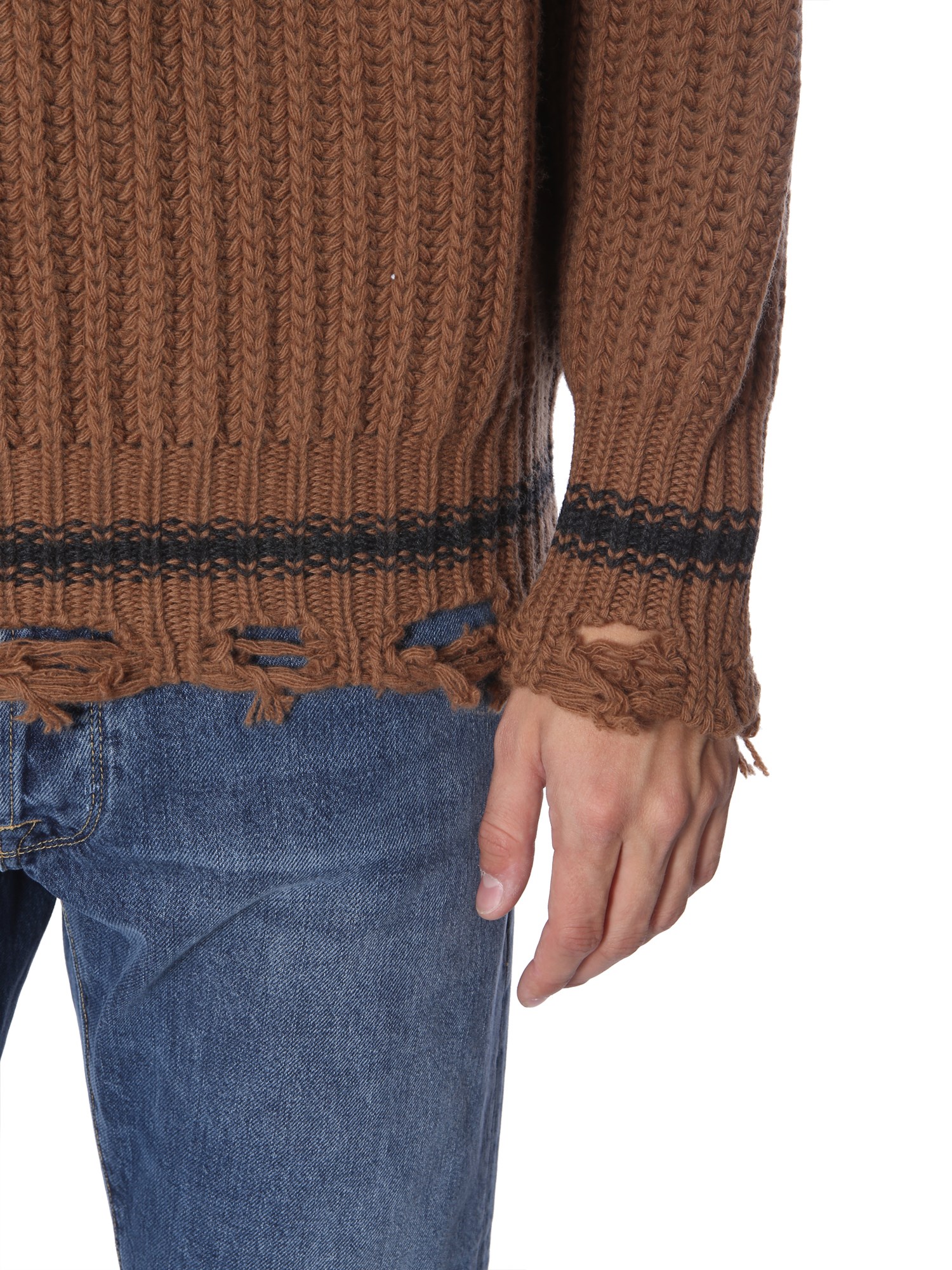 This "kunio" shirt from Golden Goose Deluxe Brand will give a fine upgrade to your winter wardrobe. The use of merino wool in its manufacture assures maximum smoothness and warmth. The simple braided design makes it apt for formal as well casual events. You can carry it with jeans and sneakers.