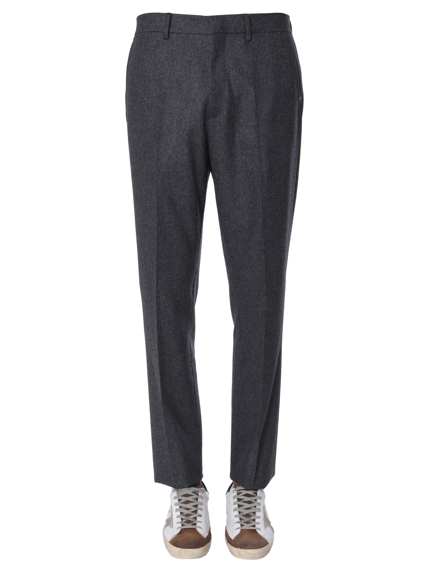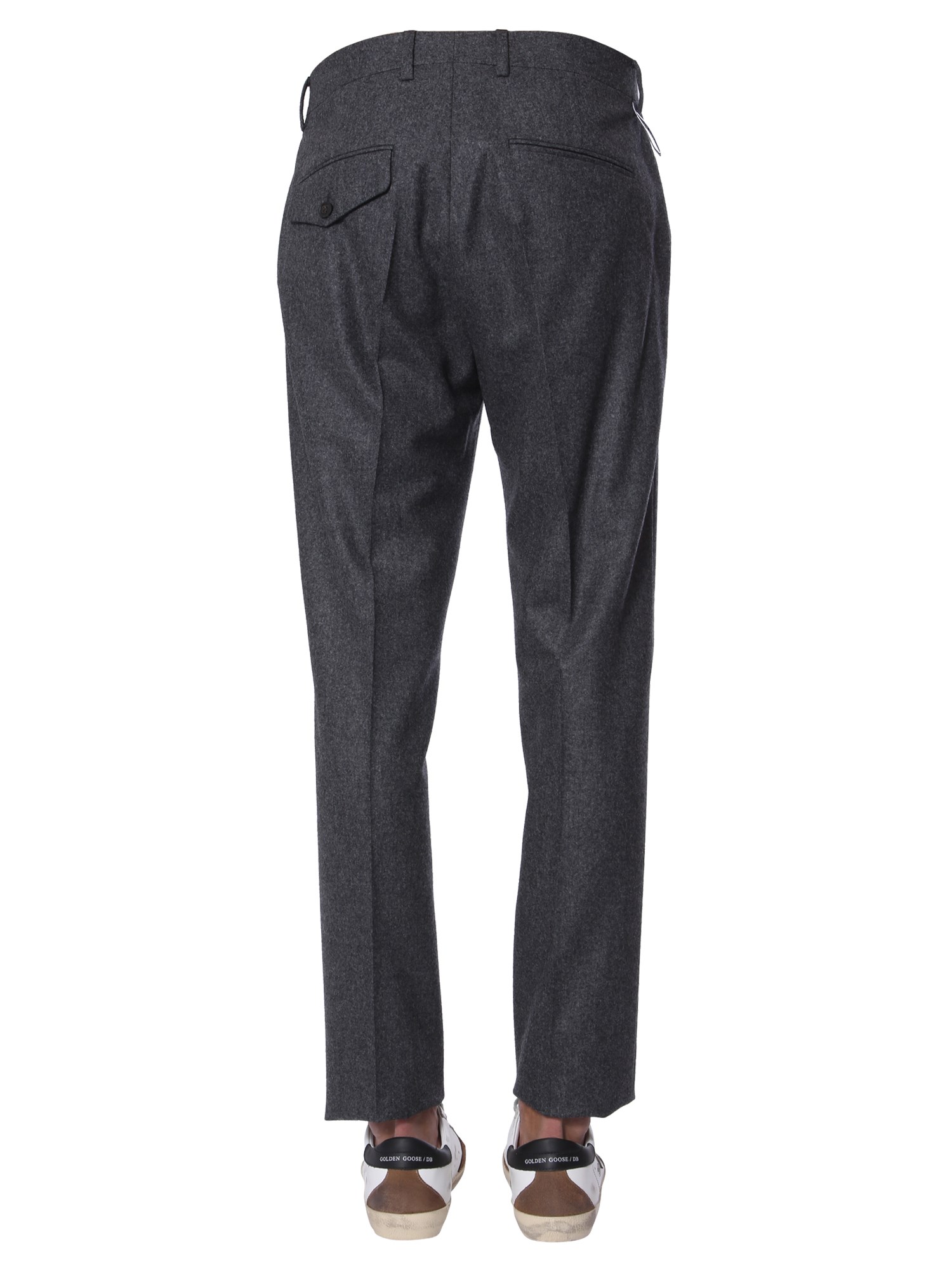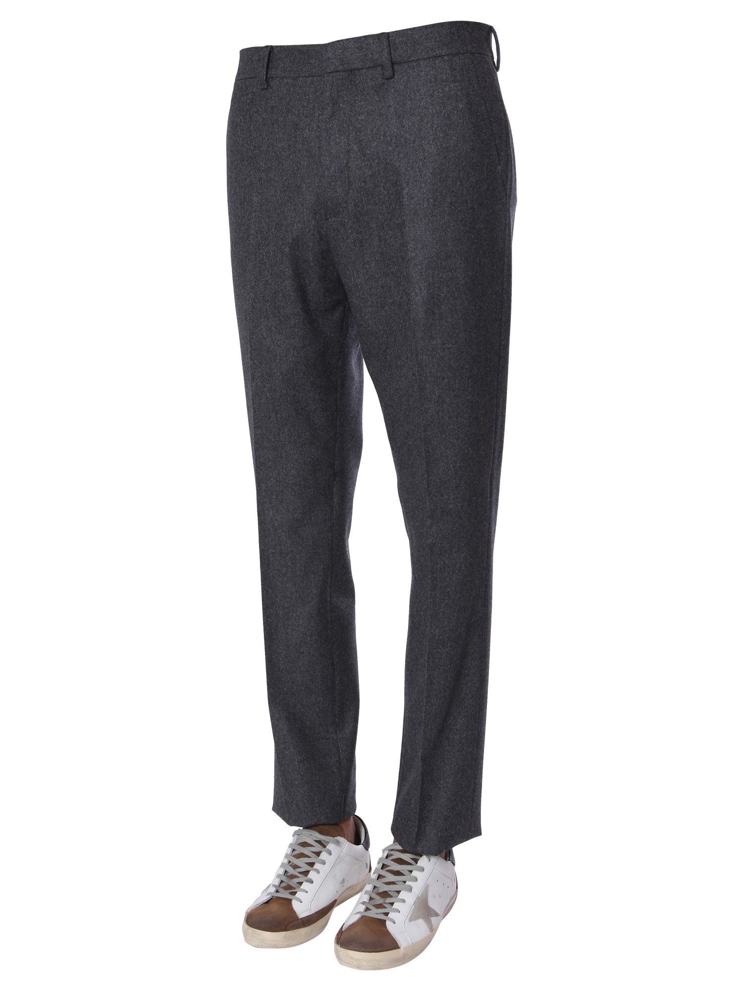 These regular fit pants from Golden Goose Deluxe Brand are madeofvirgin wool for enhanced softness. Cut for a regular fit, these pants are detailed with two pockets, and handmade hem for a tailored finish.They offer a proper and tight fit as they have easy front zip and hook closure. Create a smart look with a slim-fit formal shirt.