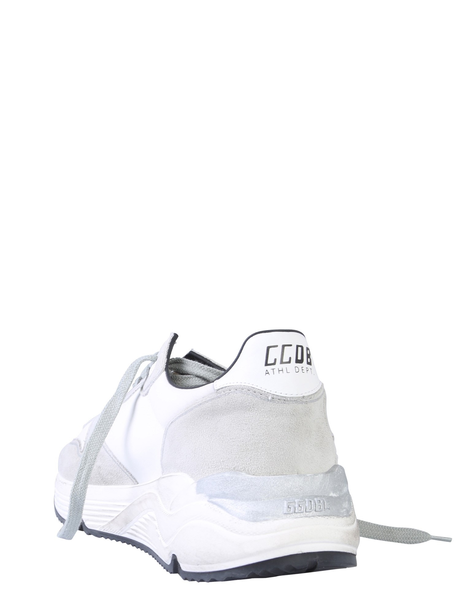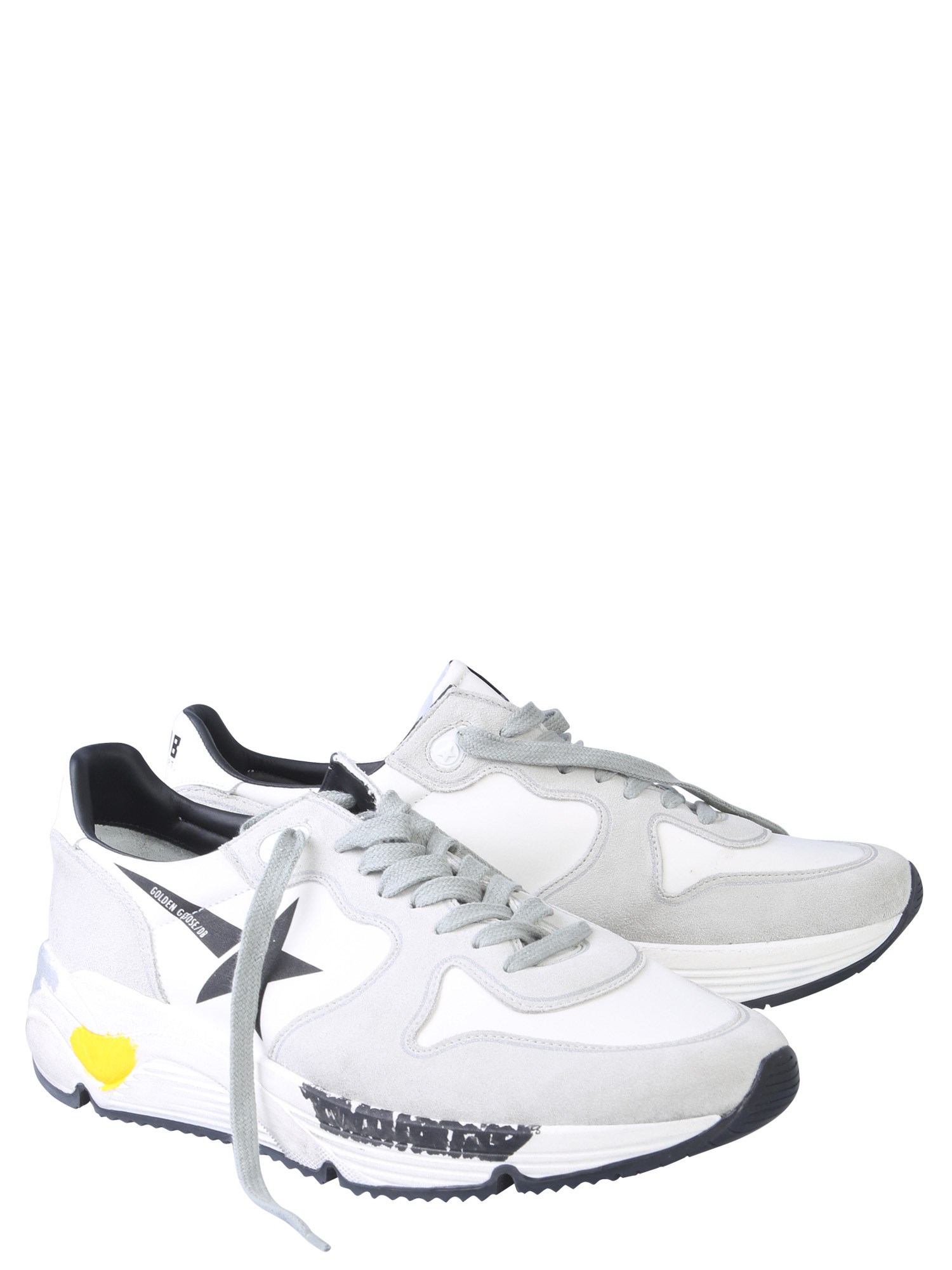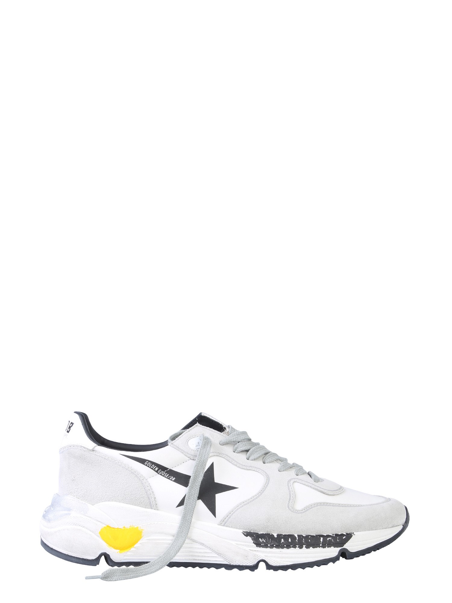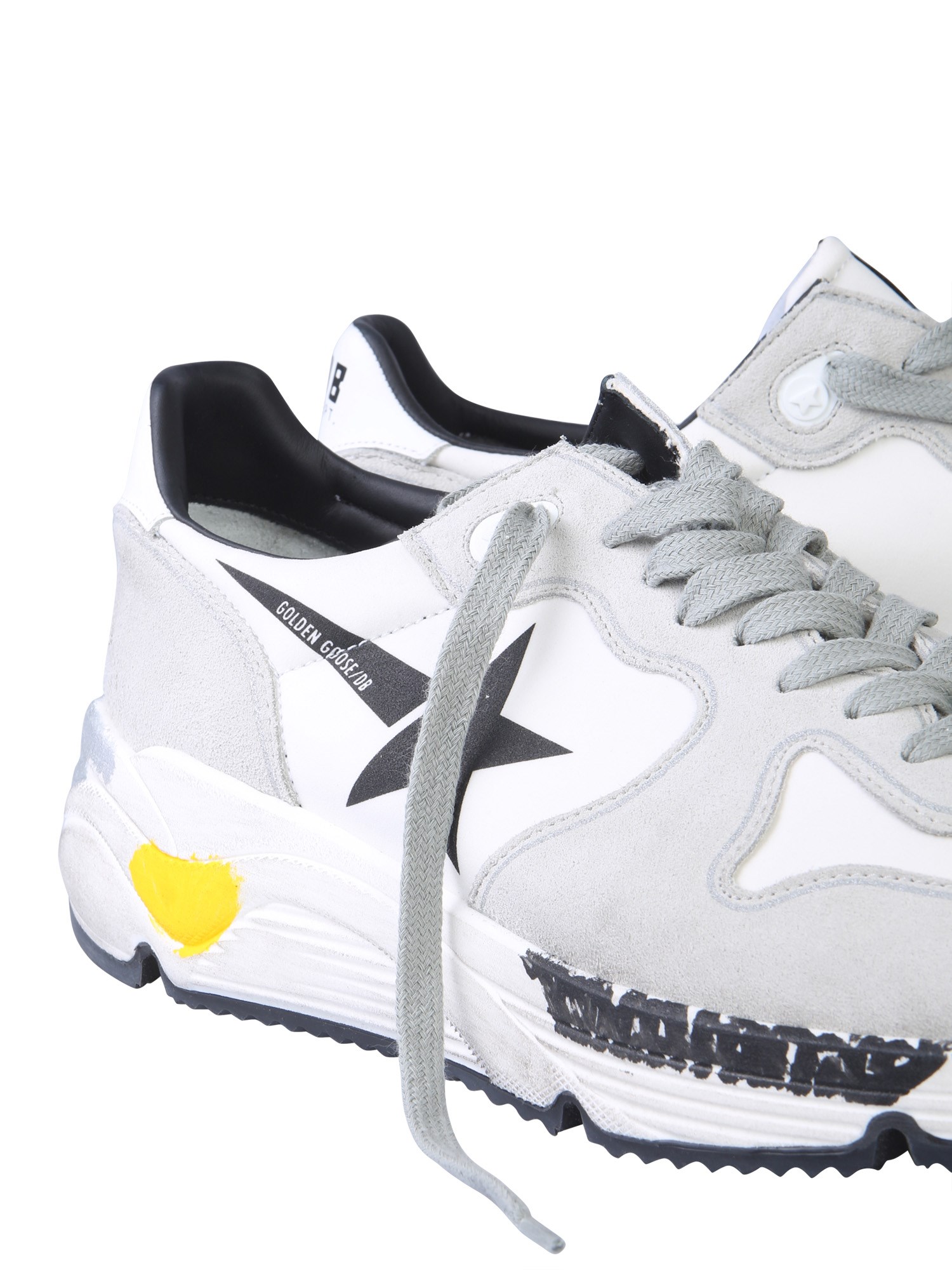 Attractively designed with a dab of paint, this pair of leather sneakers from Golden Goose Deluxe Brand gives your feet a striking addition. They have a mesh-style, textured upper, along with a lace-up closure for maximum adjustability. The tongue and neck are padded for comfort whereas the surfaced outsole prevents slipping.