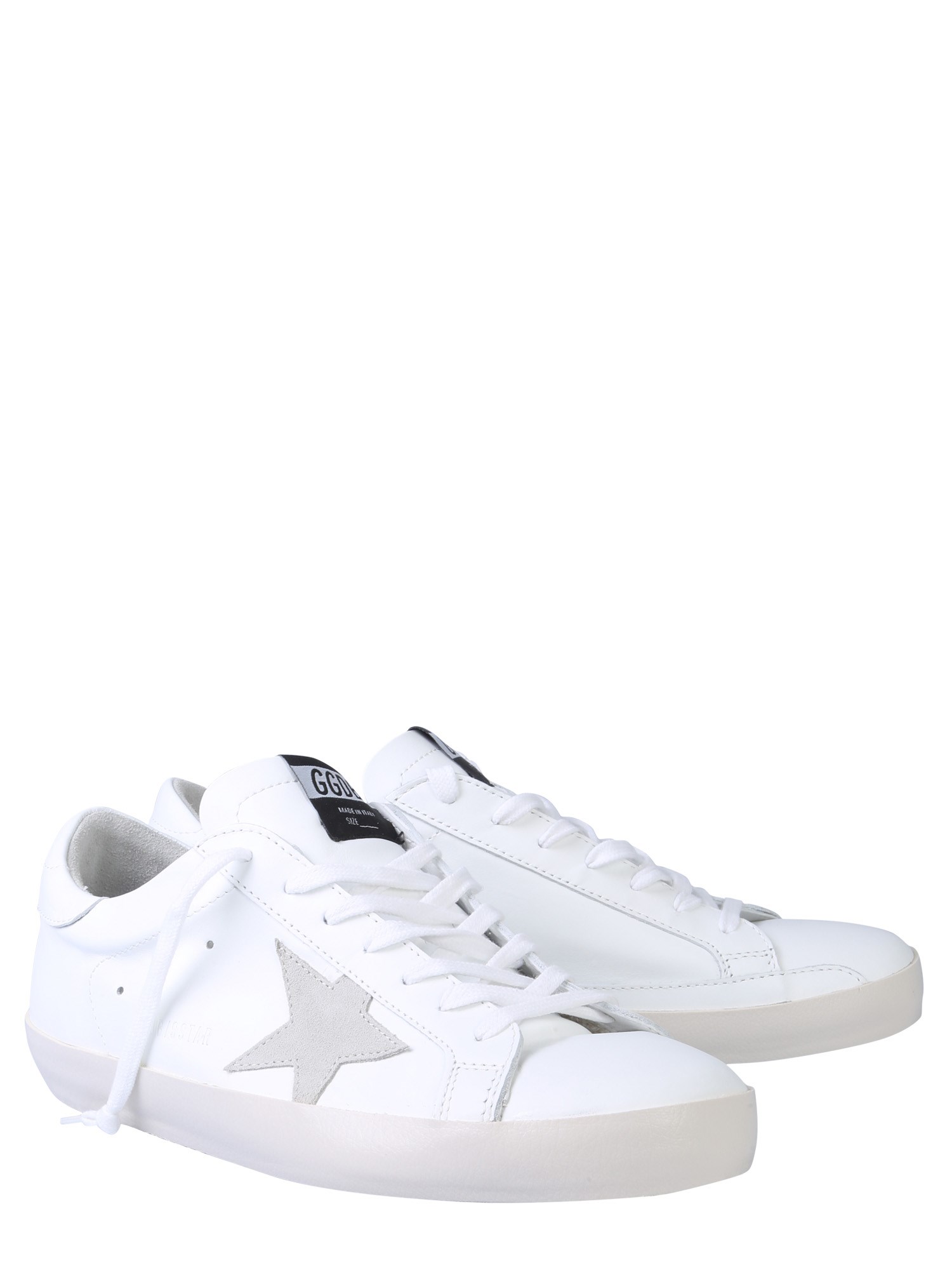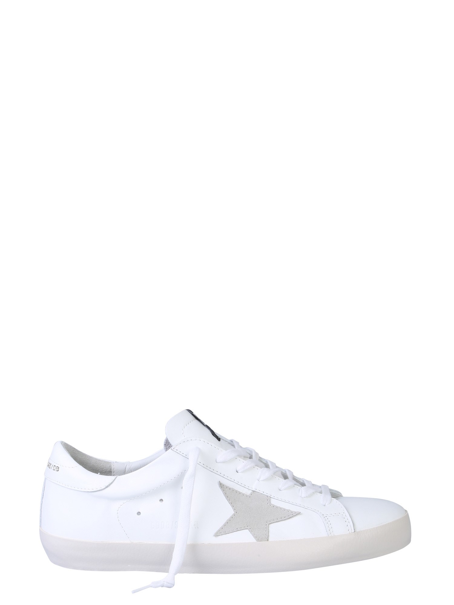 Make a lasting impression anywhere you go with these Golden Goose Deluxe Brand Superstar sneakers. Lightweight and comfy, these shoes are made from 100% calf leather material. The upper and side panel arrangement displays a smooth surface with a star patch. For flexibility and adjustability, these shoes have a lace-up closure at the front.